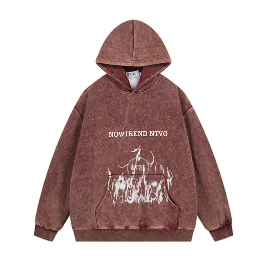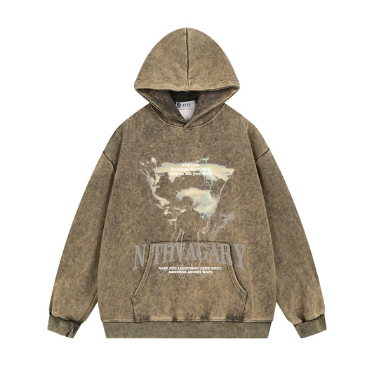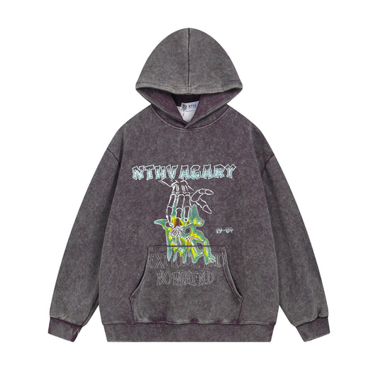 Washed Letter Embroidery Oversize Hoodie WN11515