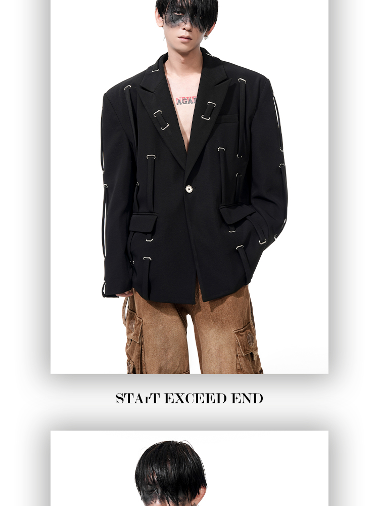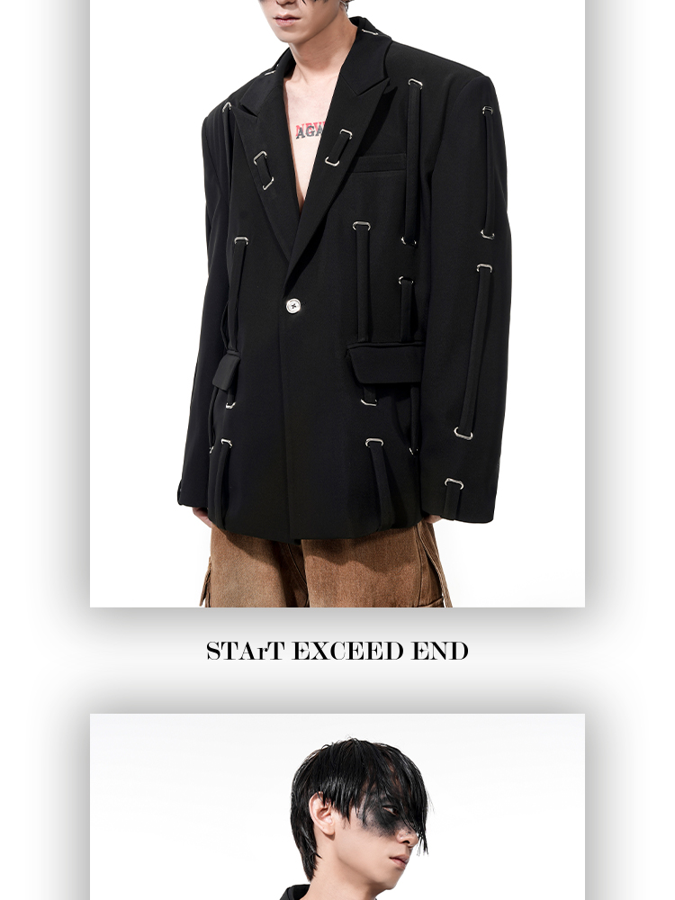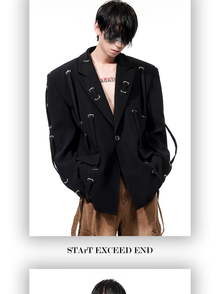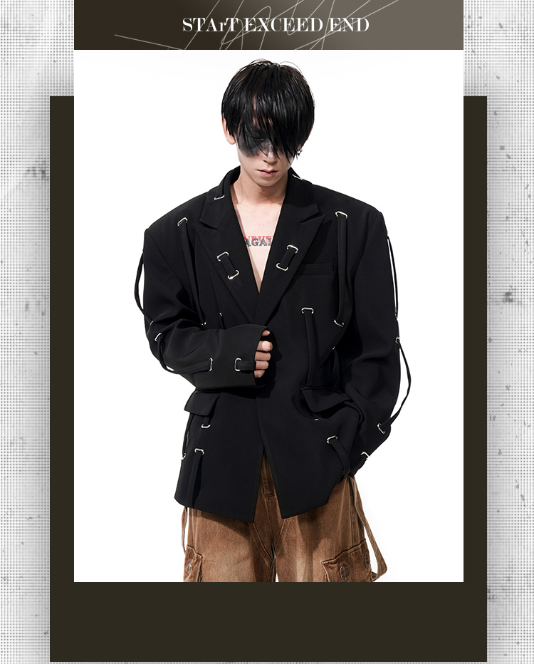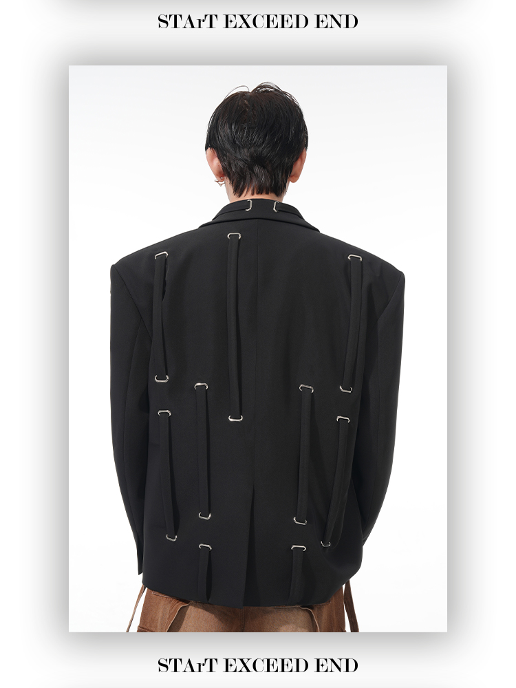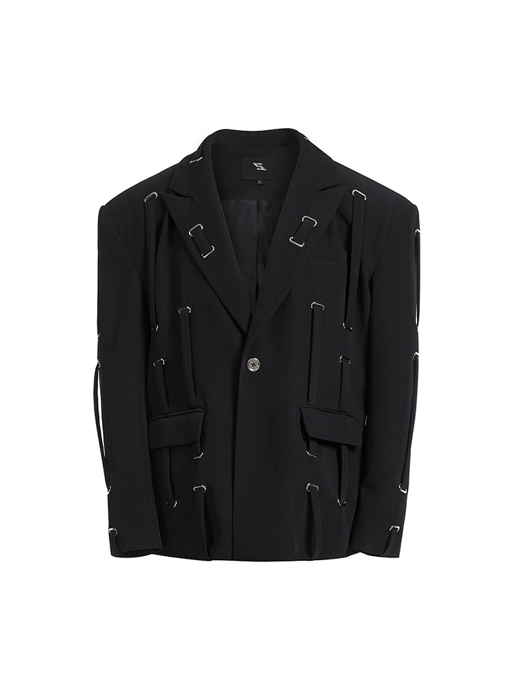 Oversize Strap Decor Tailored Jacket WN14850