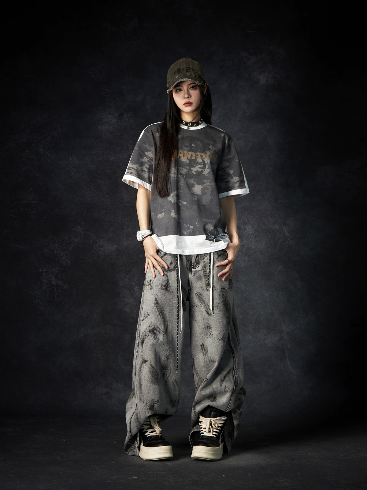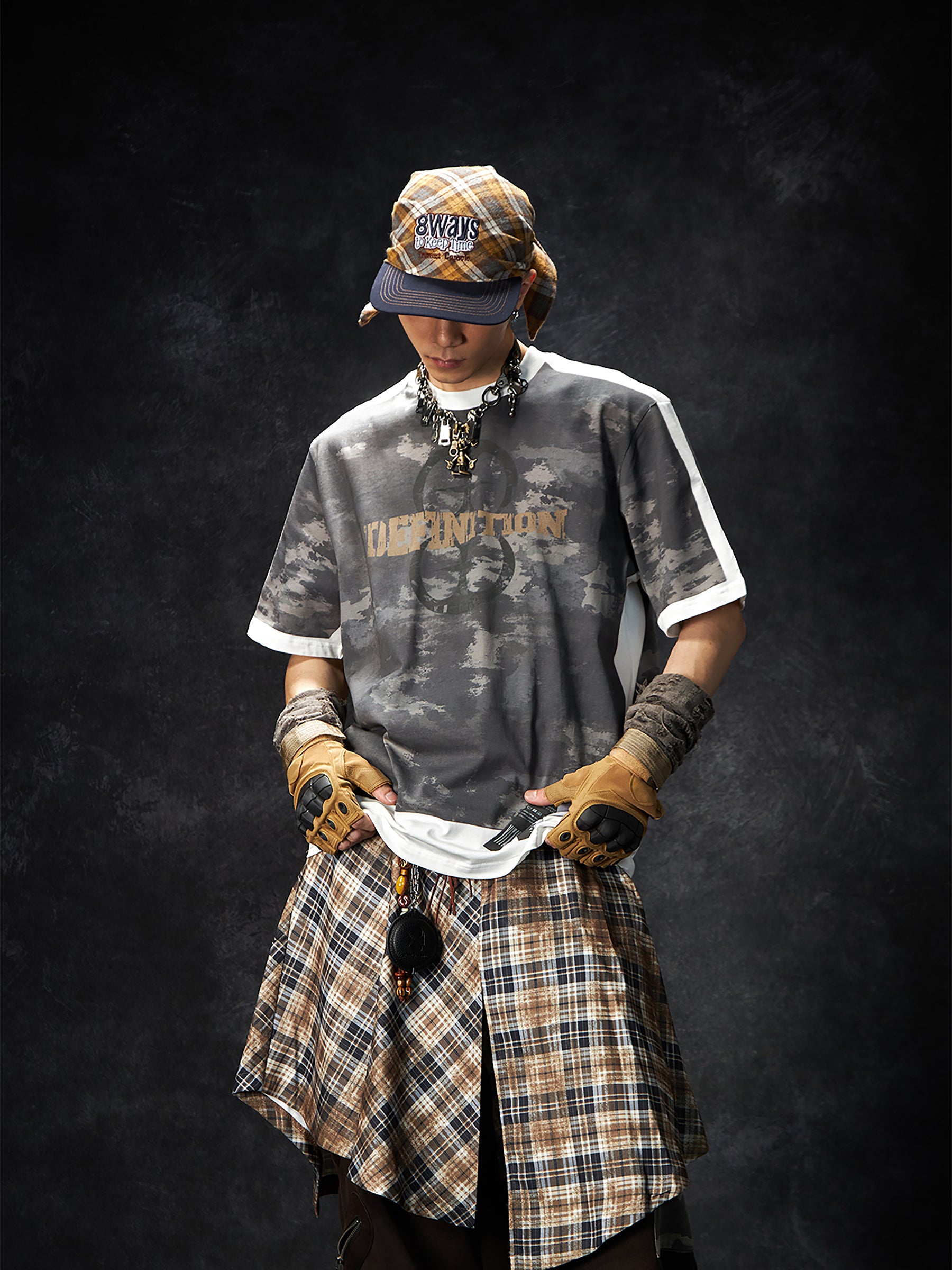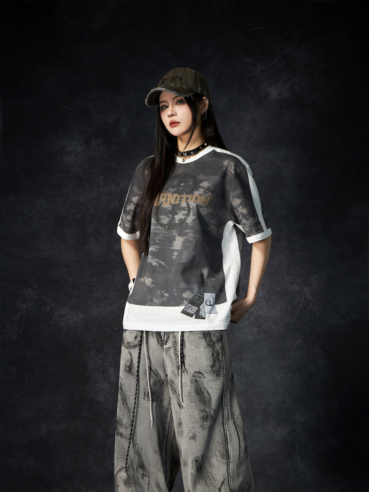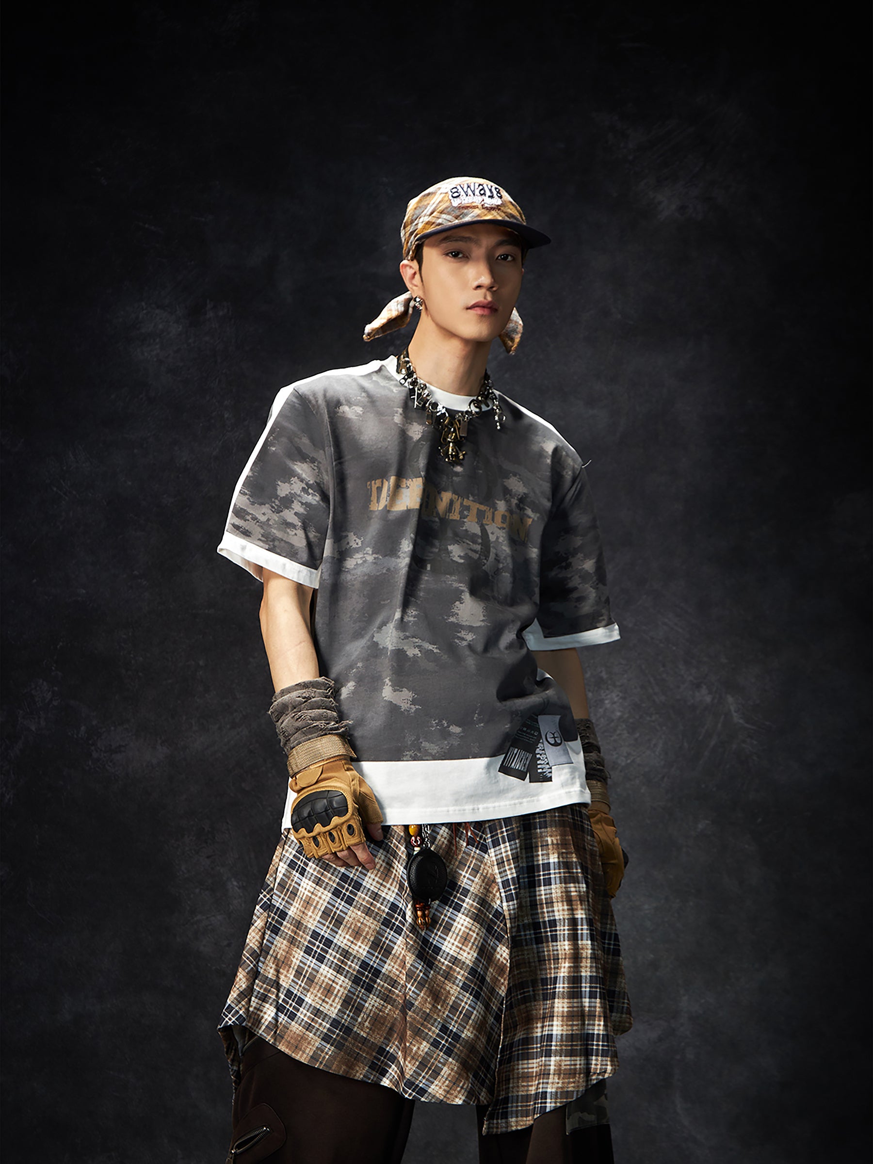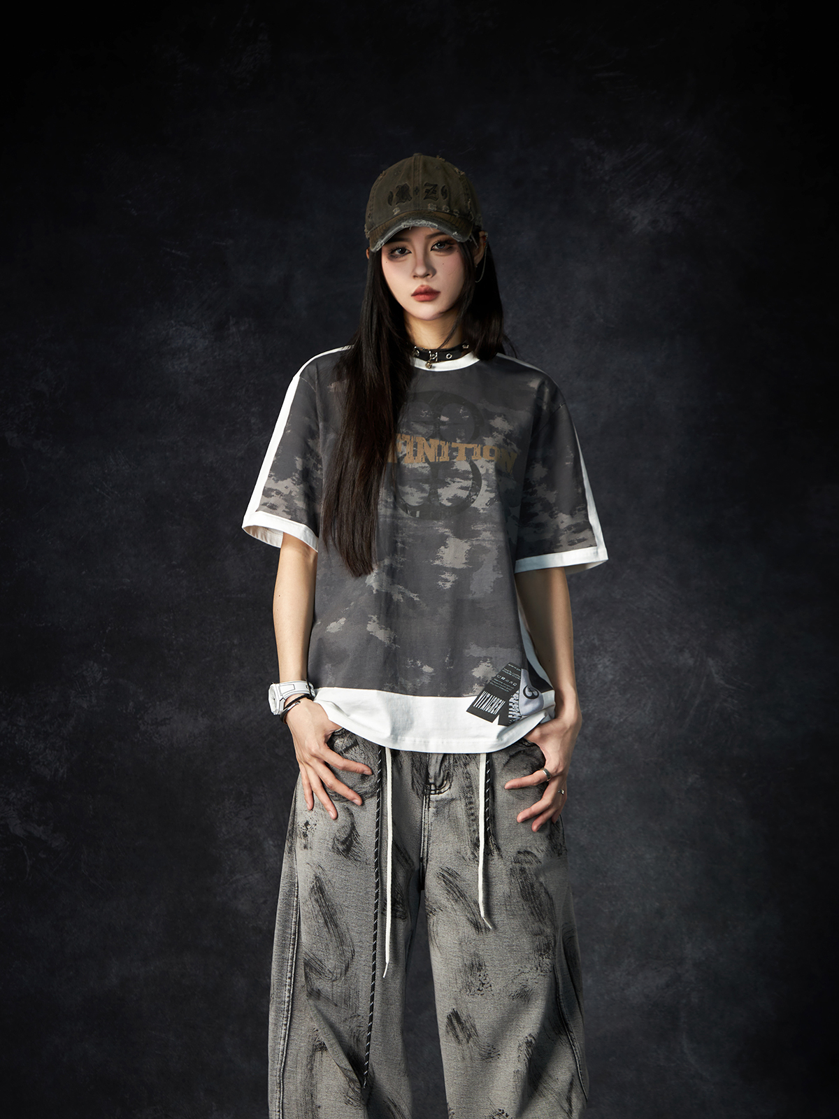 Camouflage Letter Print Oversize Short Sleeve T-Shirt WN15260