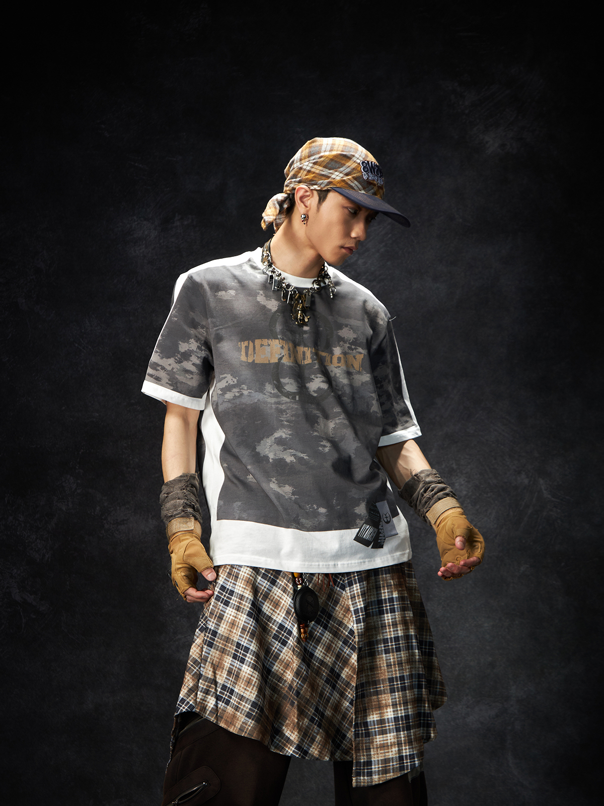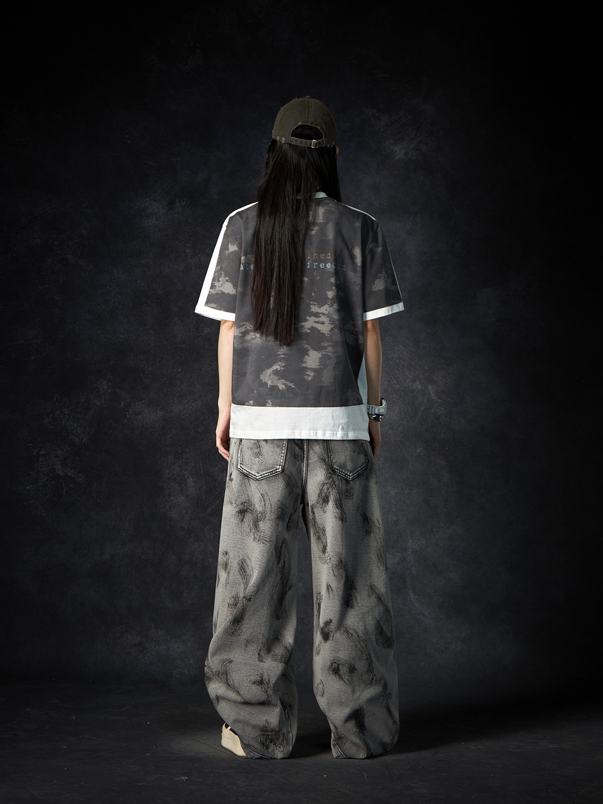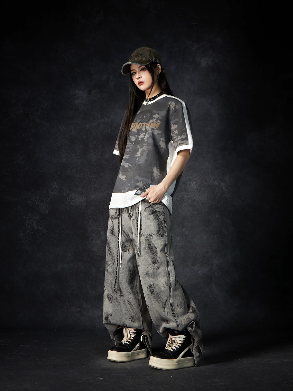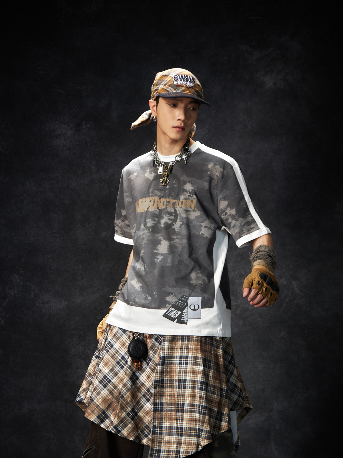 Camouflage Letter Print Oversize Short Sleeve T-Shirt WN15260