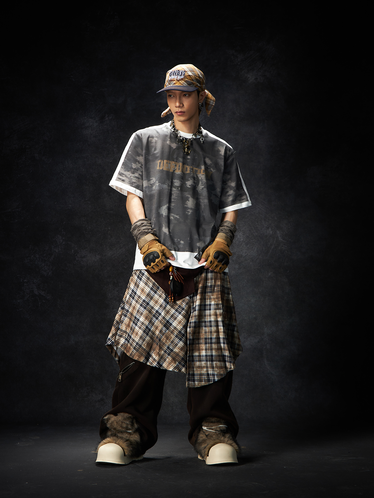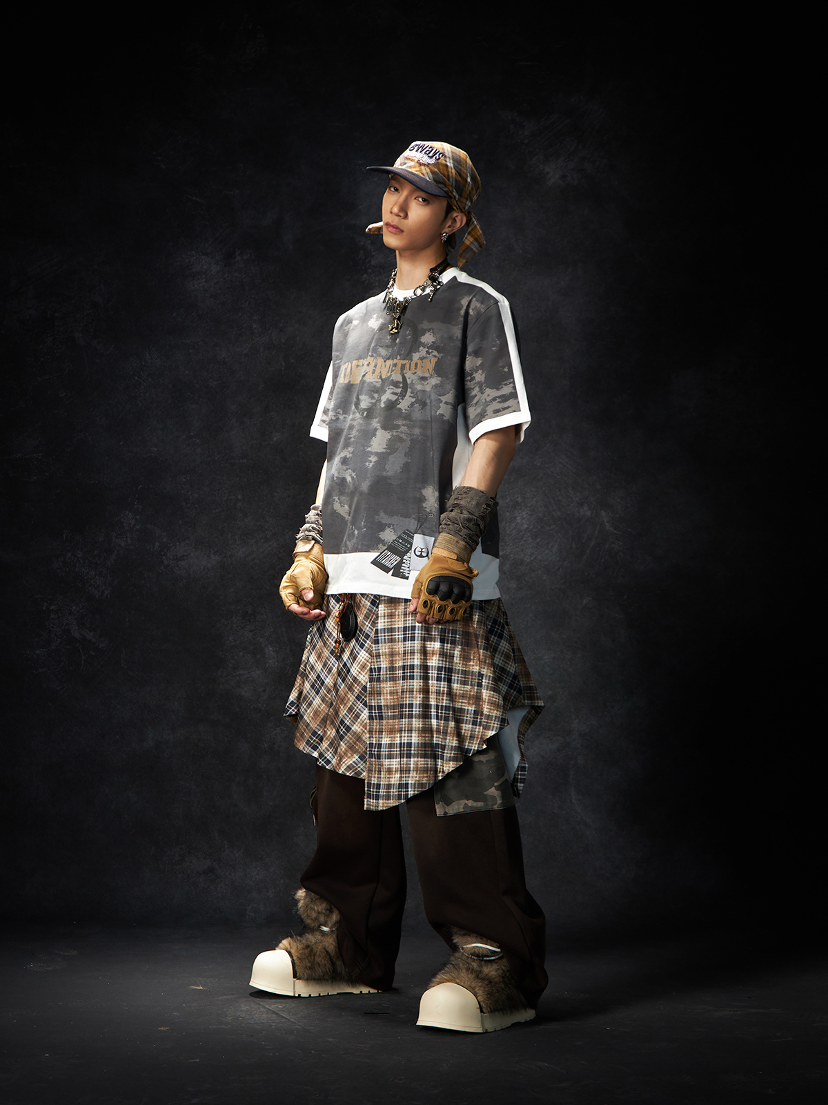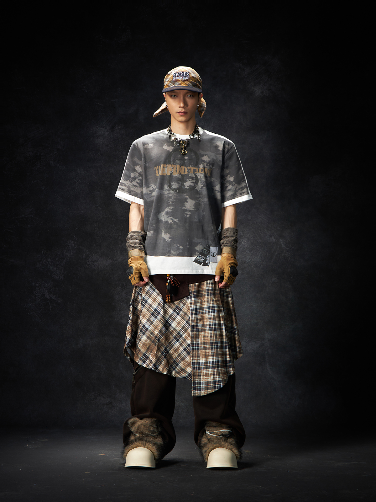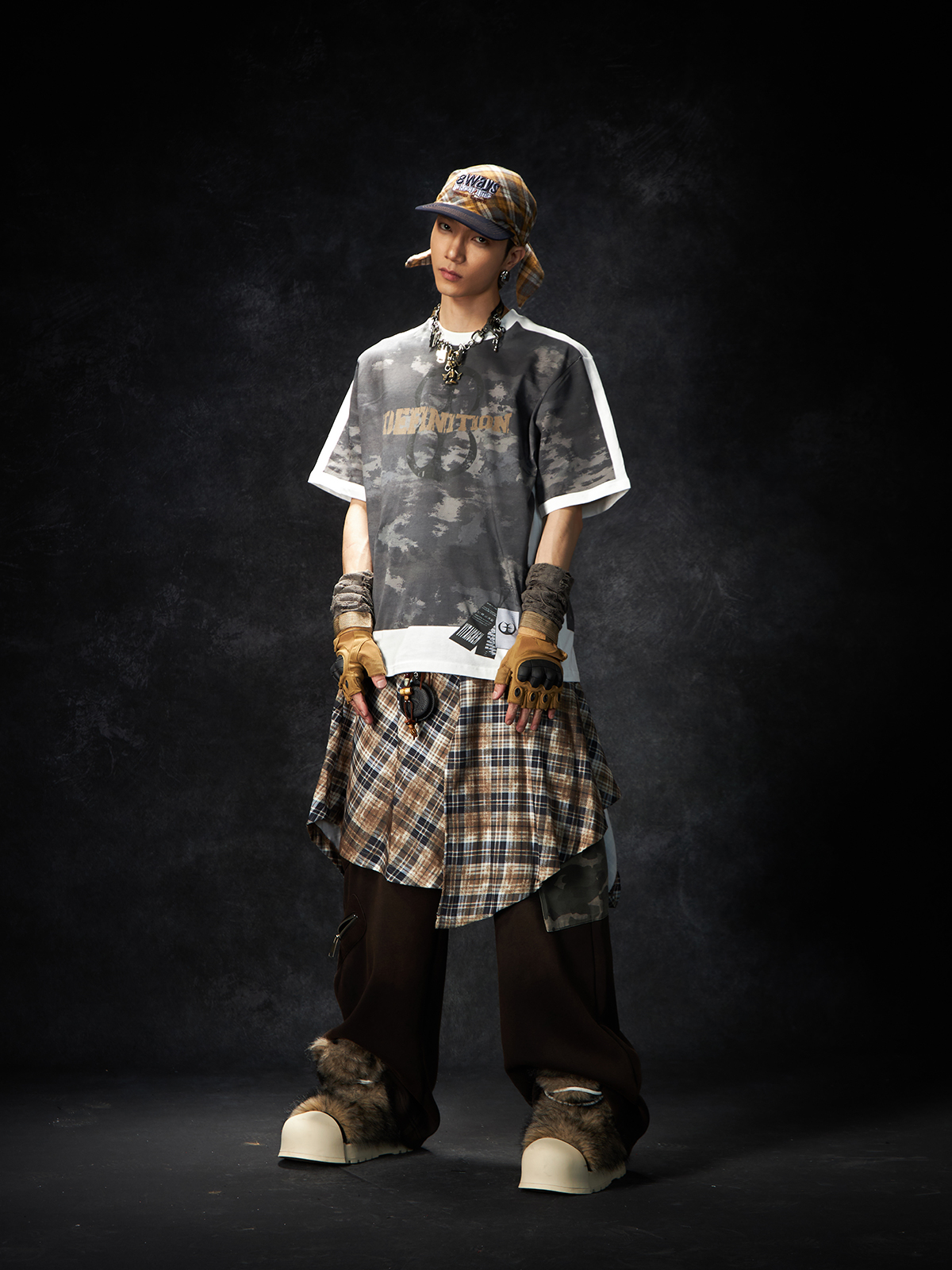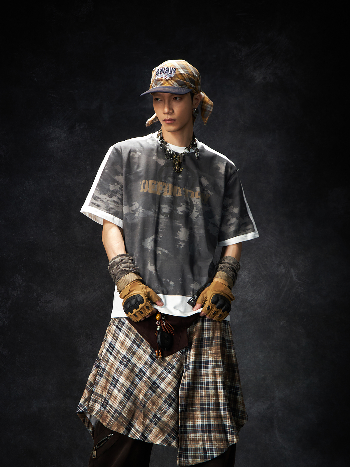 Camouflage Letter Print Oversize Short Sleeve T-Shirt WN15260