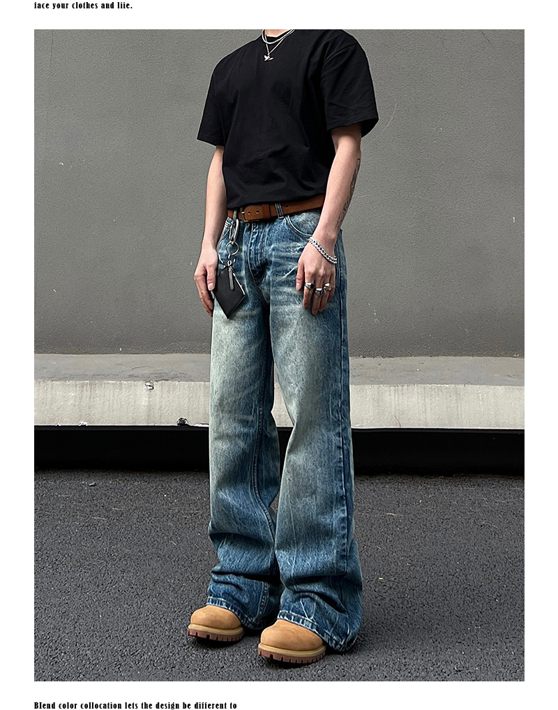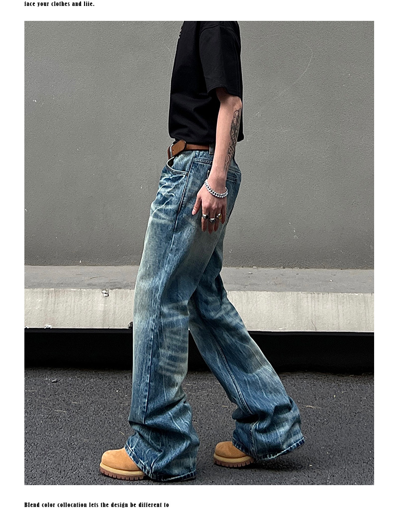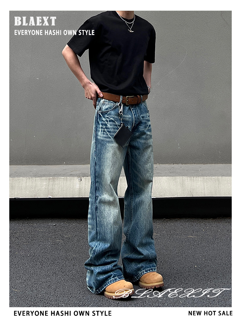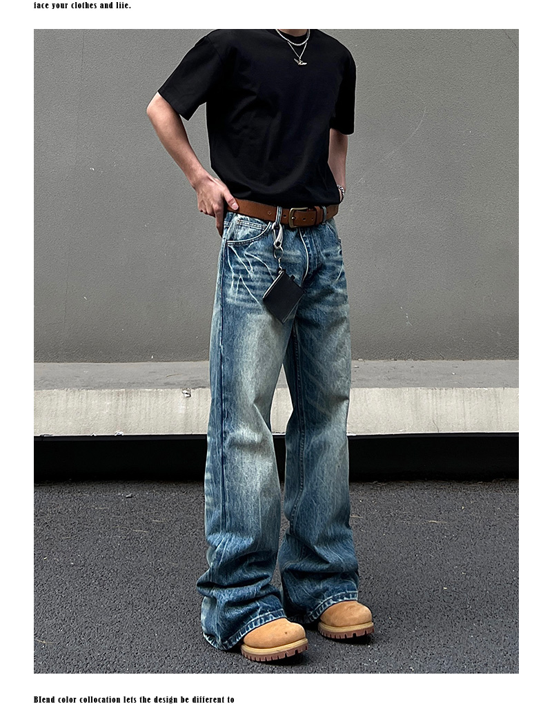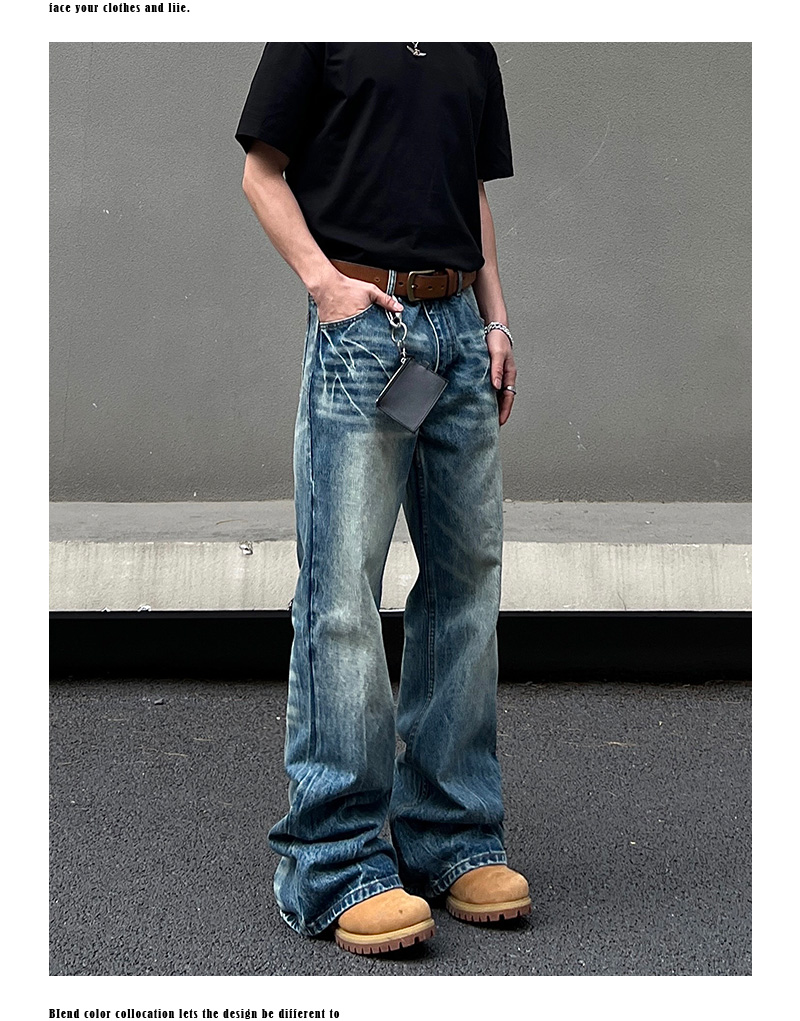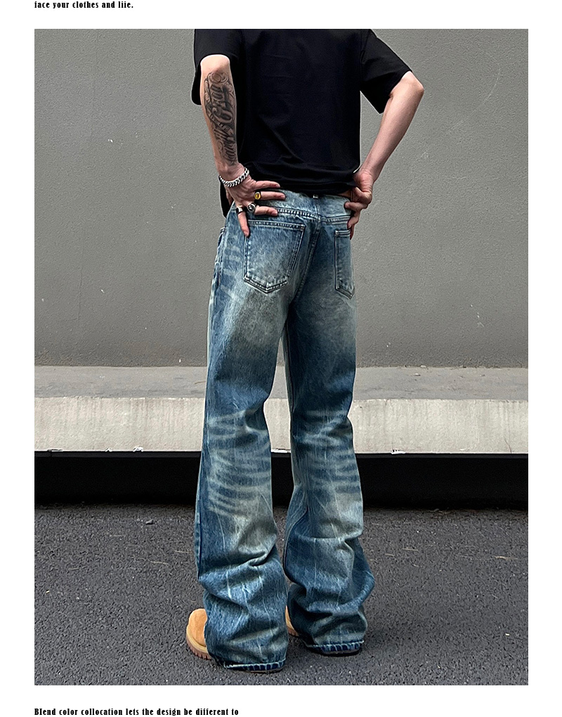 Ice Blue Lightning Pattern Flare Denim Jeans WN19467