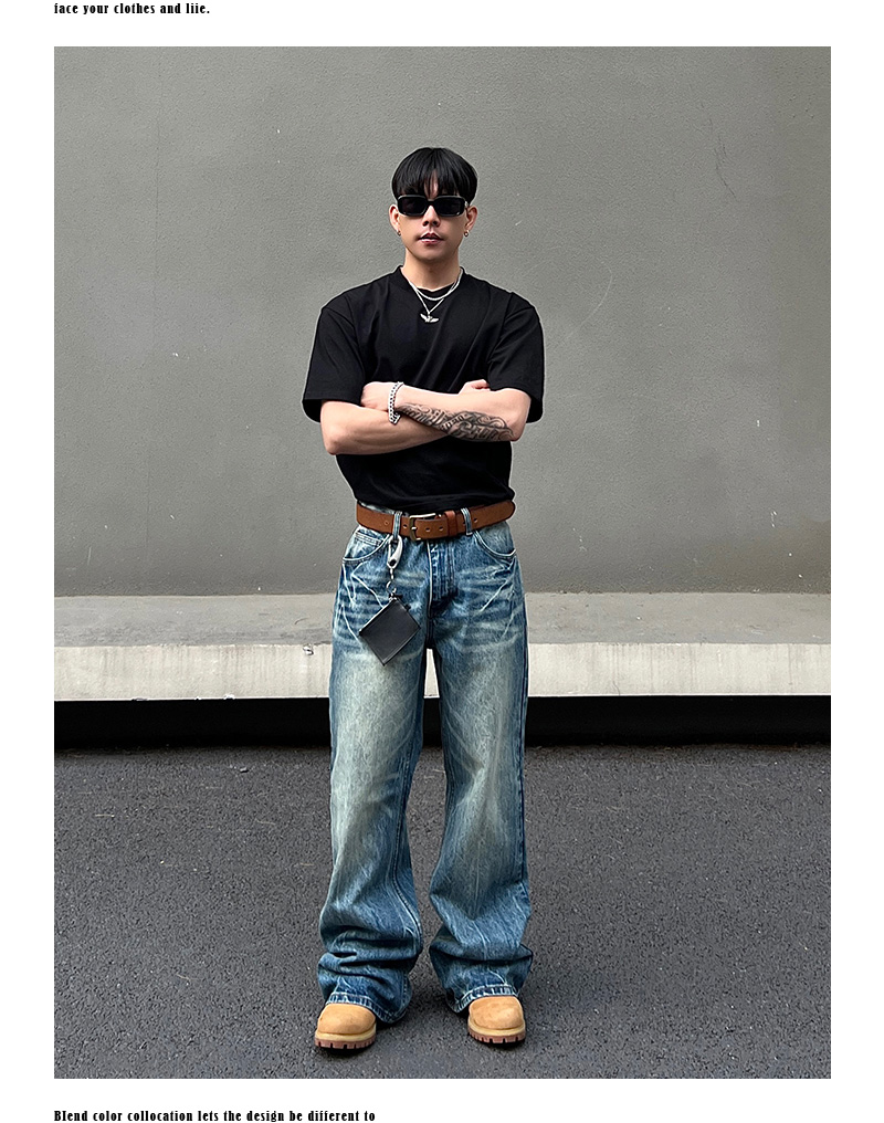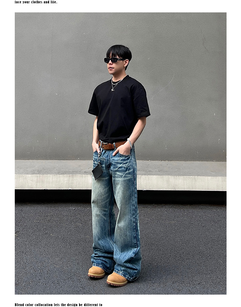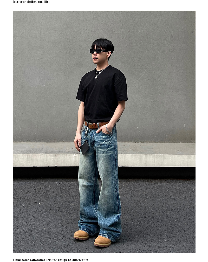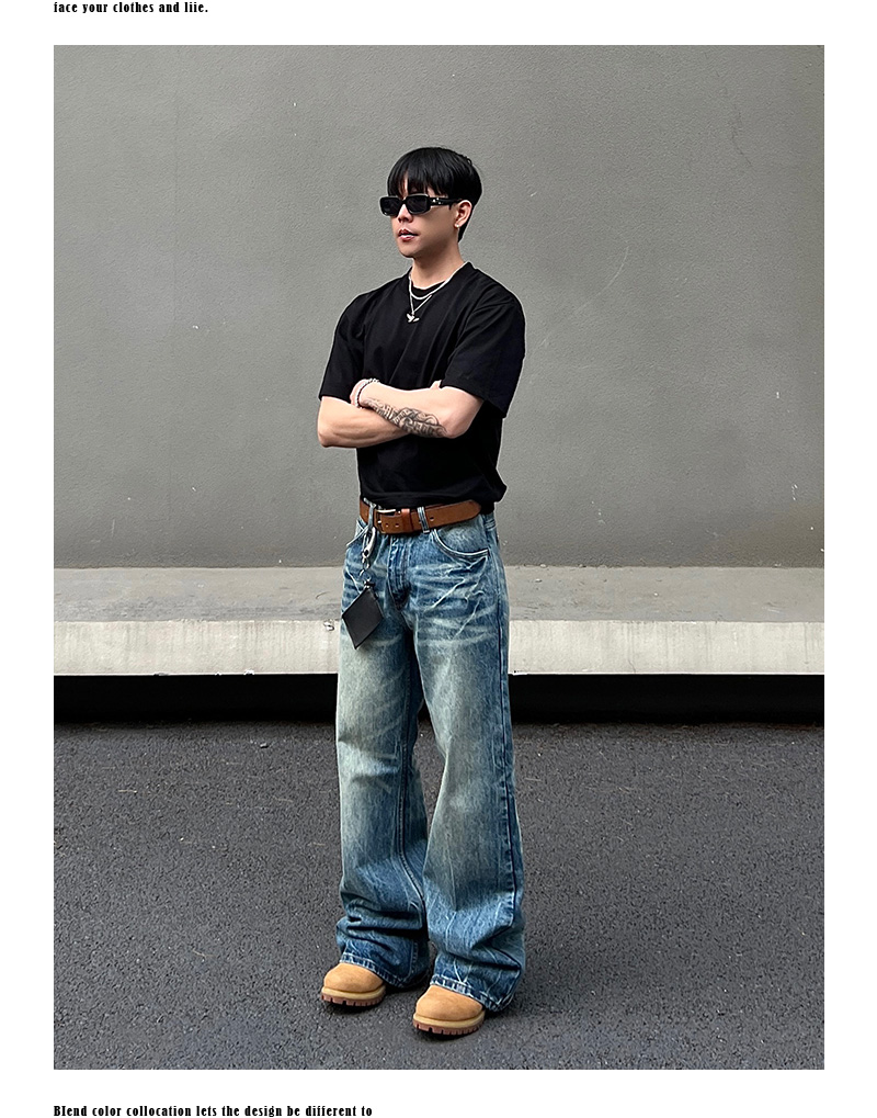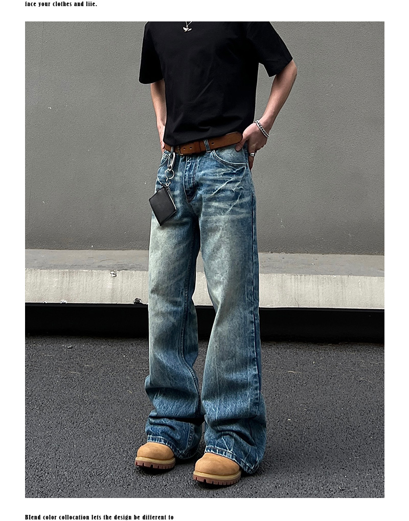 Ice Blue Lightning Pattern Flare Denim Jeans WN19467