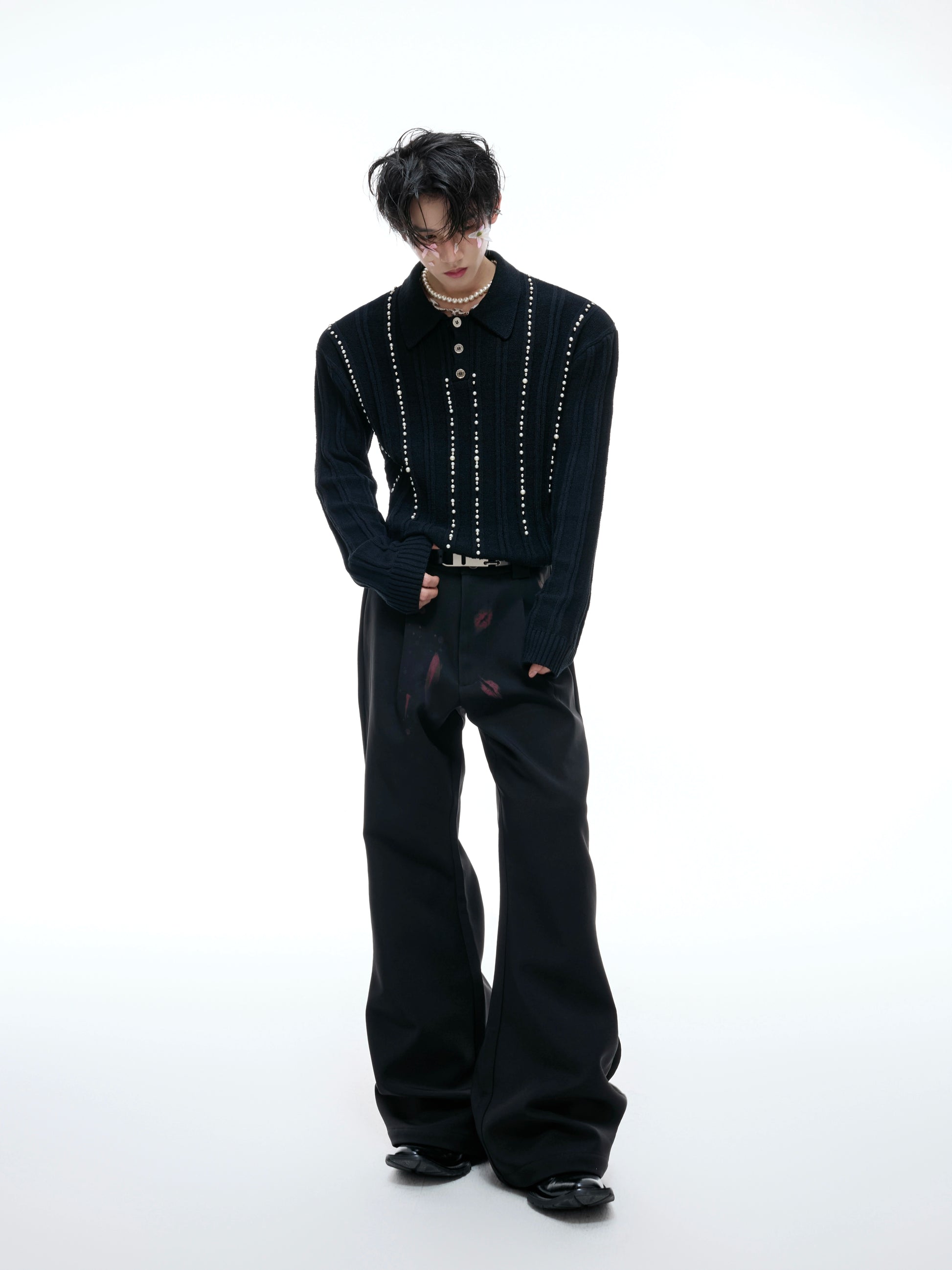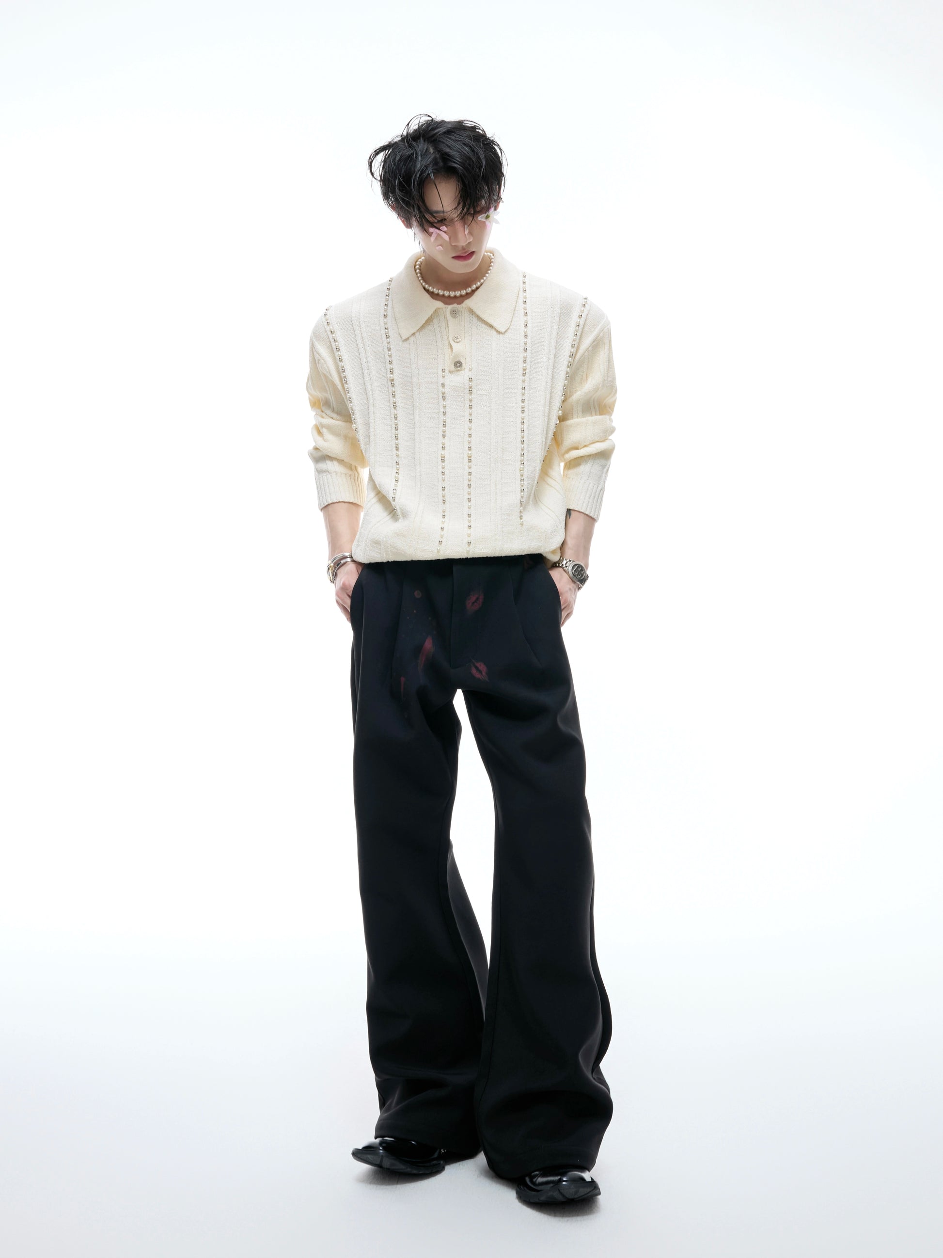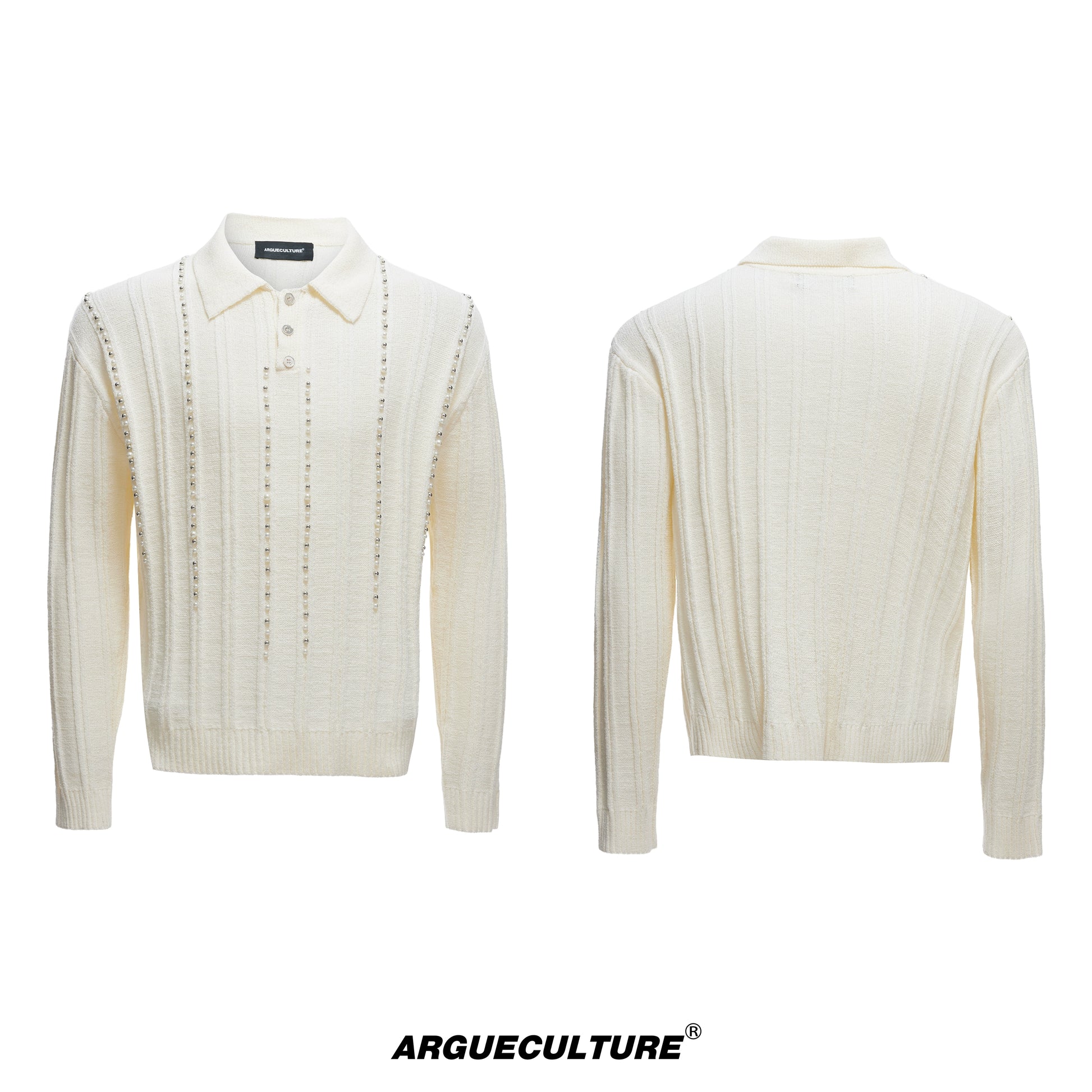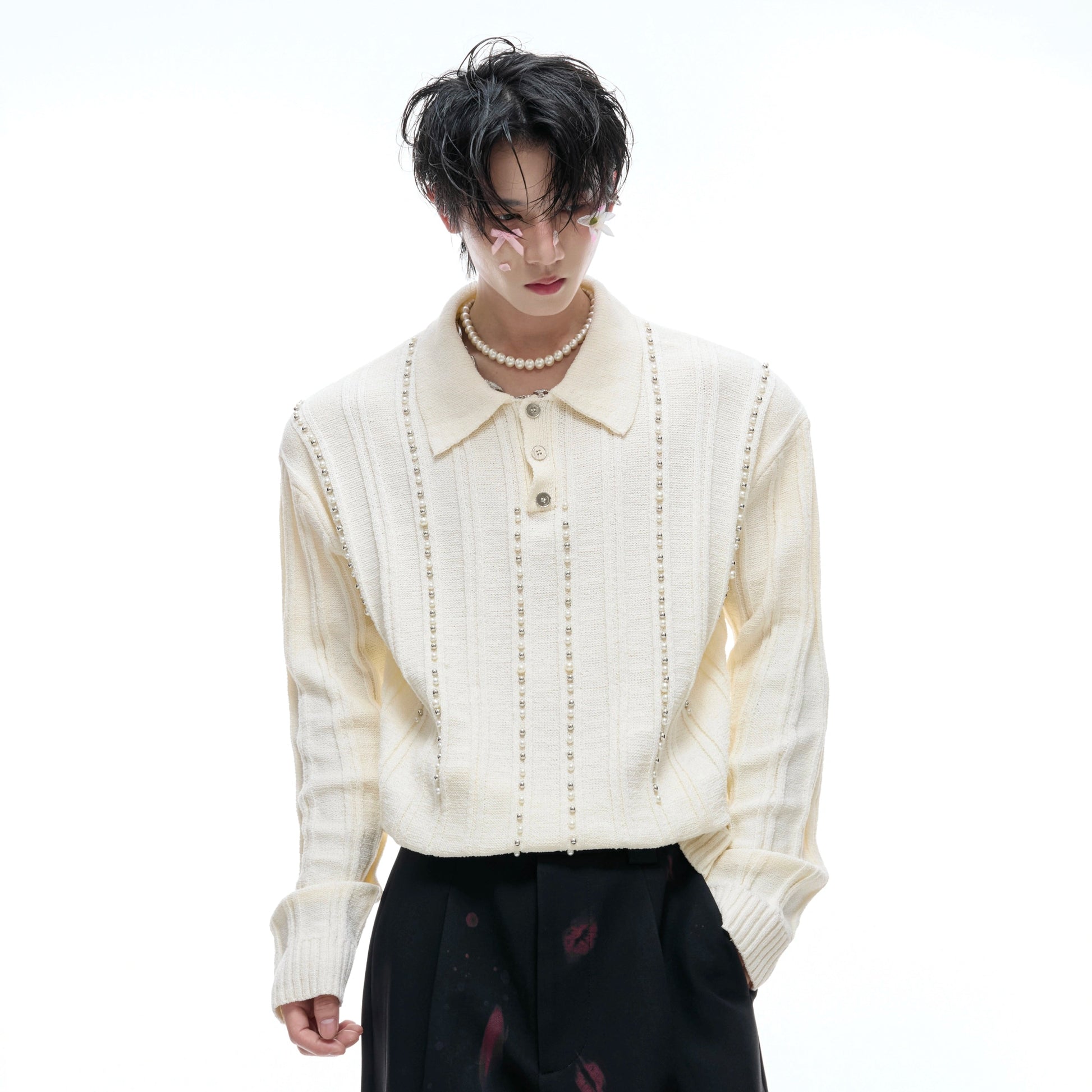 Pearl Beads Detail Knit Polo Shirt WN20540