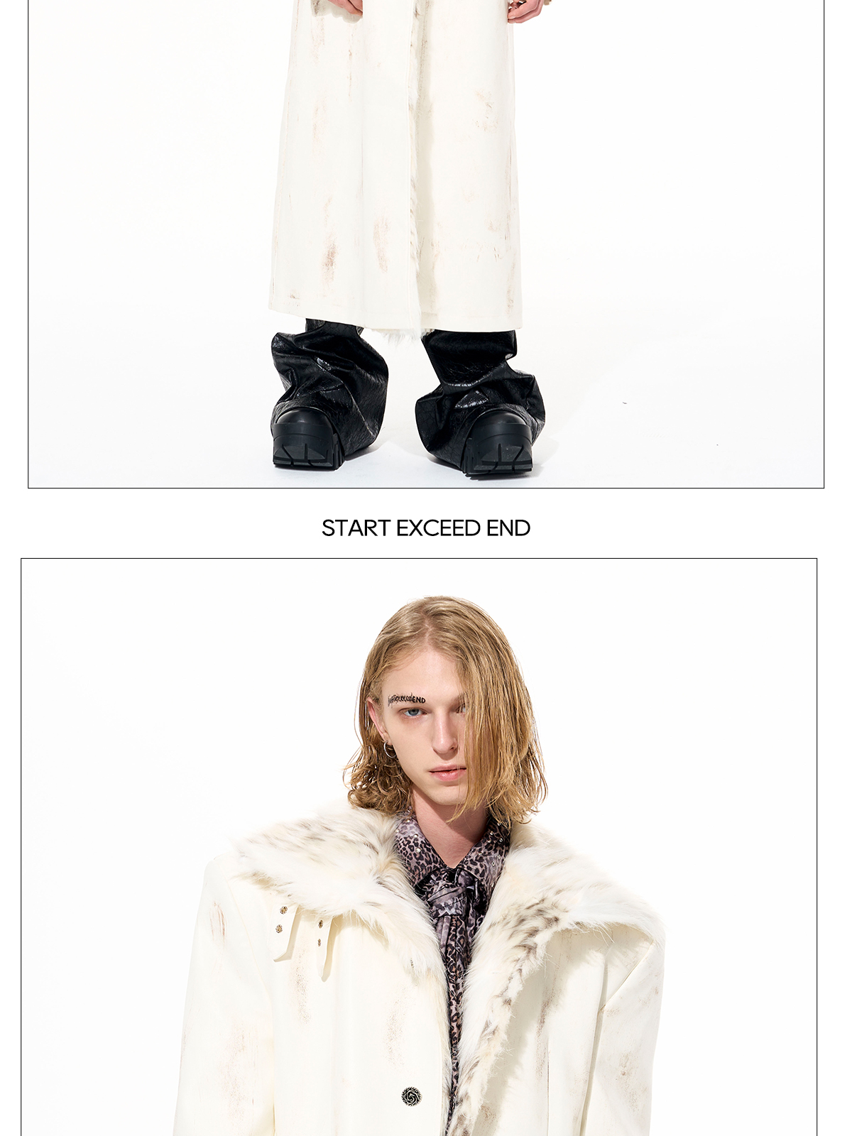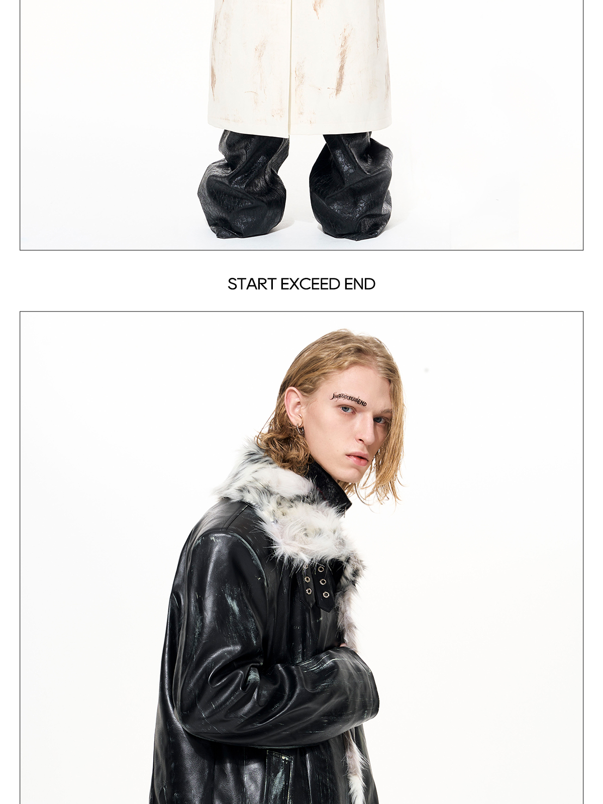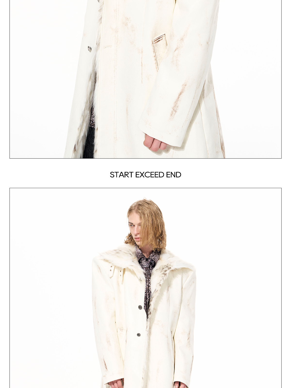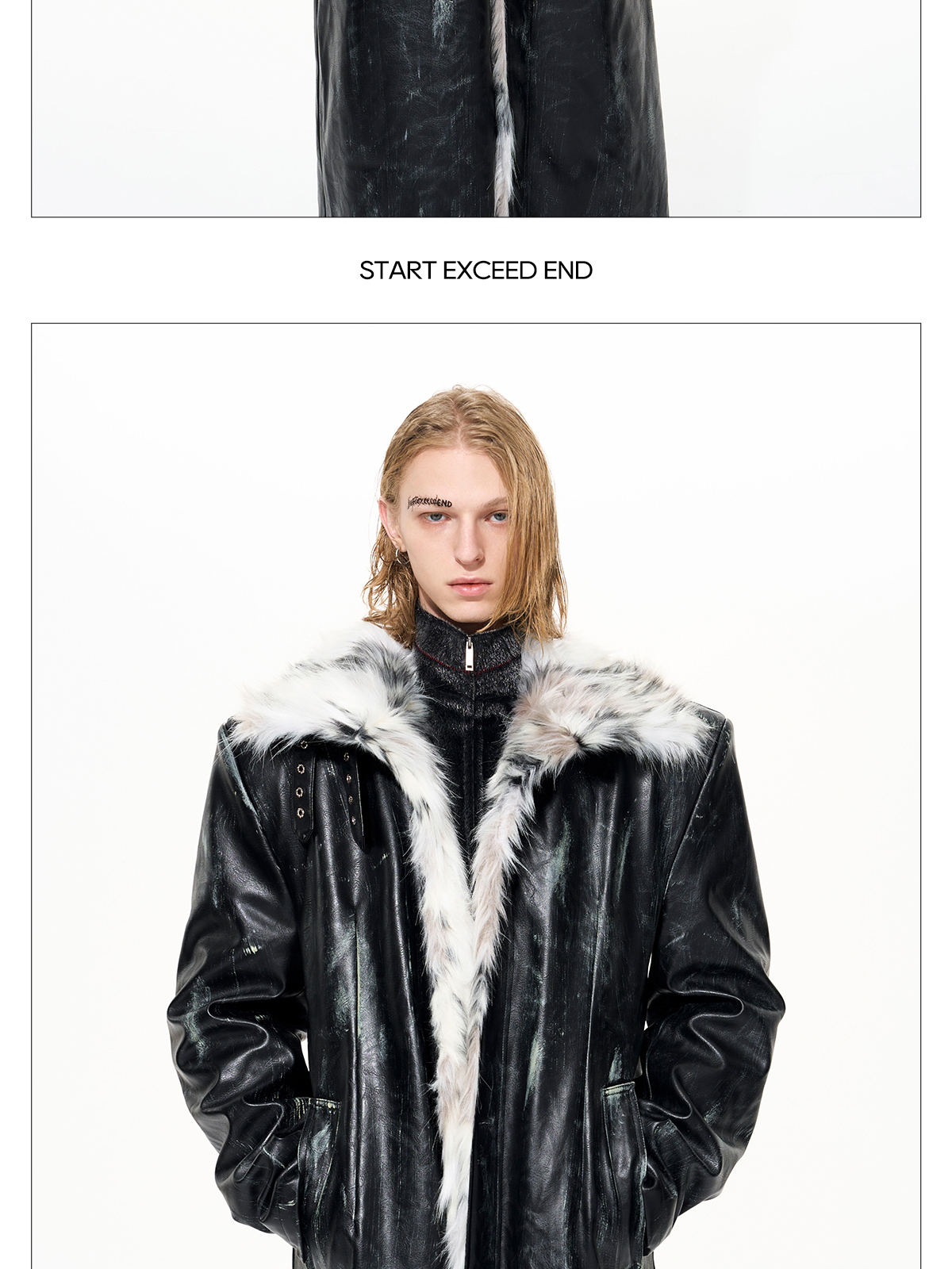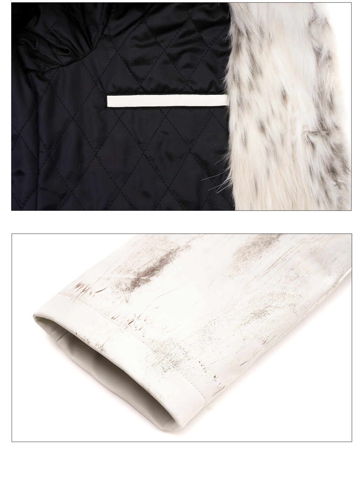 Paint Damage Stand Neck Fake Fur Coat WN22640