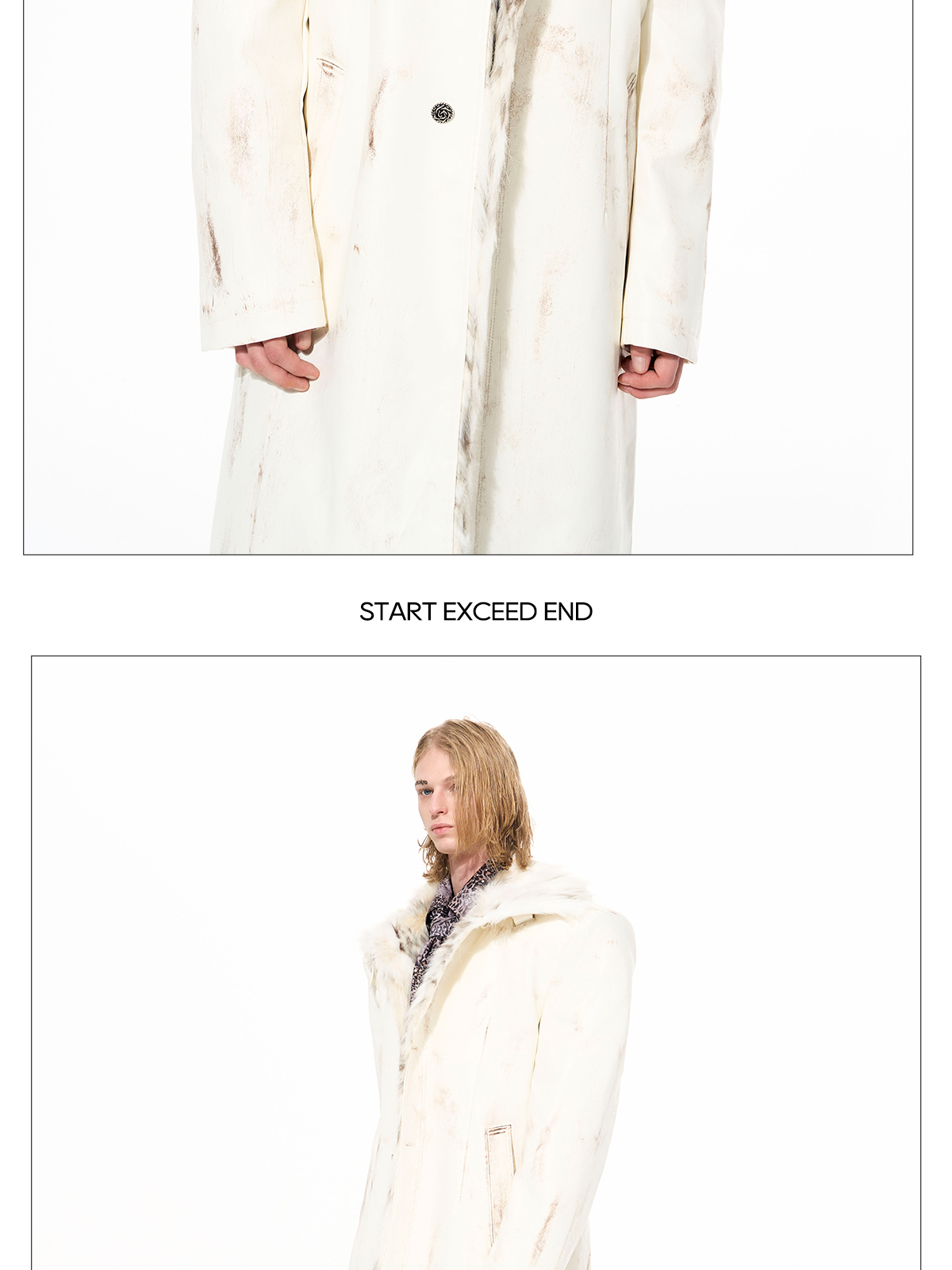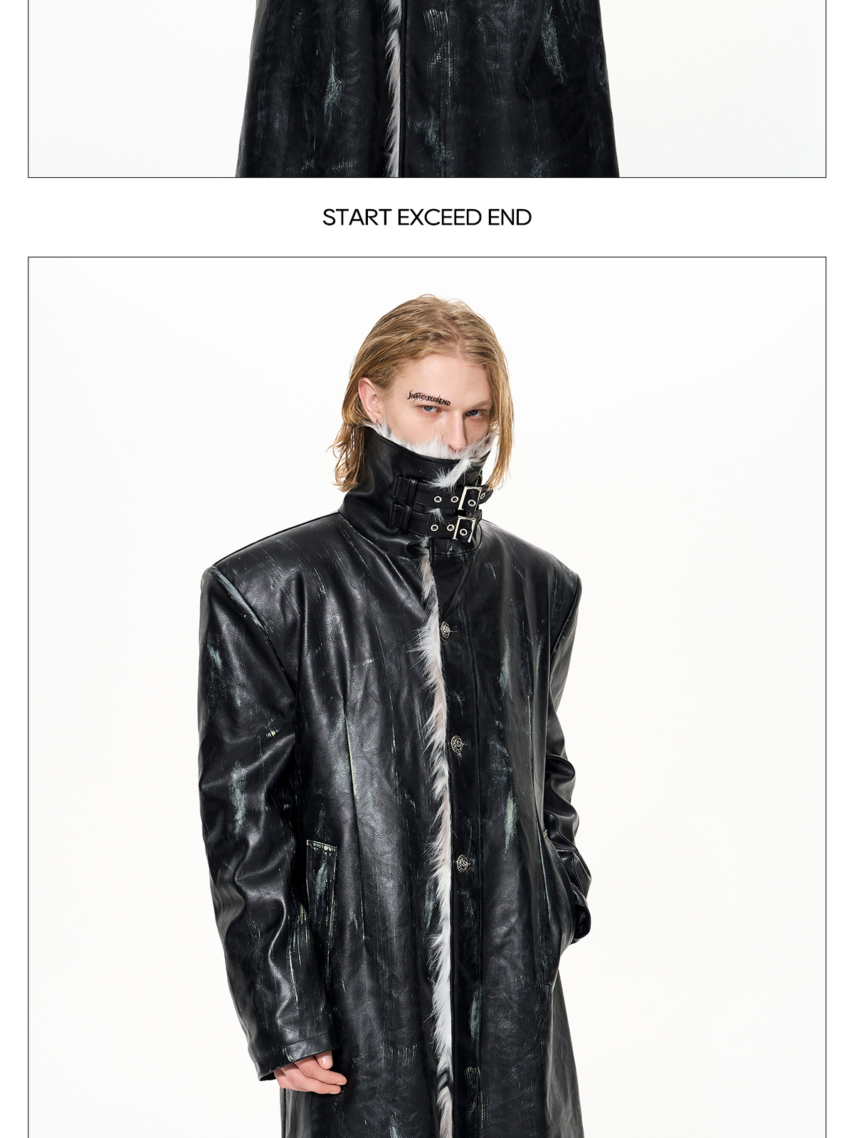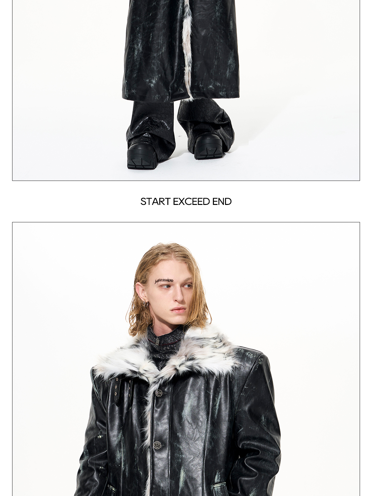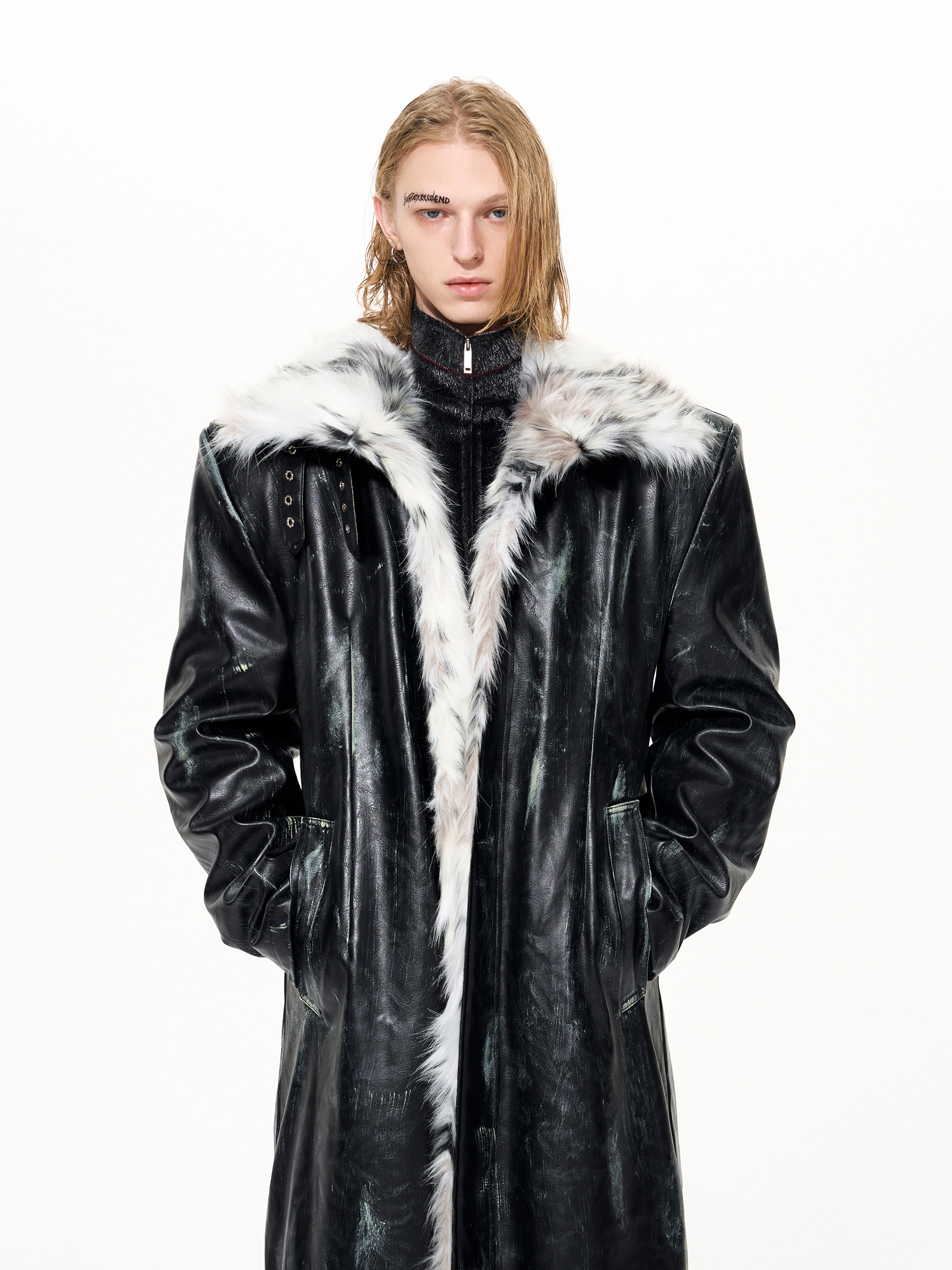 Paint Damage Stand Neck Fake Fur Coat WN22640