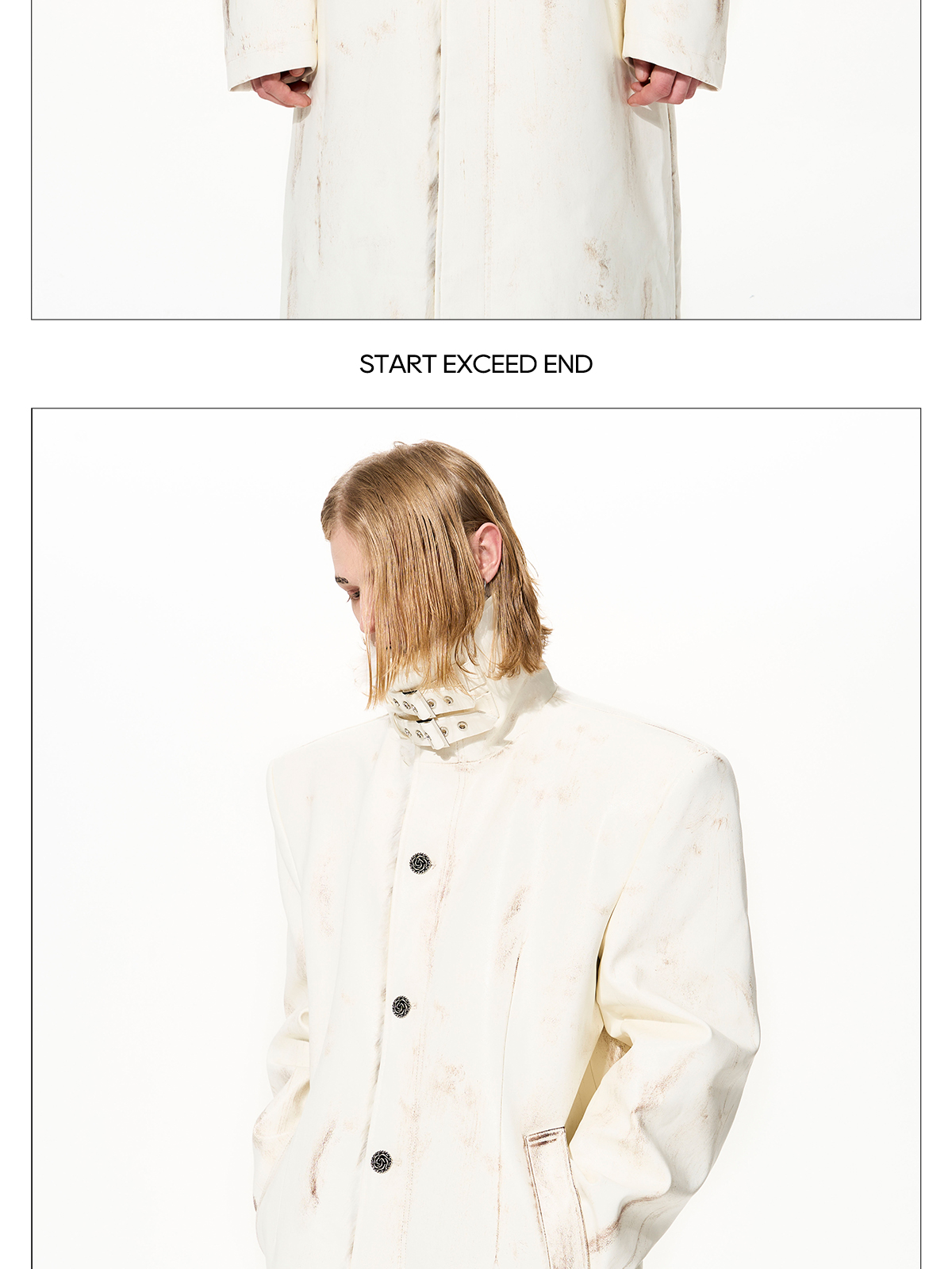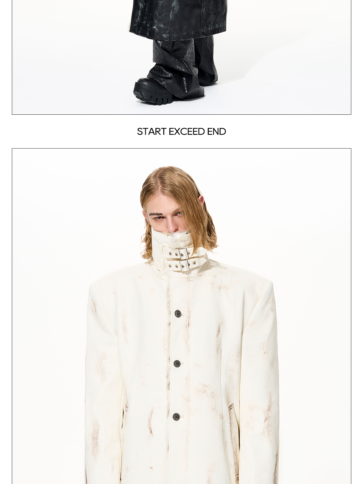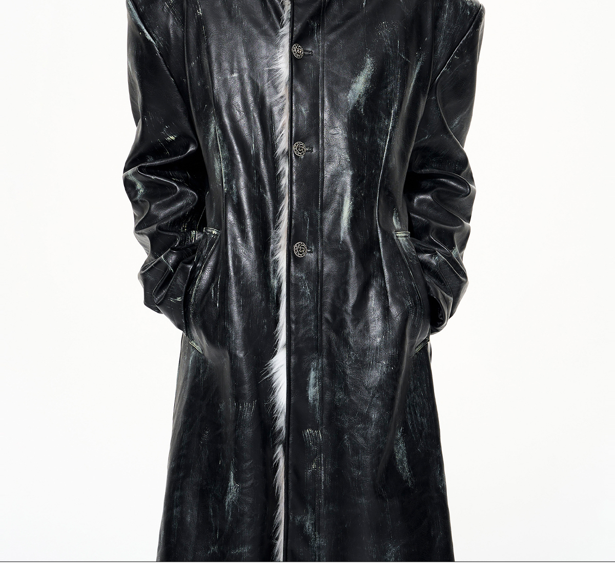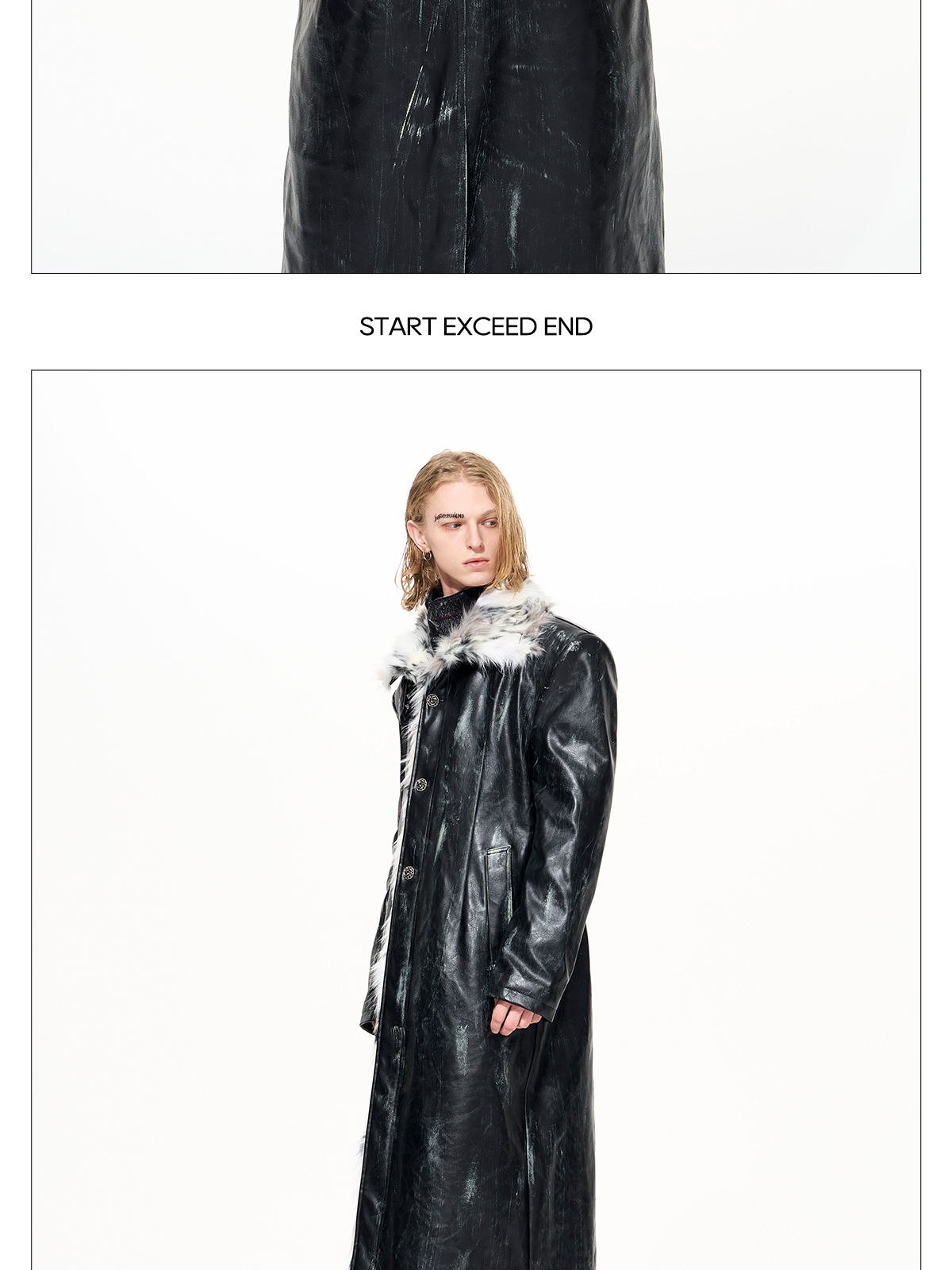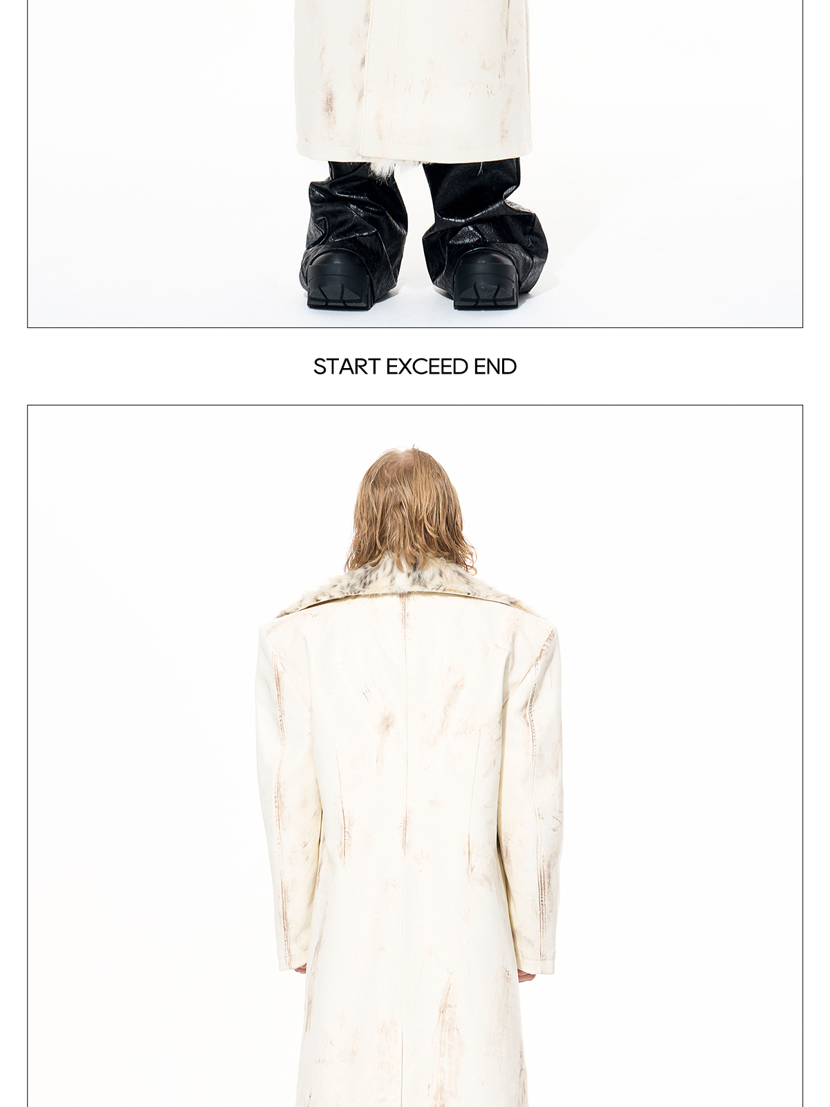 Paint Damage Stand Neck Fake Fur Coat WN22640