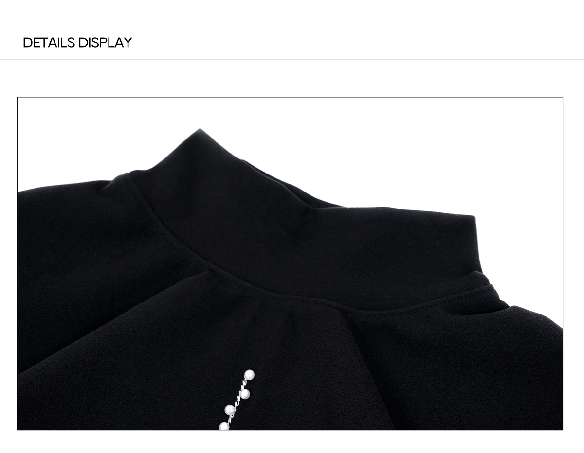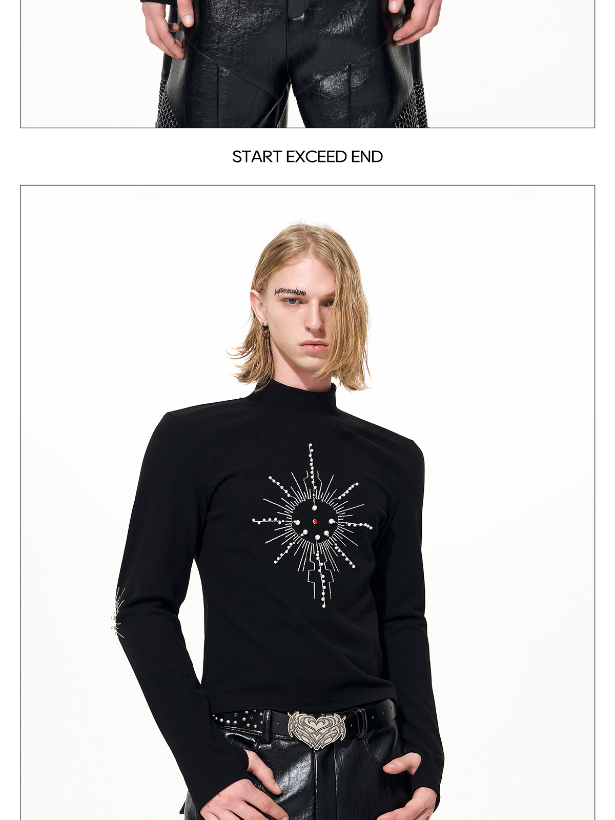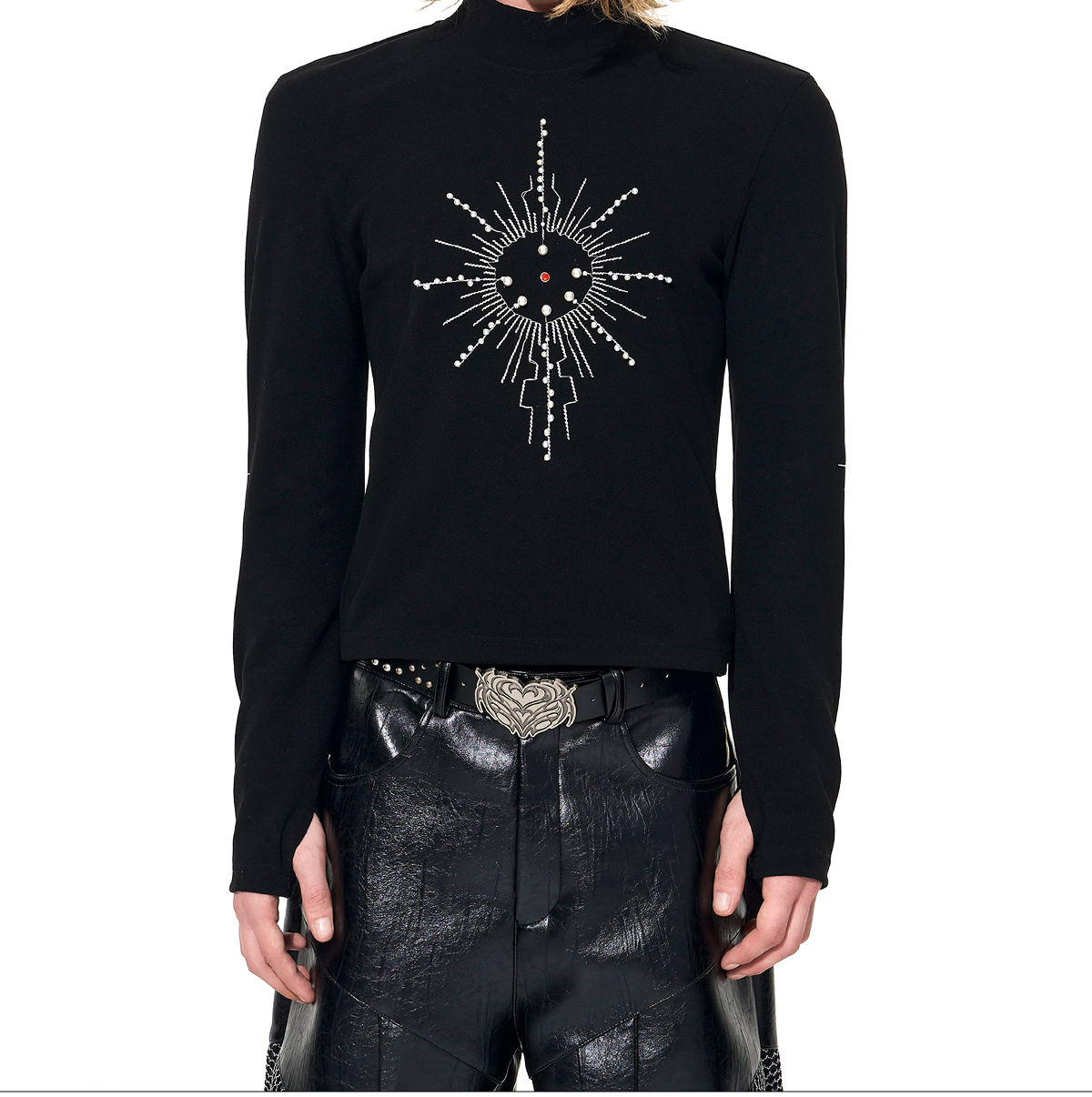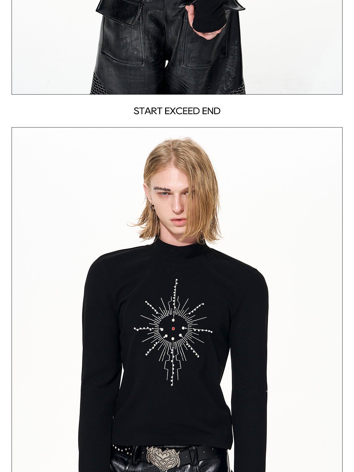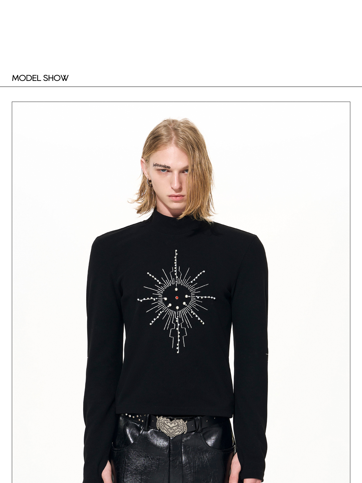 Embroidery Pearl High-Neck Long Sleeve T-Shirt WN22644