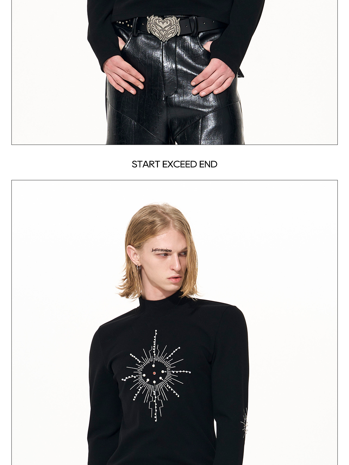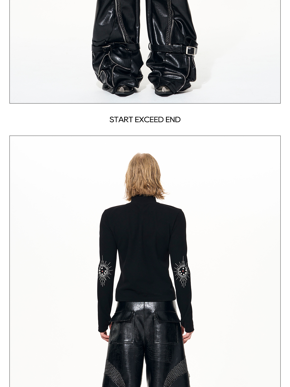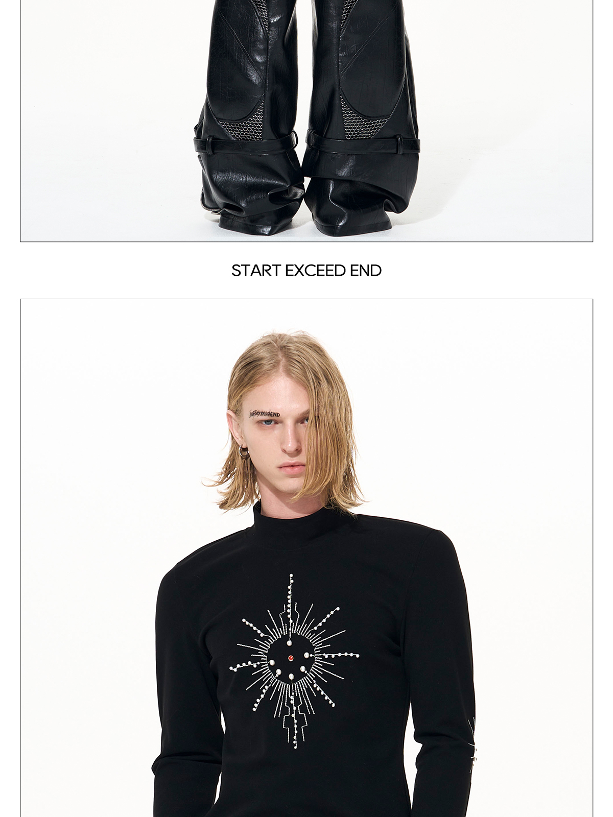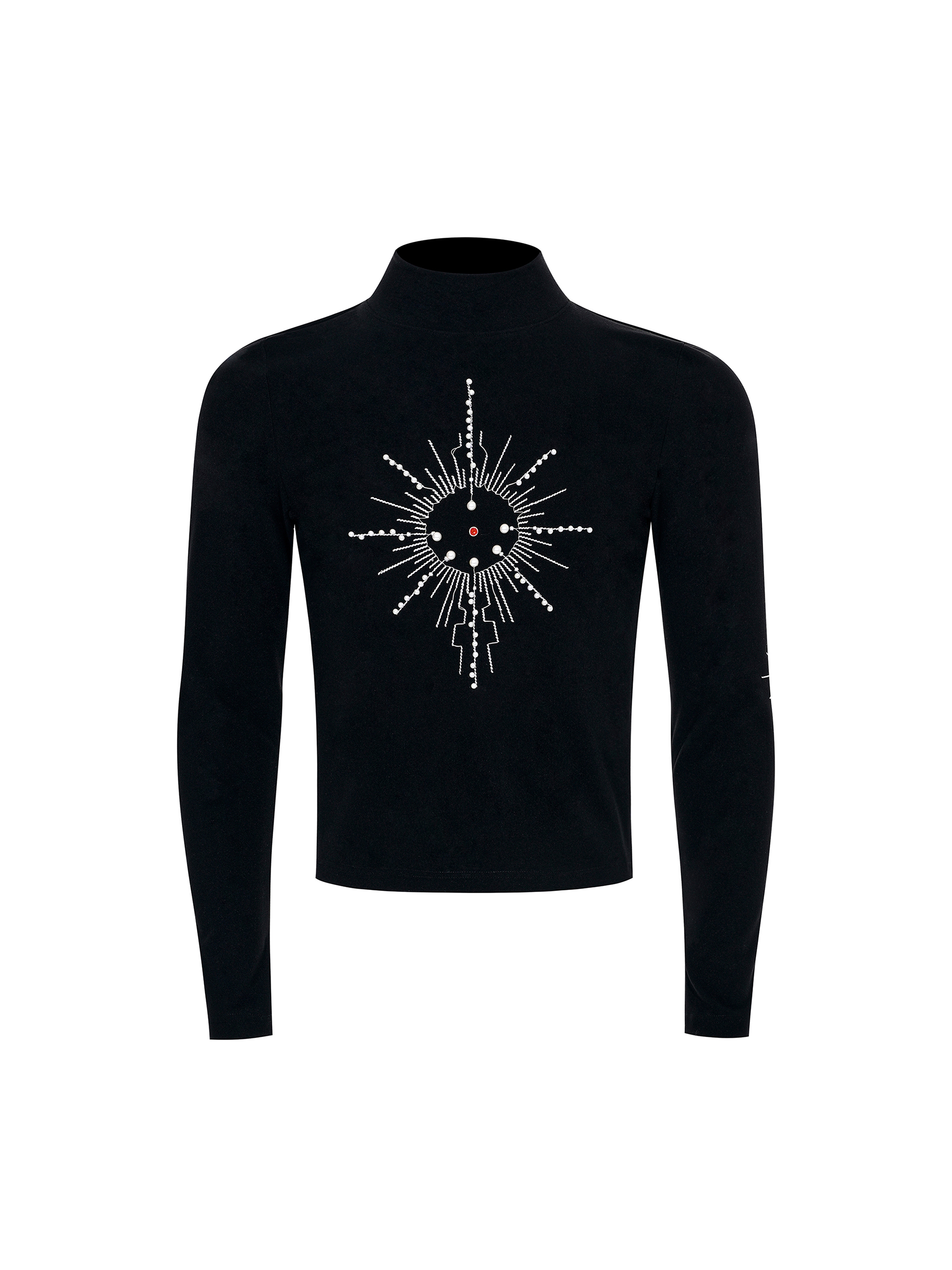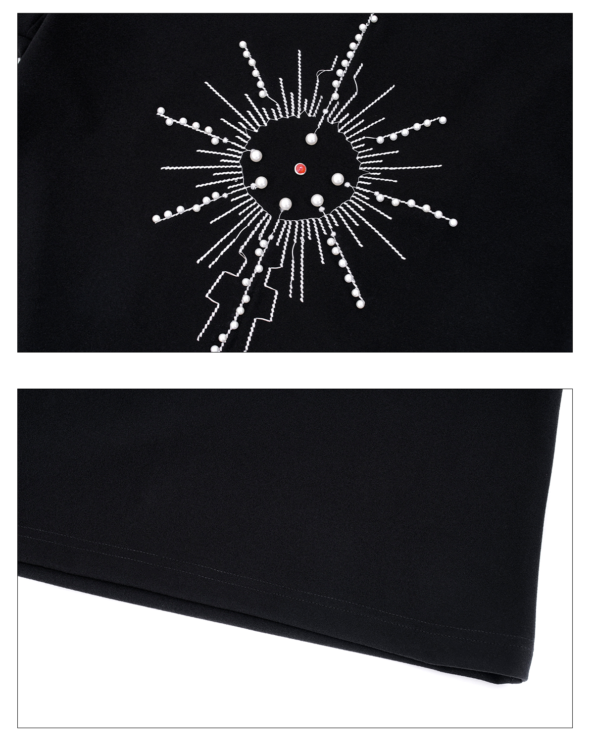 Embroidery Pearl High-Neck Long Sleeve T-Shirt WN22644
