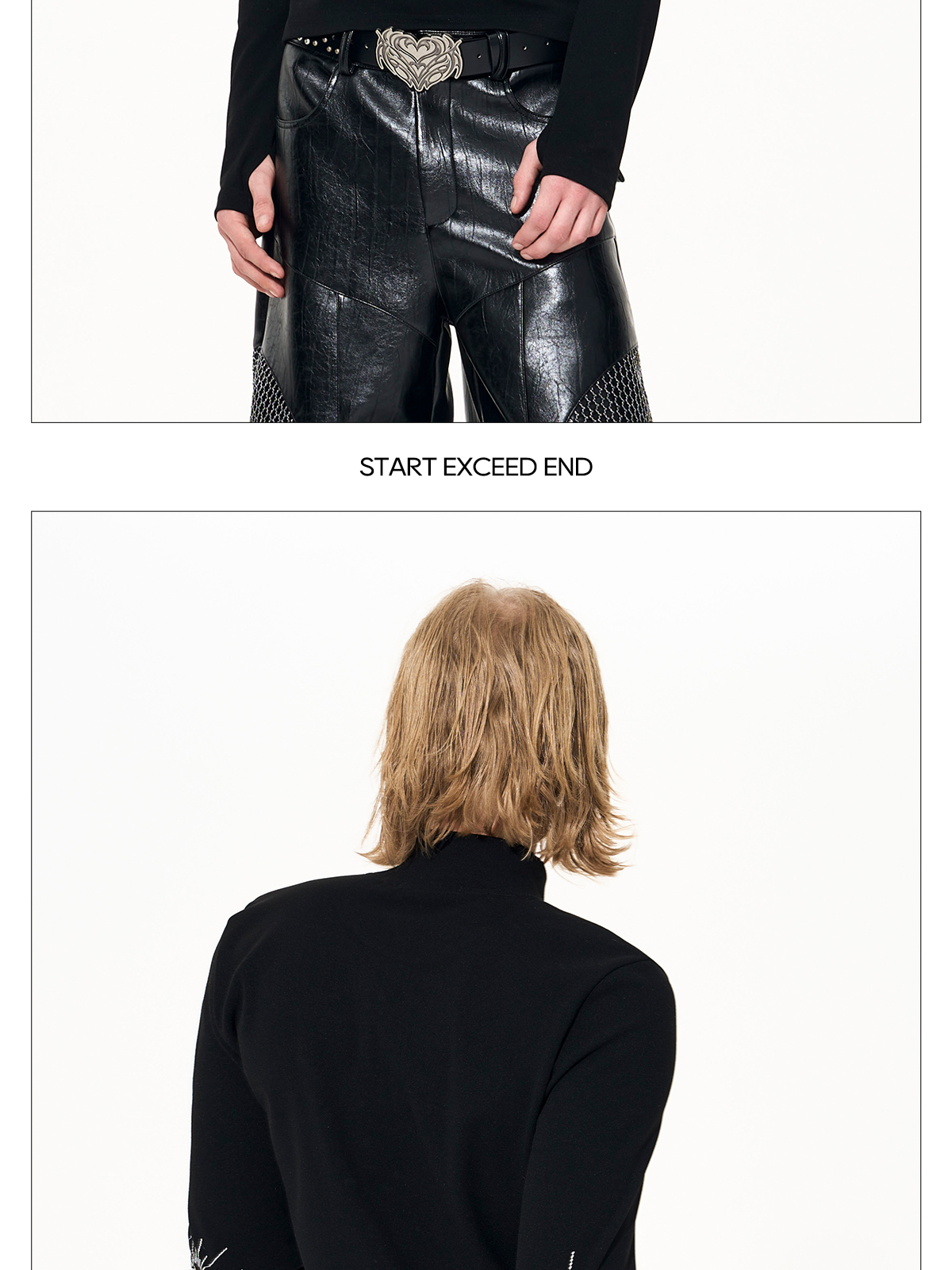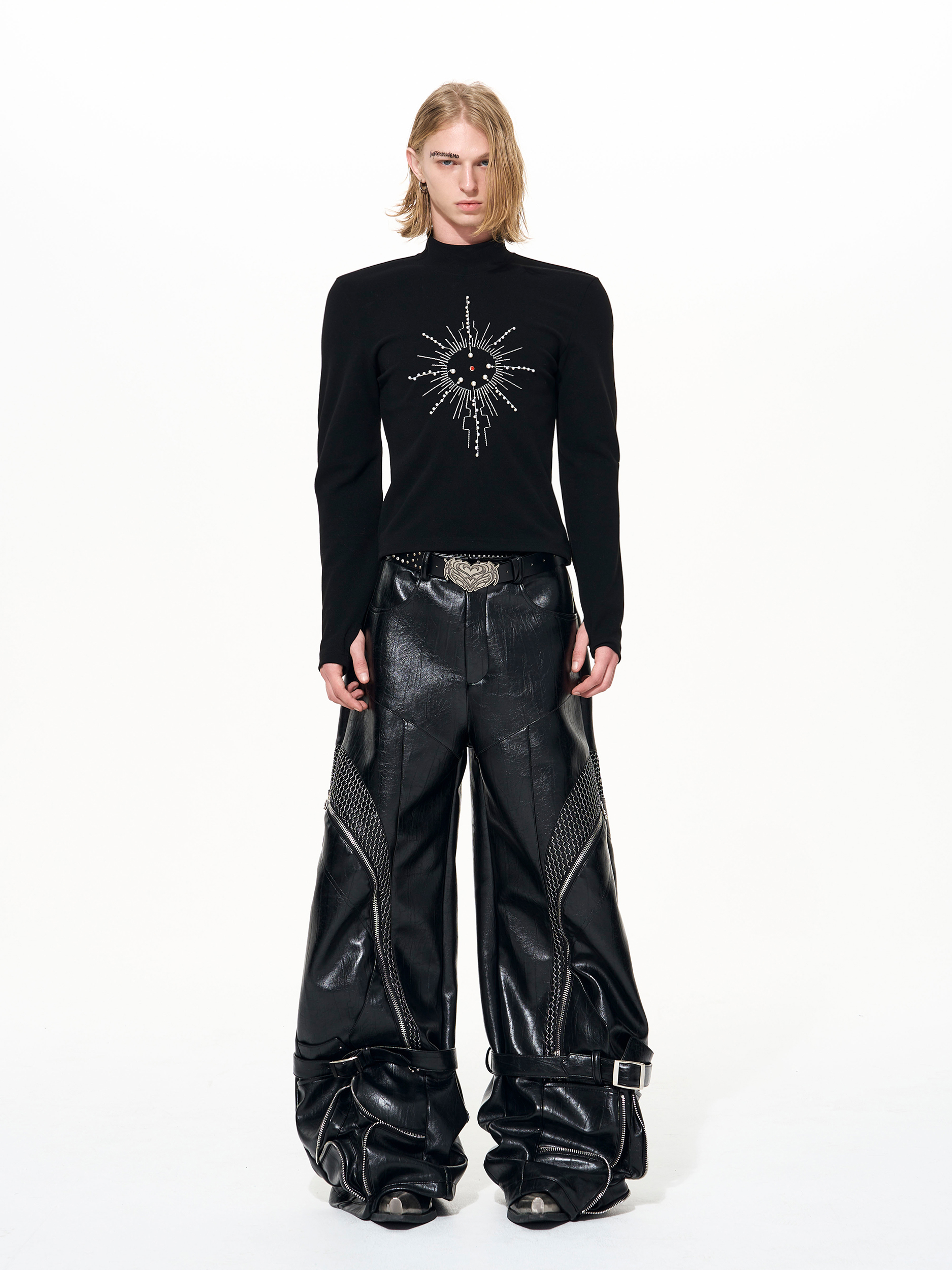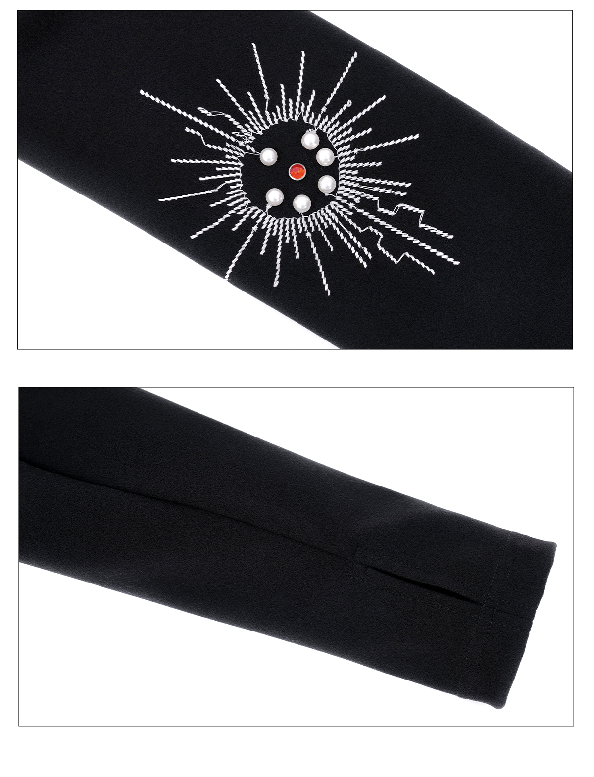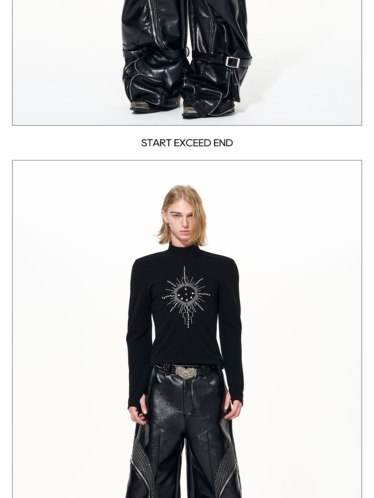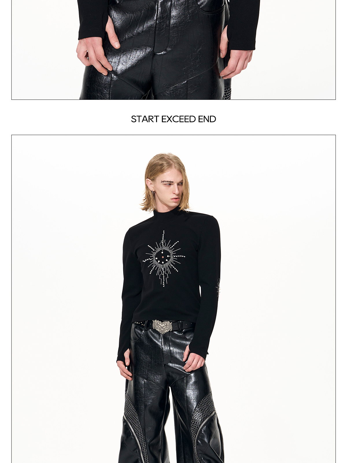 Embroidery Pearl High-Neck Long Sleeve T-Shirt WN22644