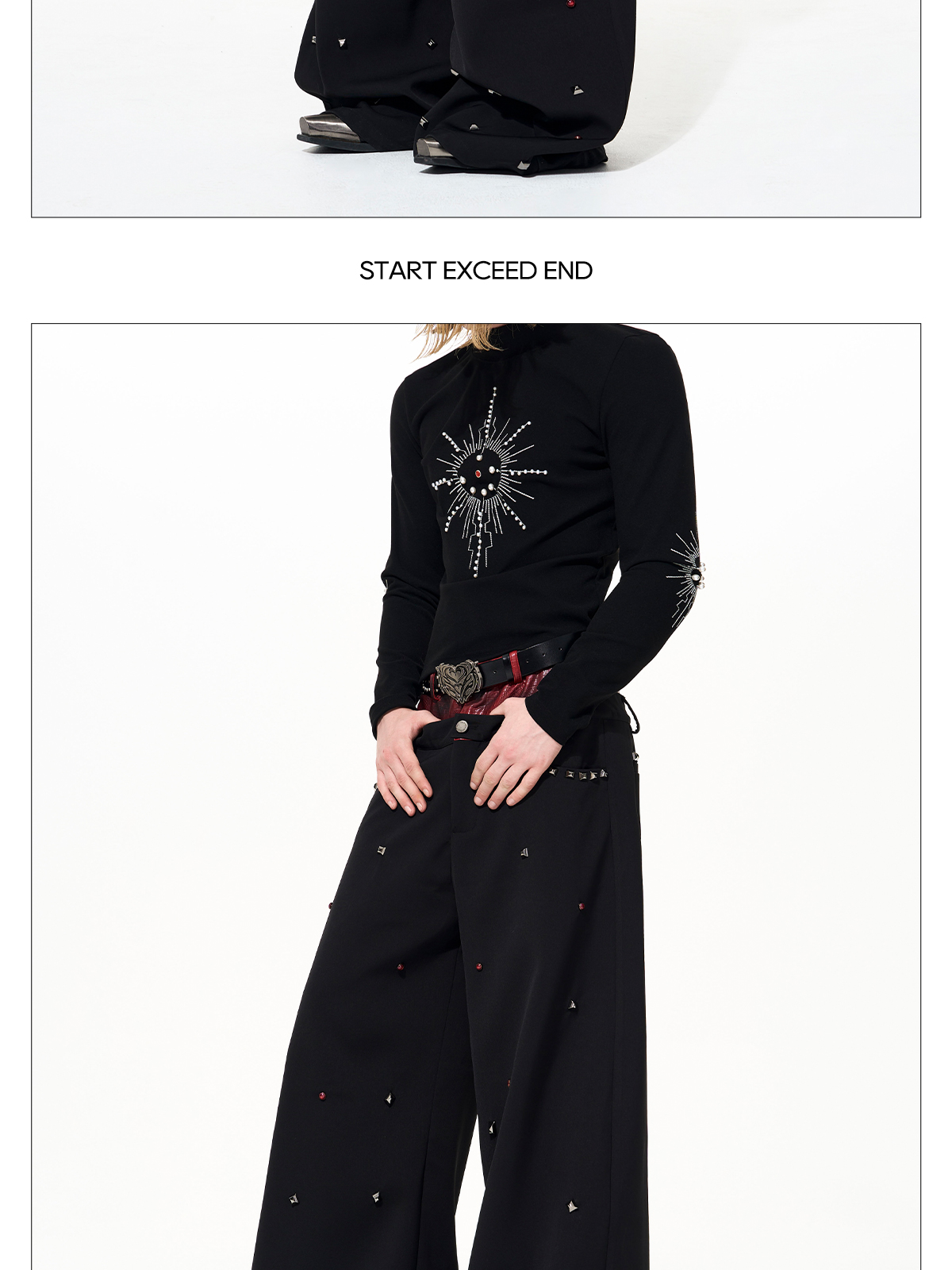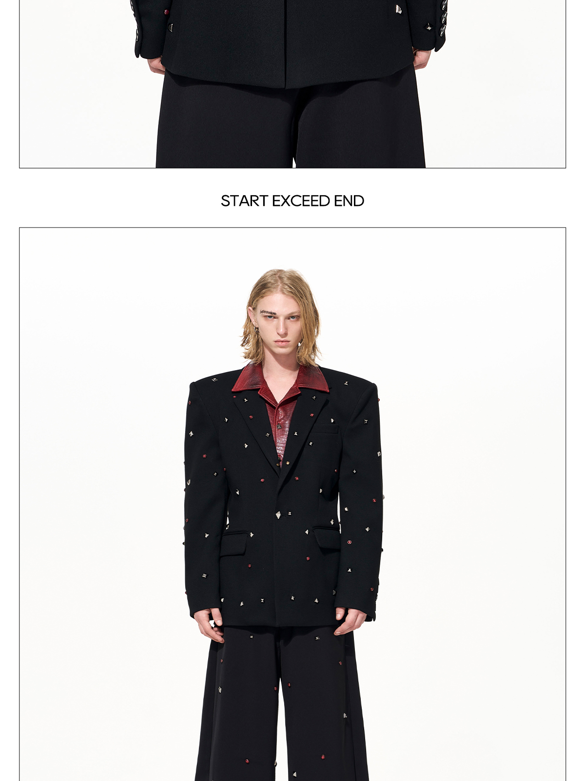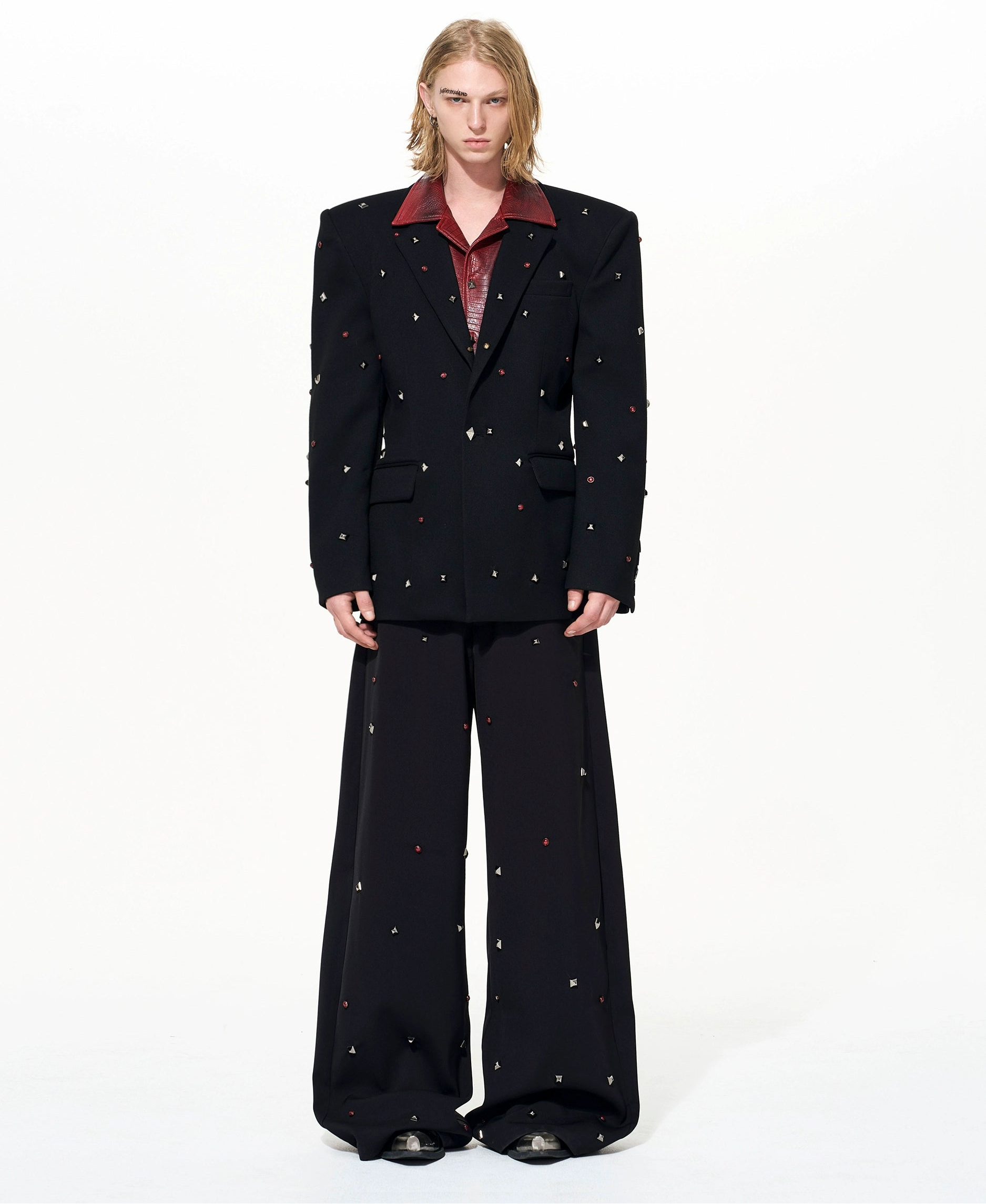 PU Leather Fake Layered Studs Design Tailored Jacket & Wide Leg Trousers Setup WN22648