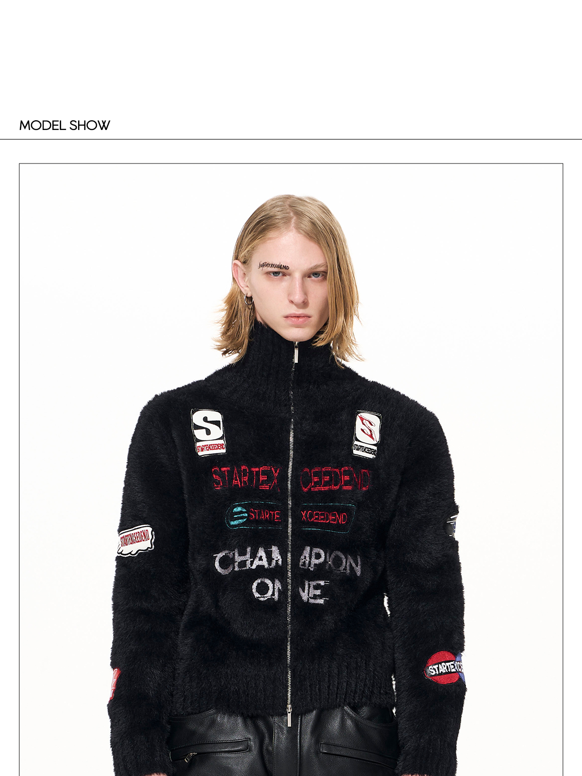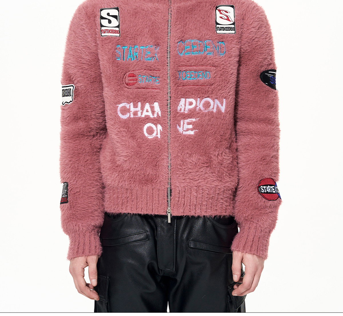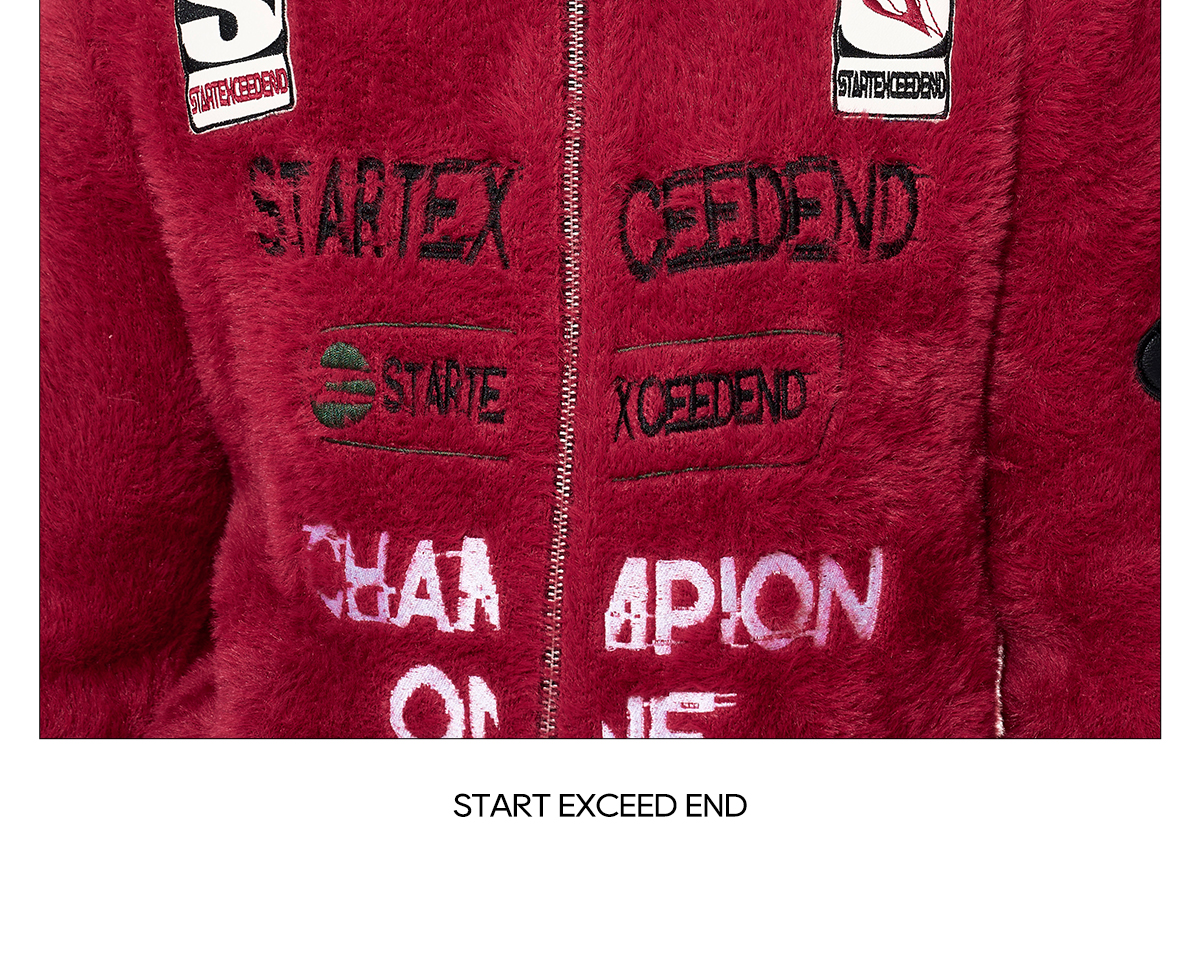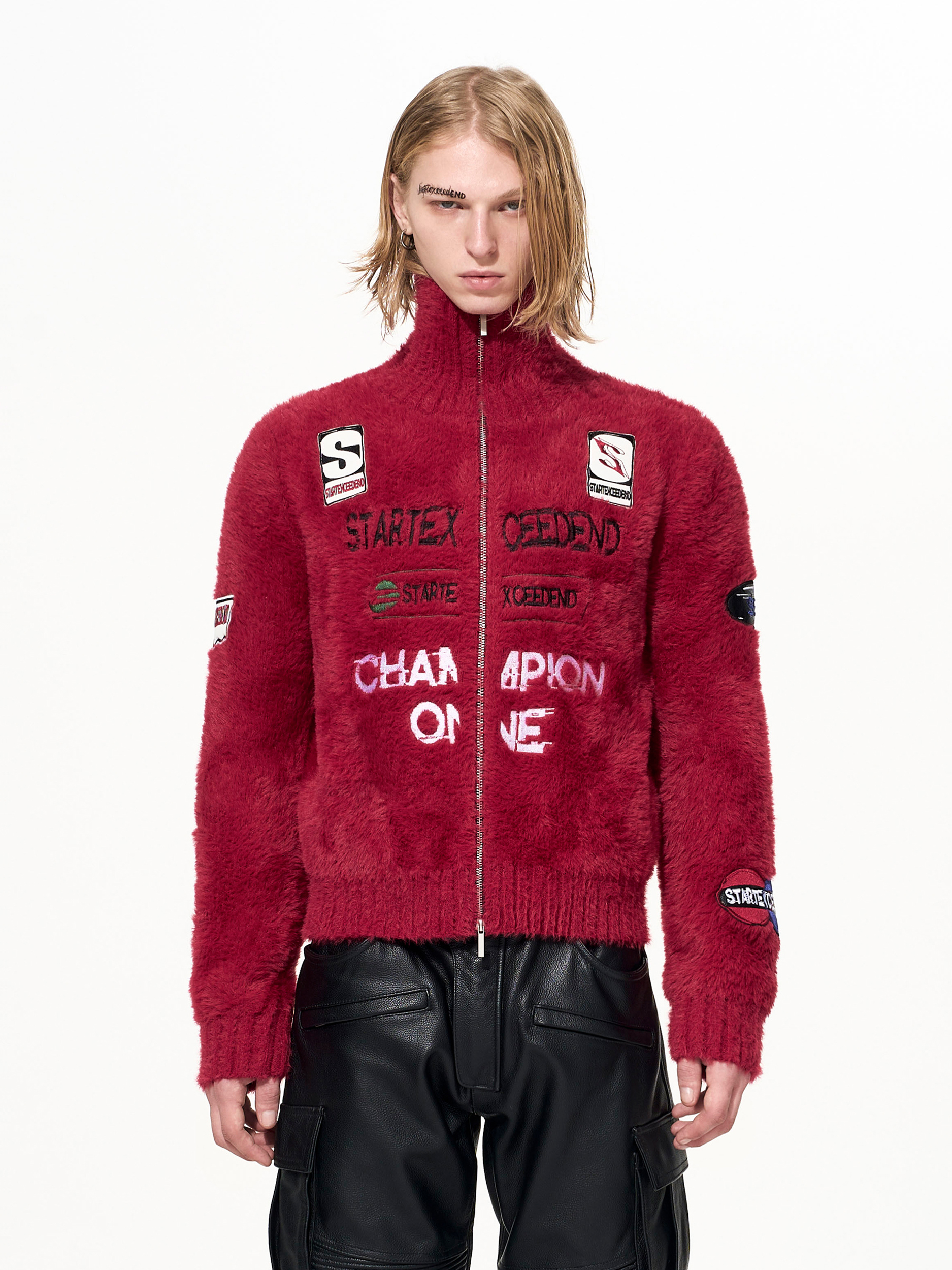 Letter Embroidery Print High-Neck Zipper Knit Cardigan WN22649