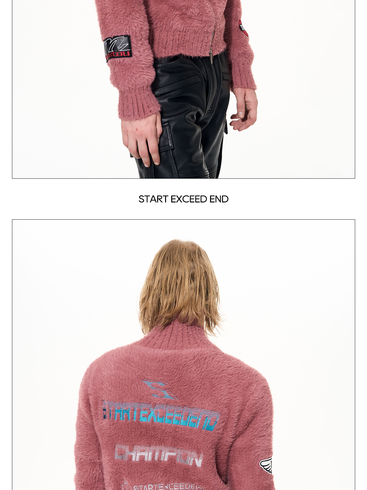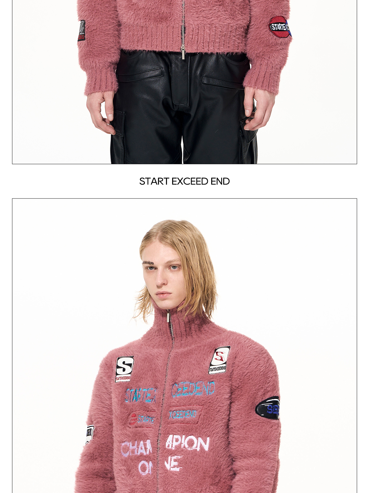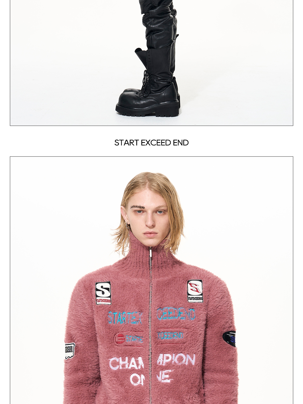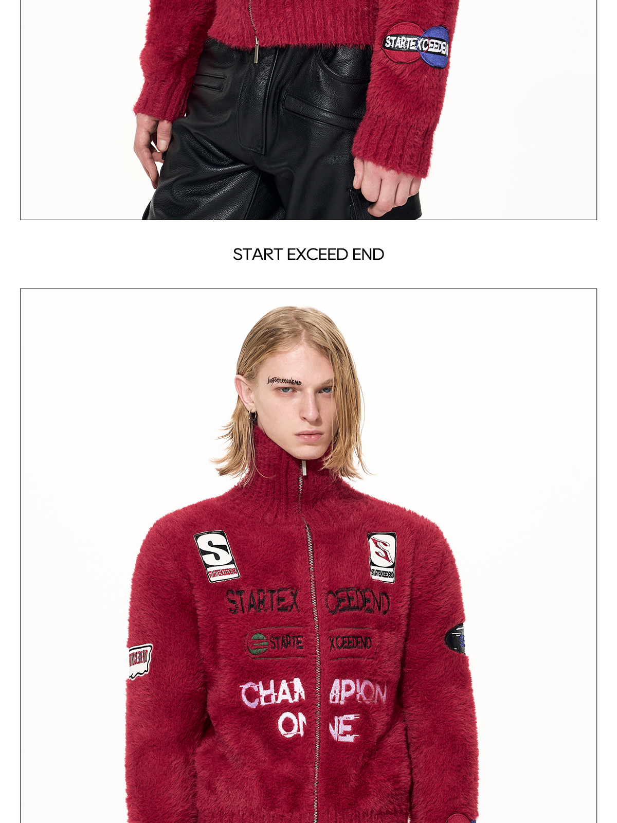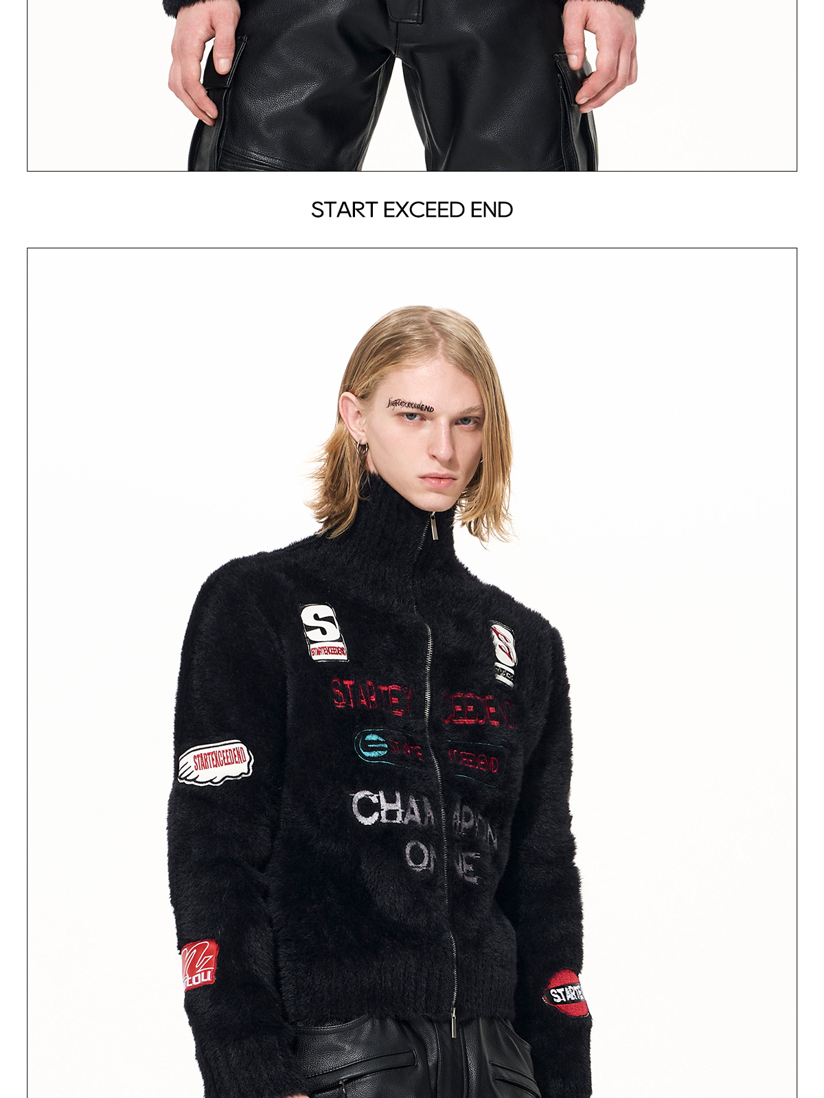 Letter Embroidery Print High-Neck Zipper Knit Cardigan WN22649