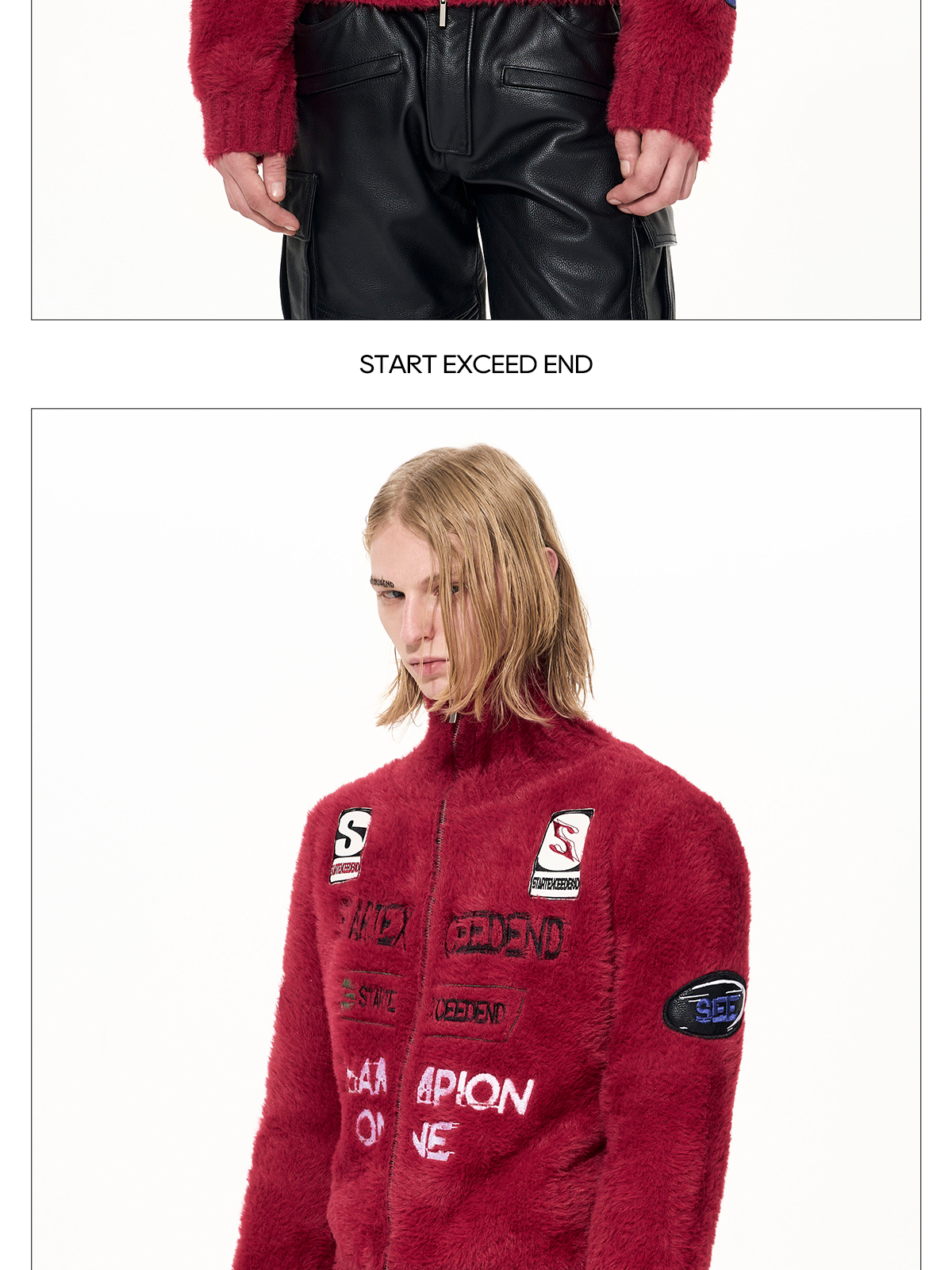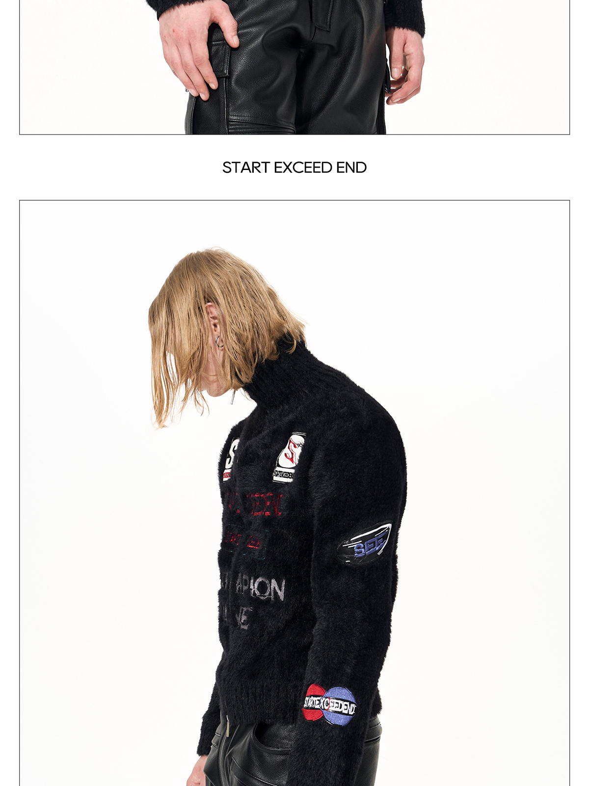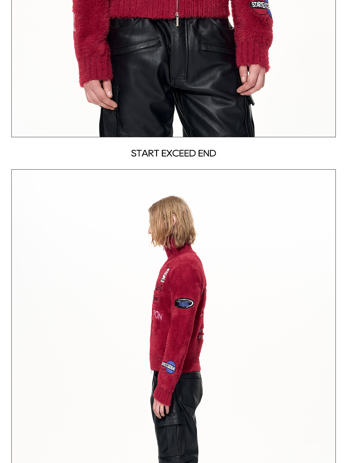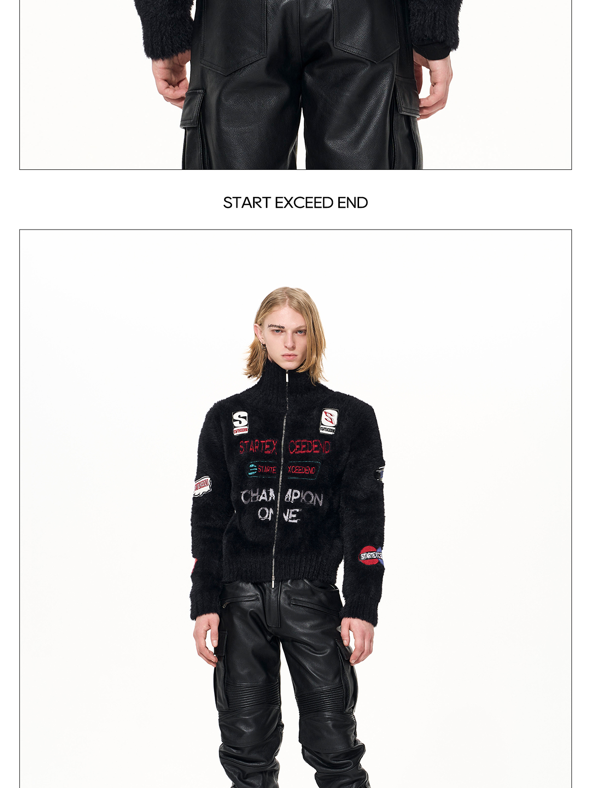 Letter Embroidery Print High-Neck Zipper Knit Cardigan WN22649