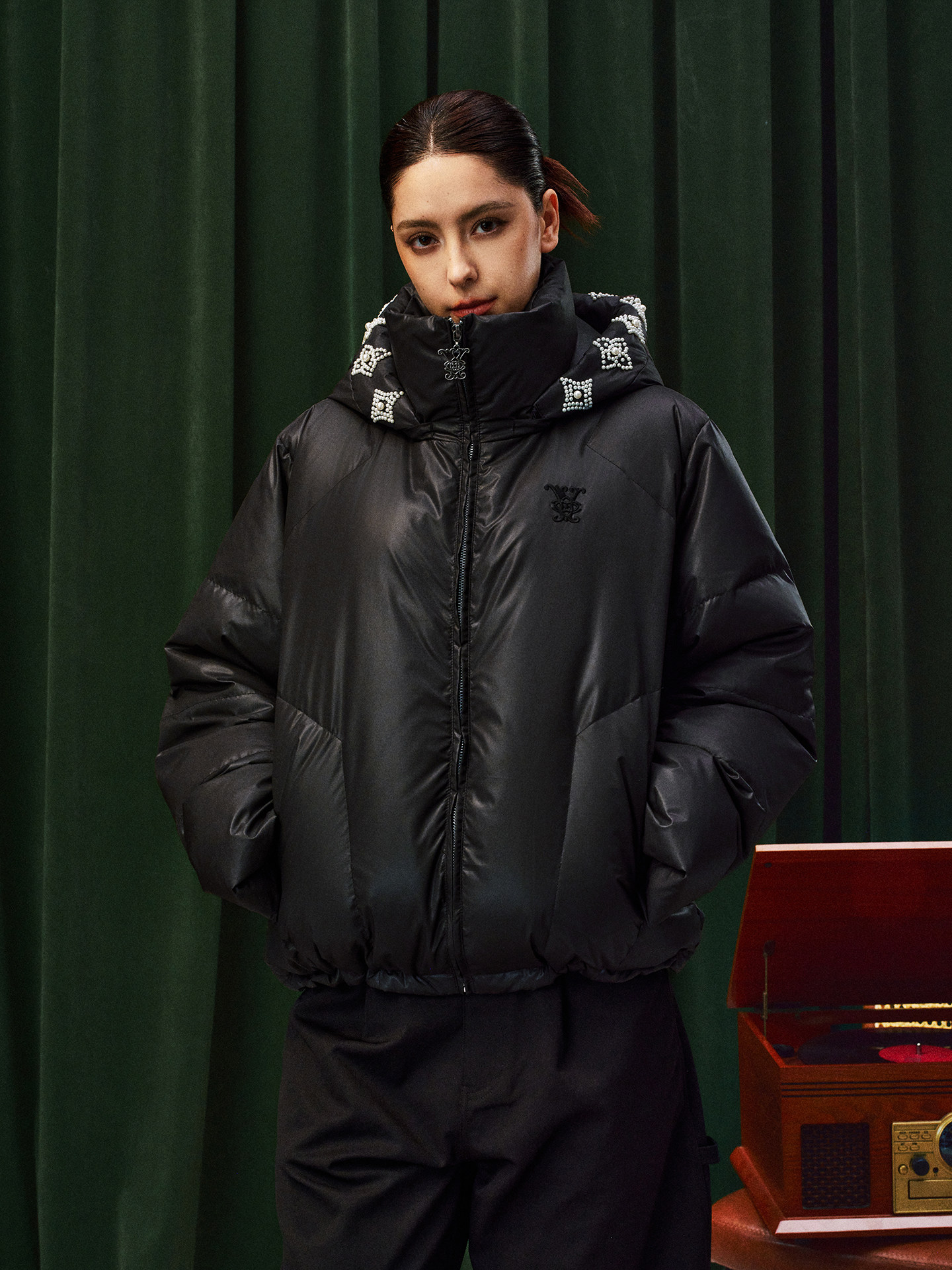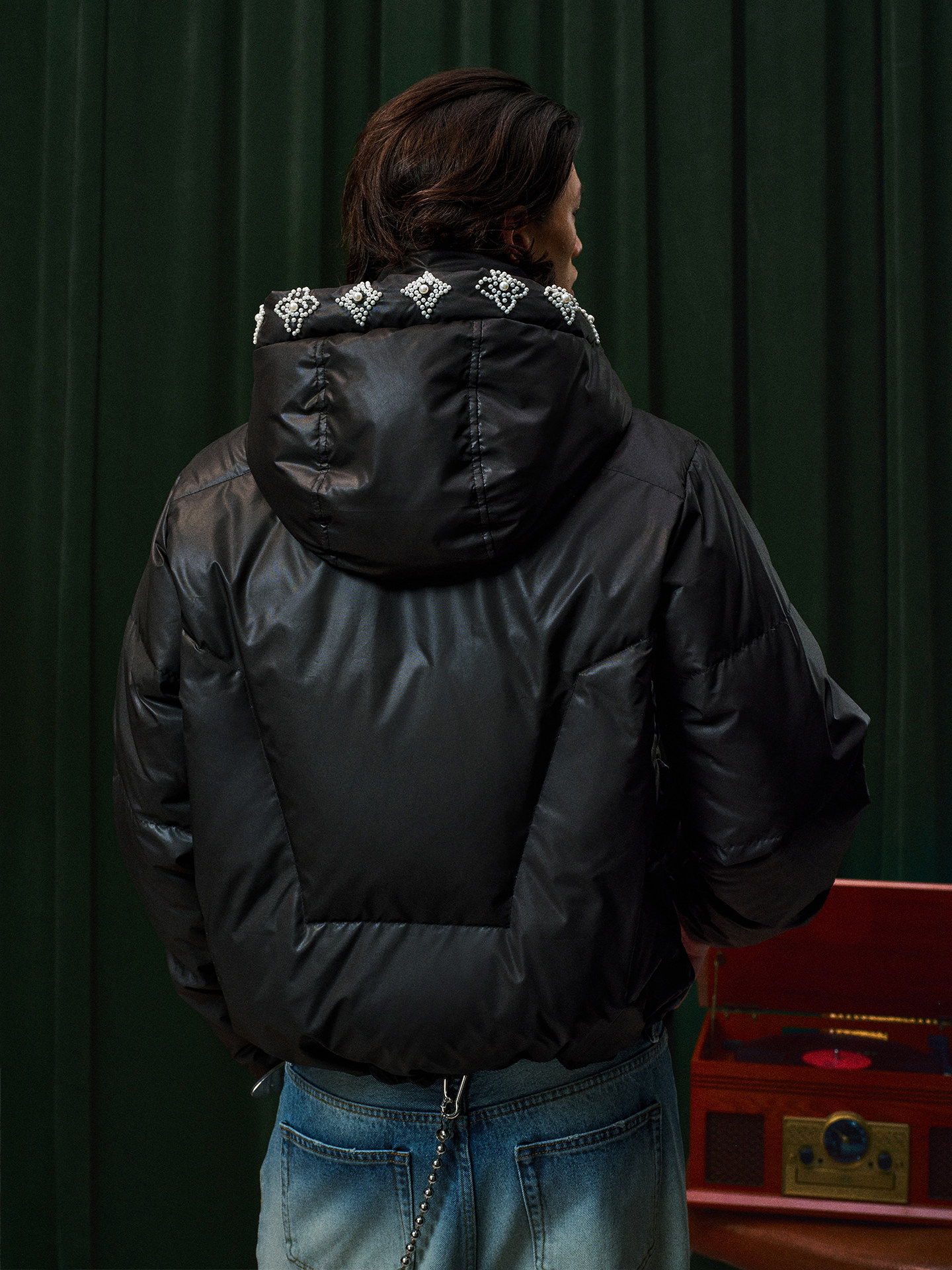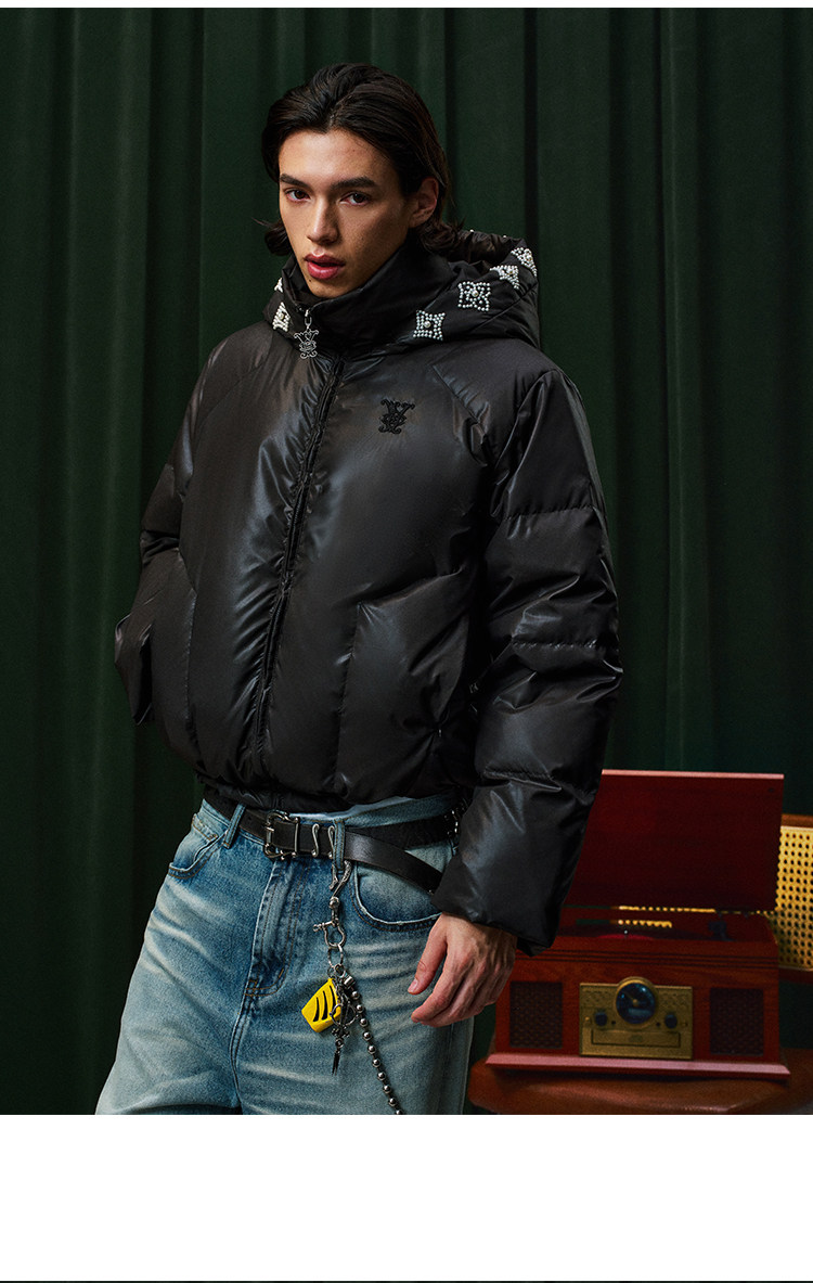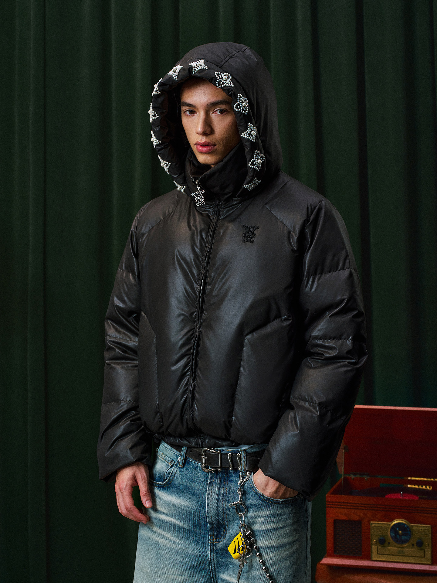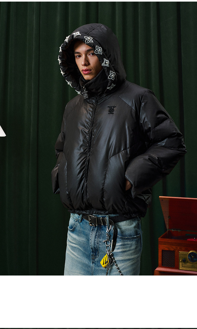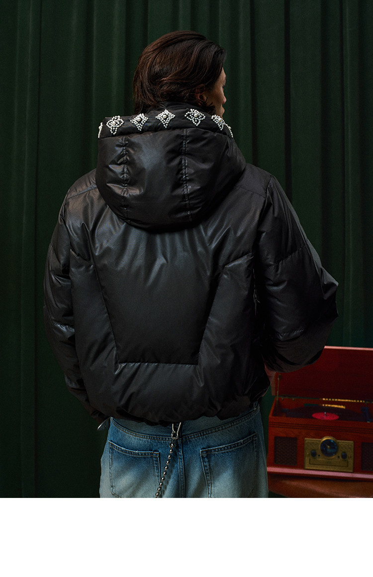 Detachable Hood Beaded White Duck Down Jacket WN23199