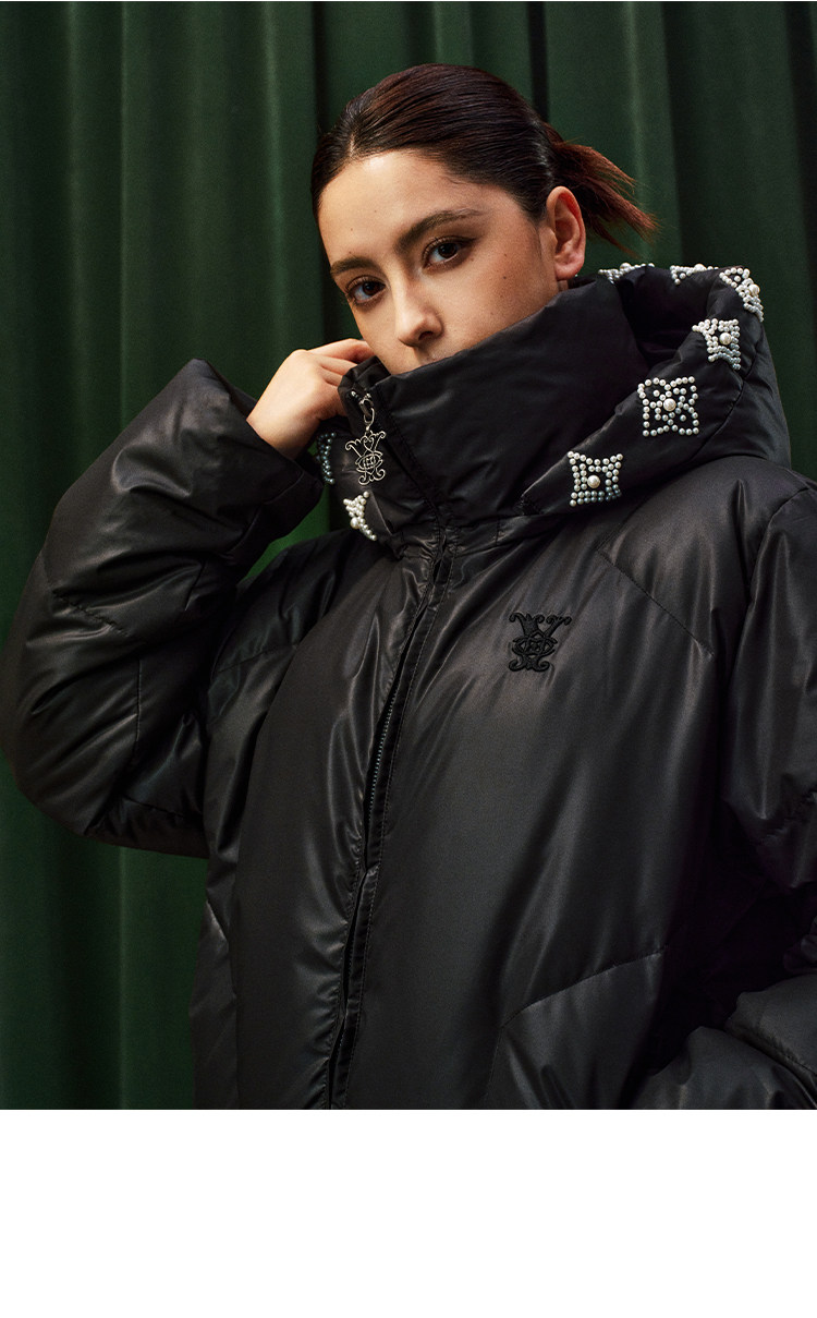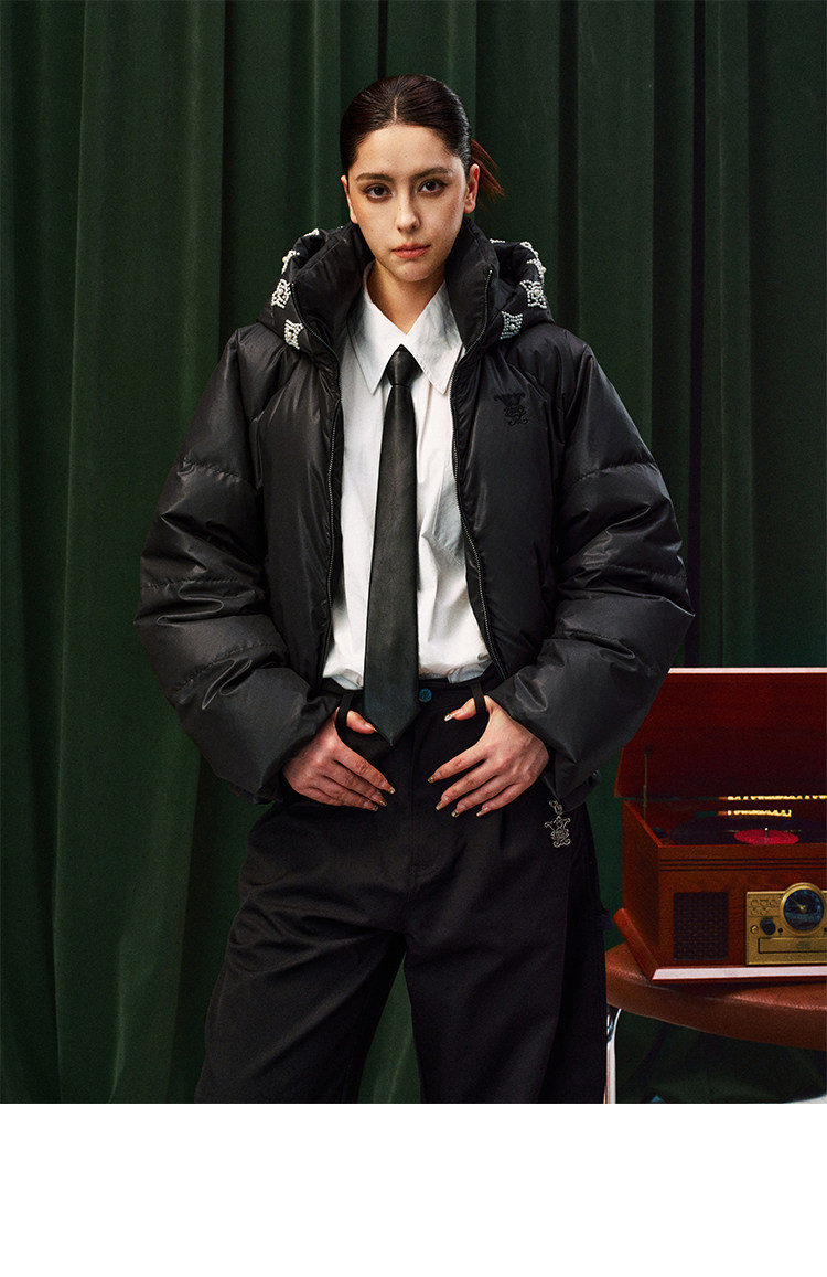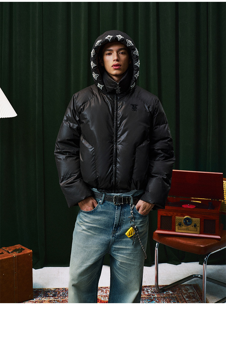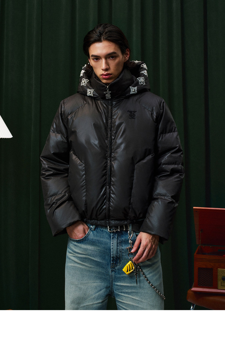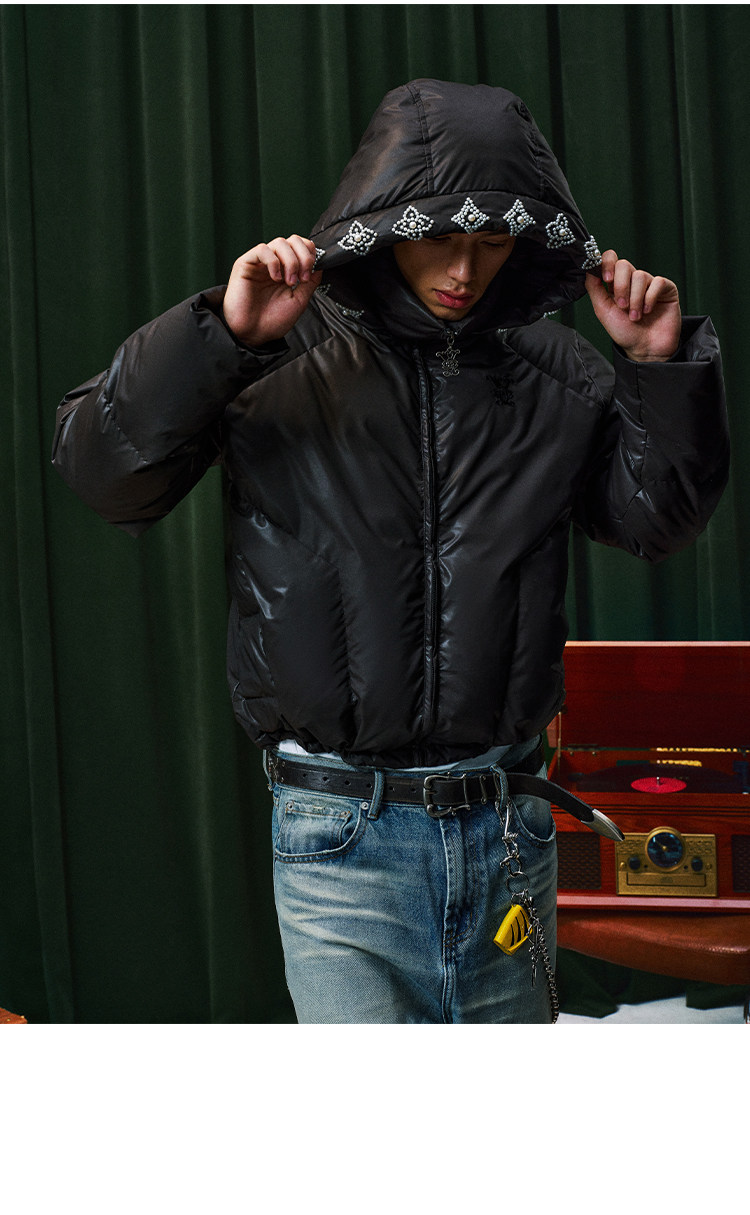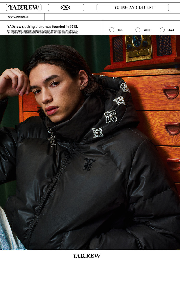 Detachable Hood Beaded White Duck Down Jacket WN23199