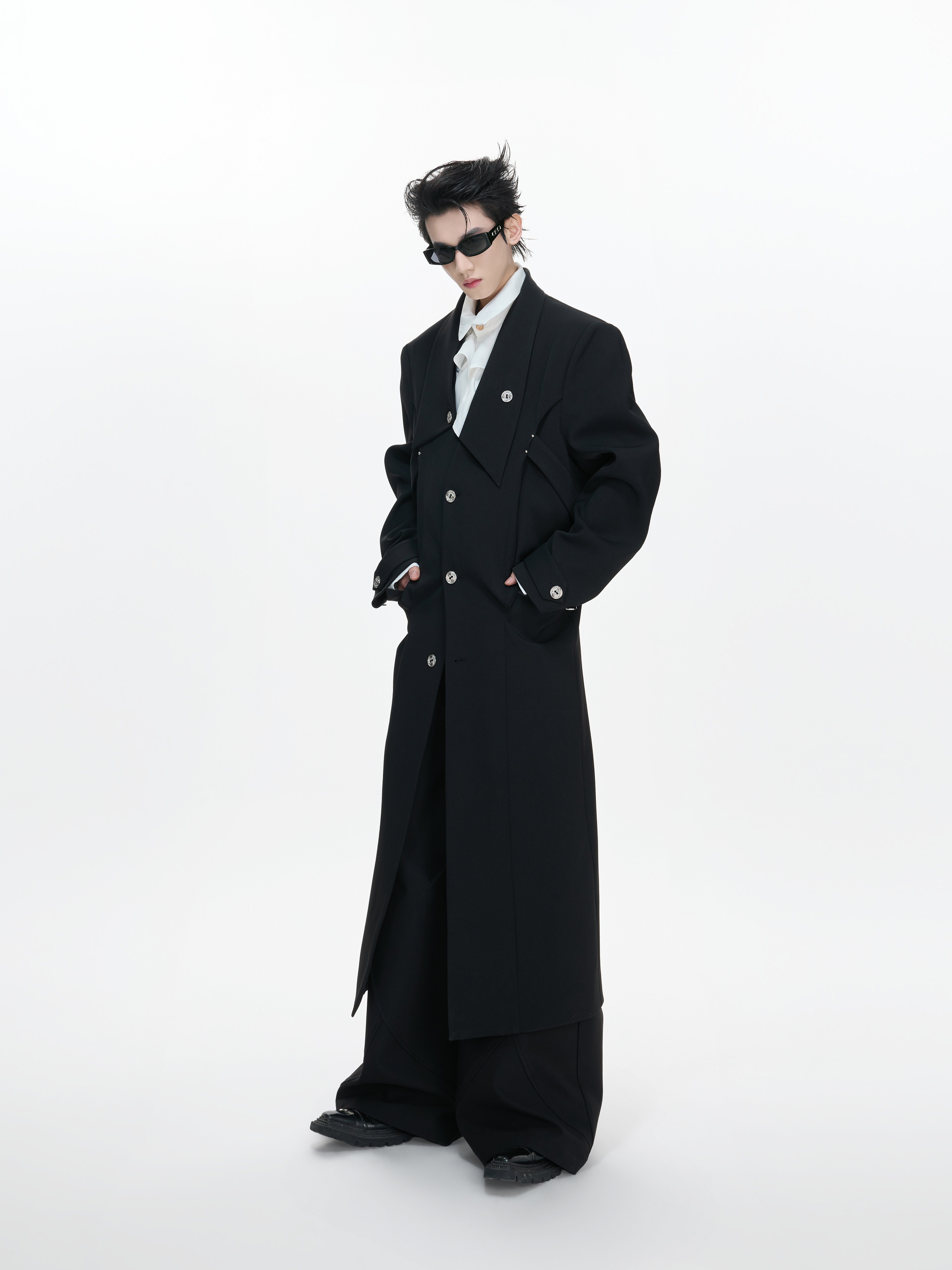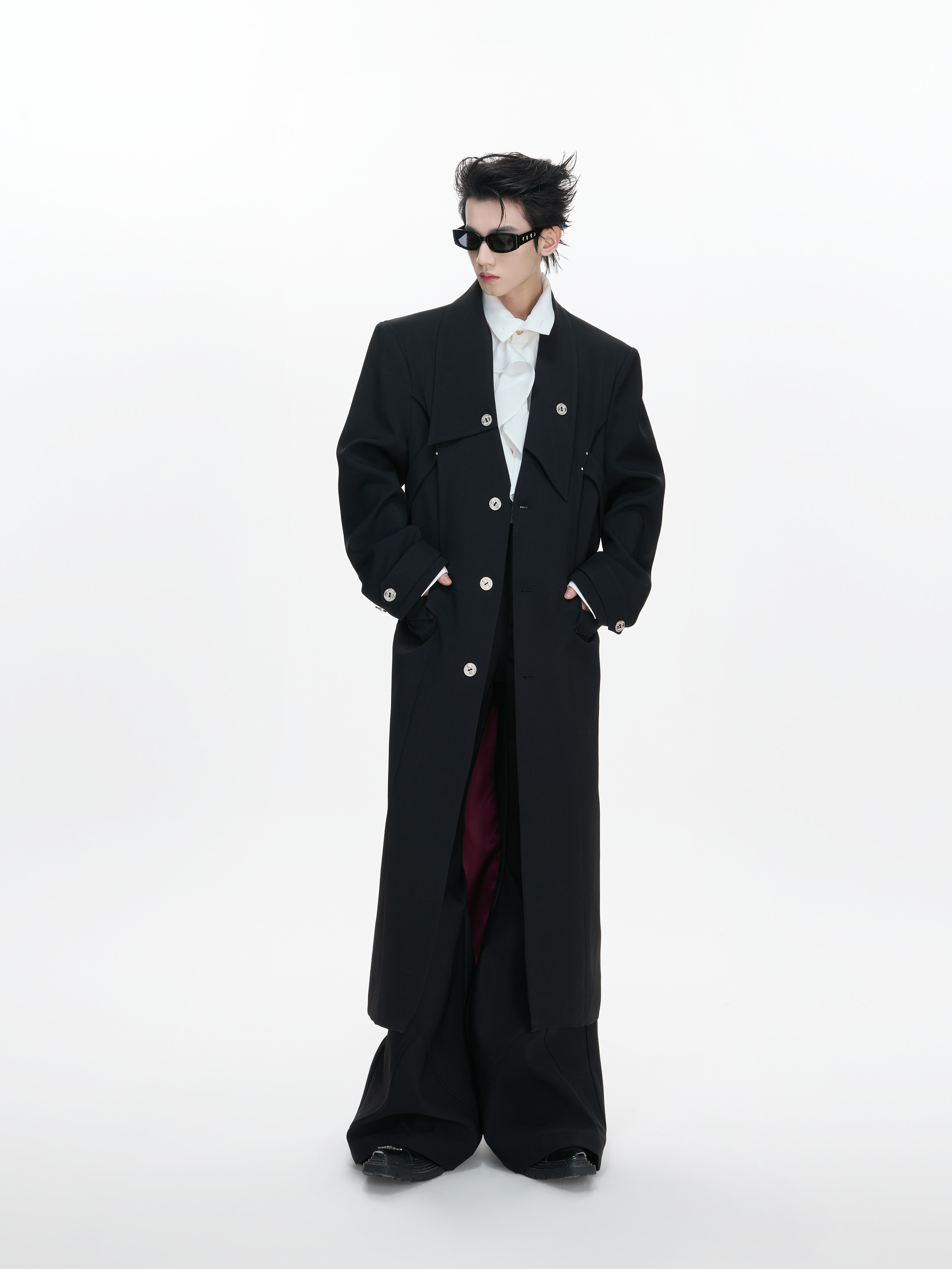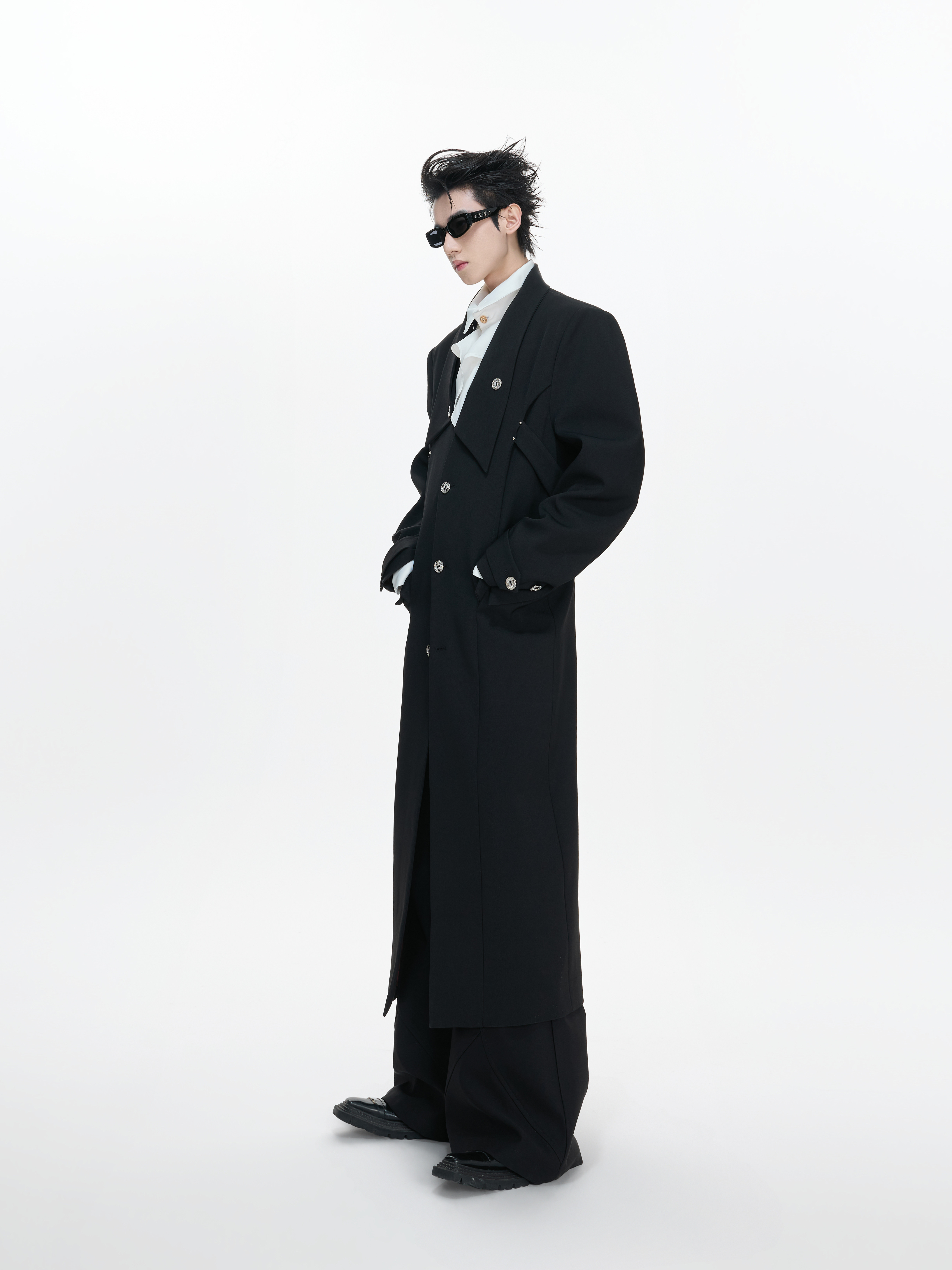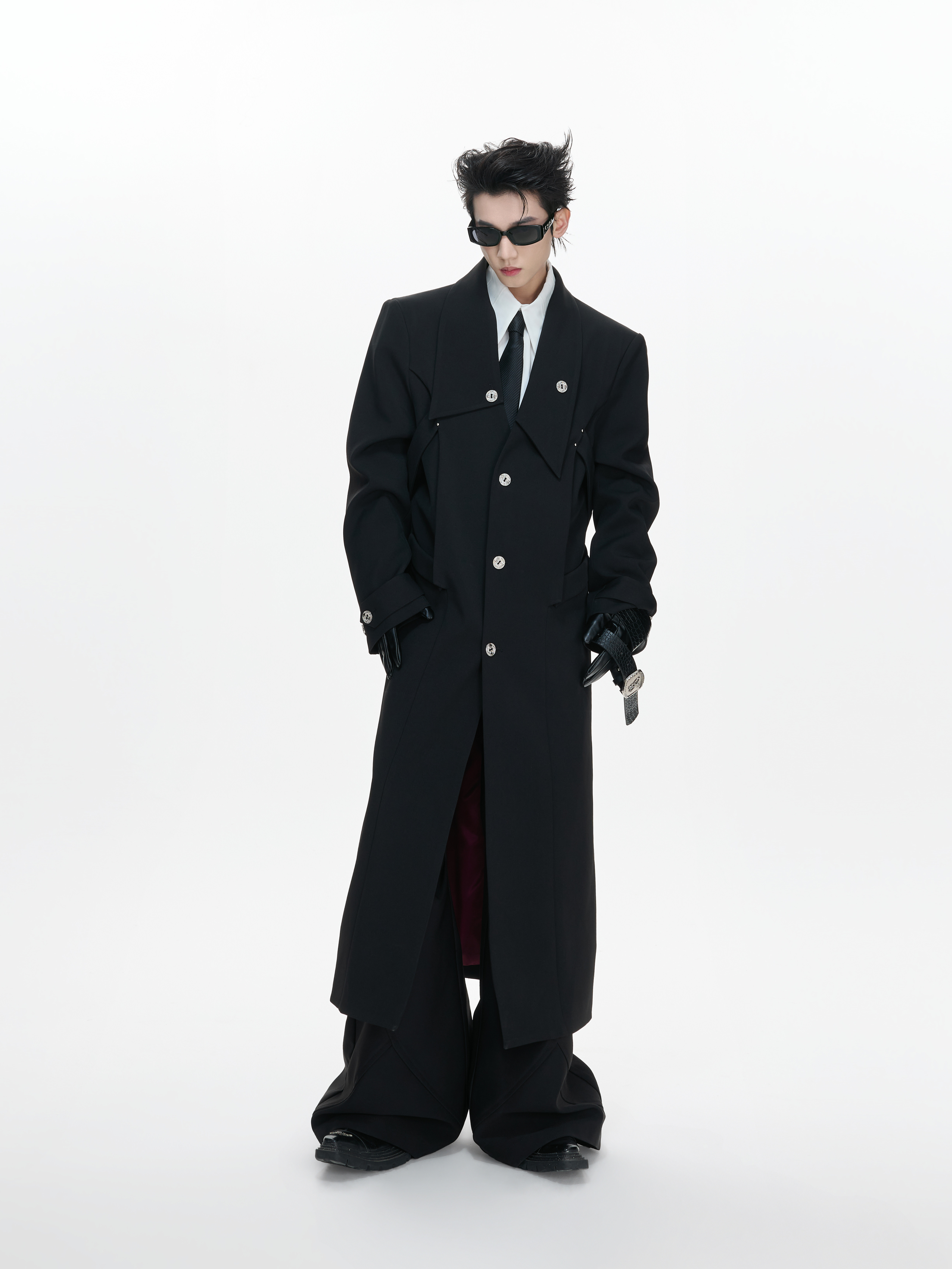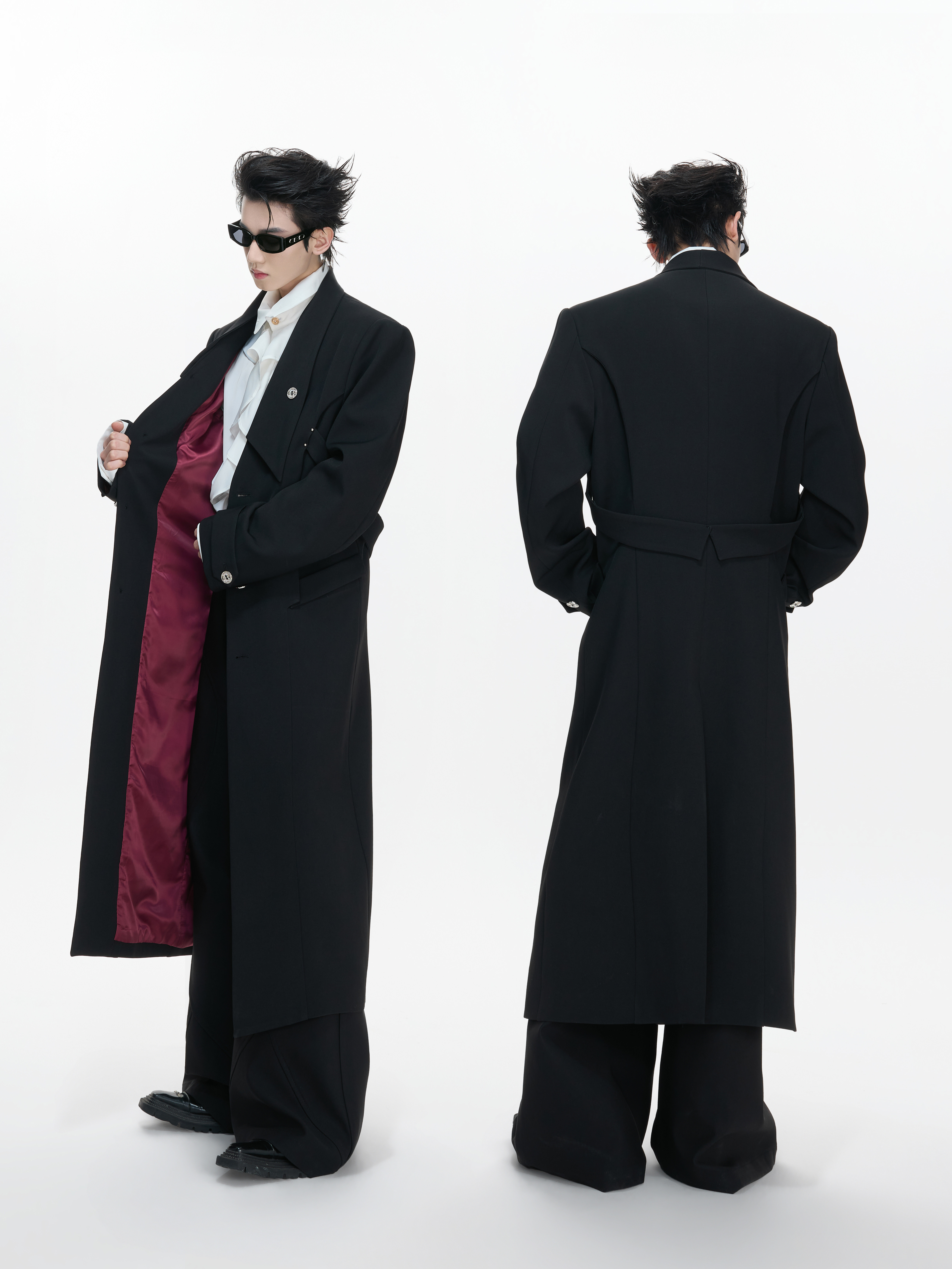 Waist-Cinched Slit Notch-Lapel Coat WN23312