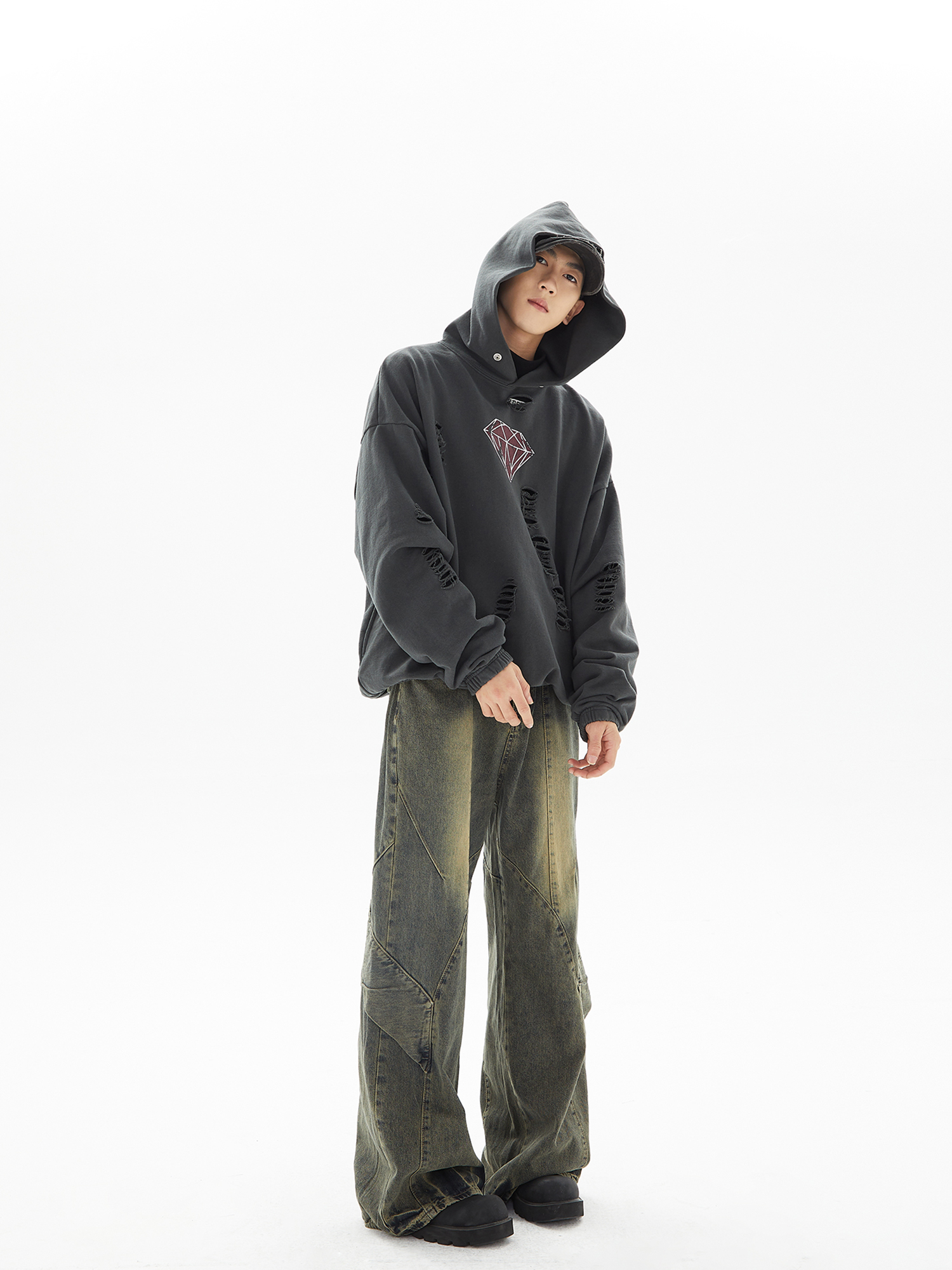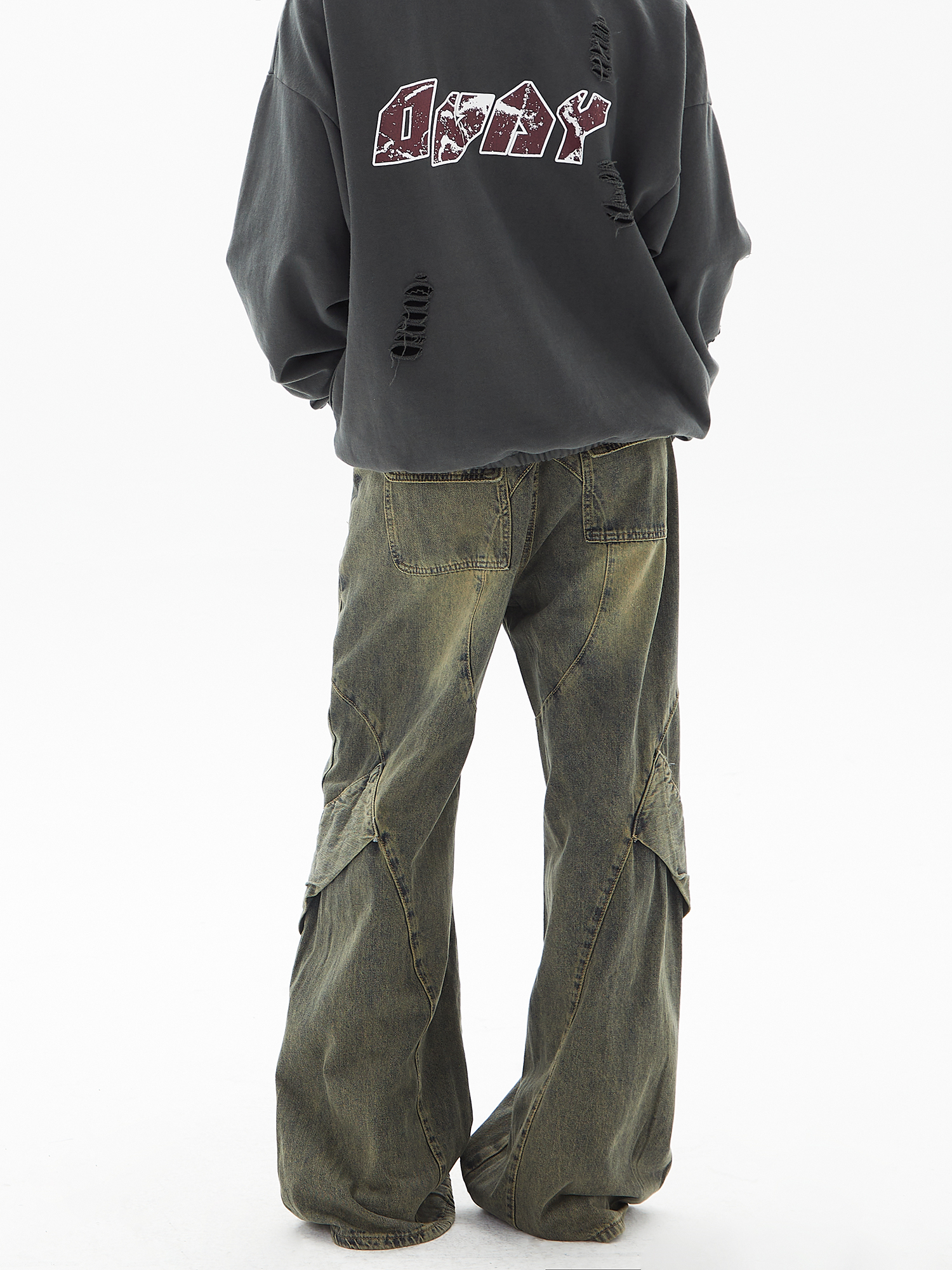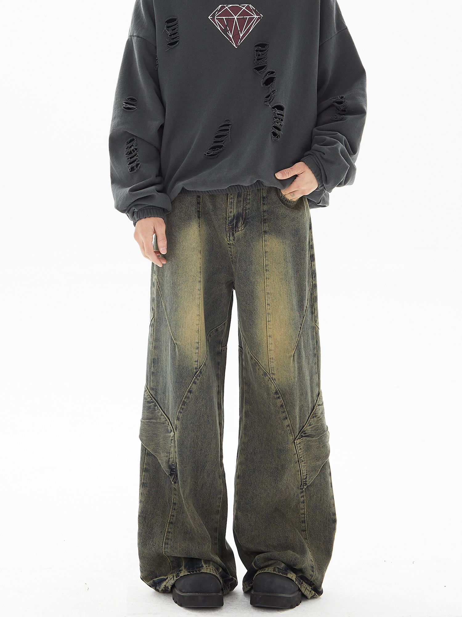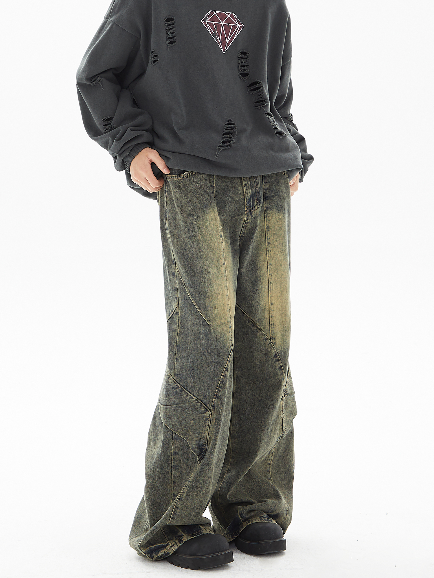 Patchwork Design Wide Leg Denim Jeans WN4238
