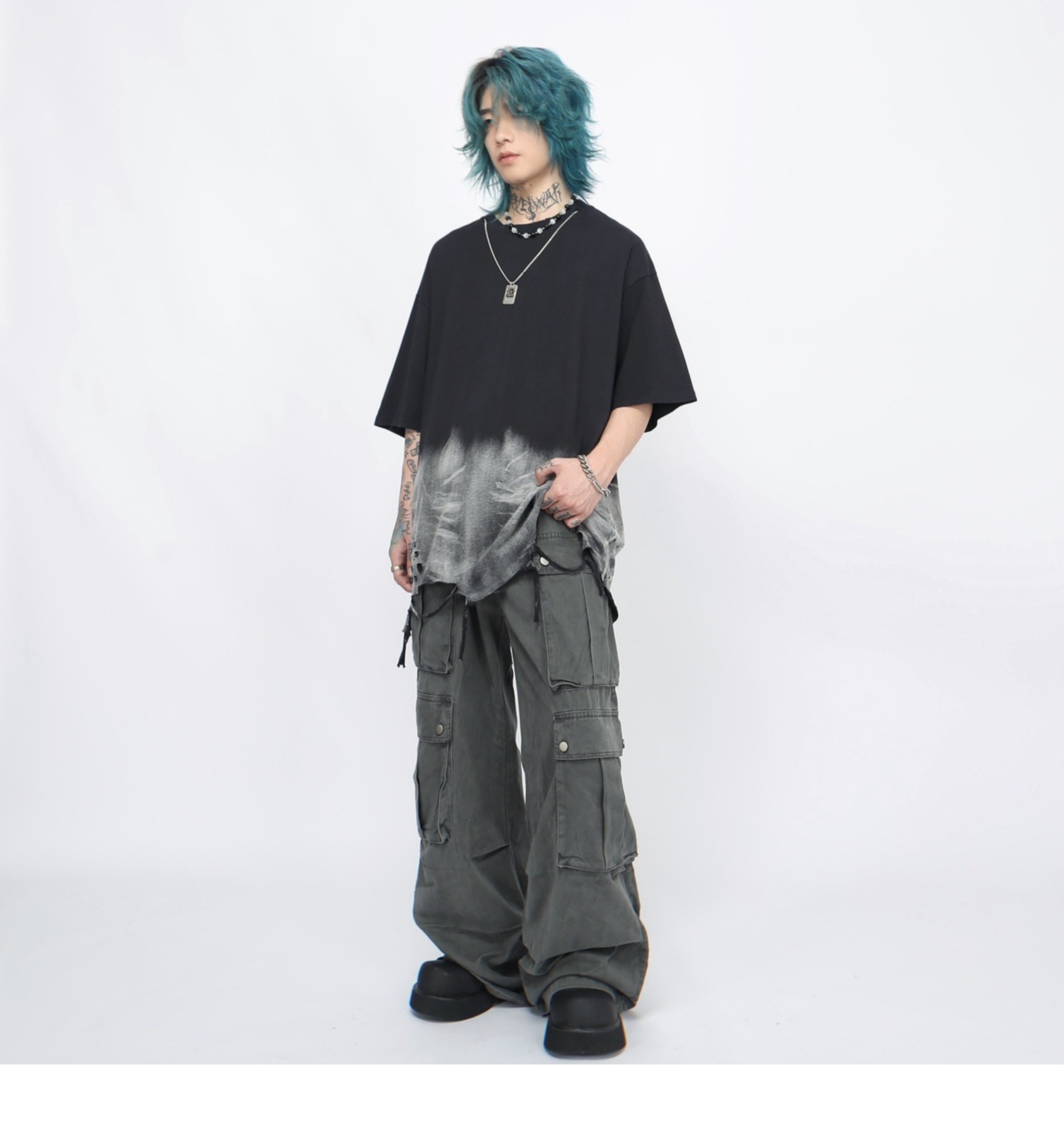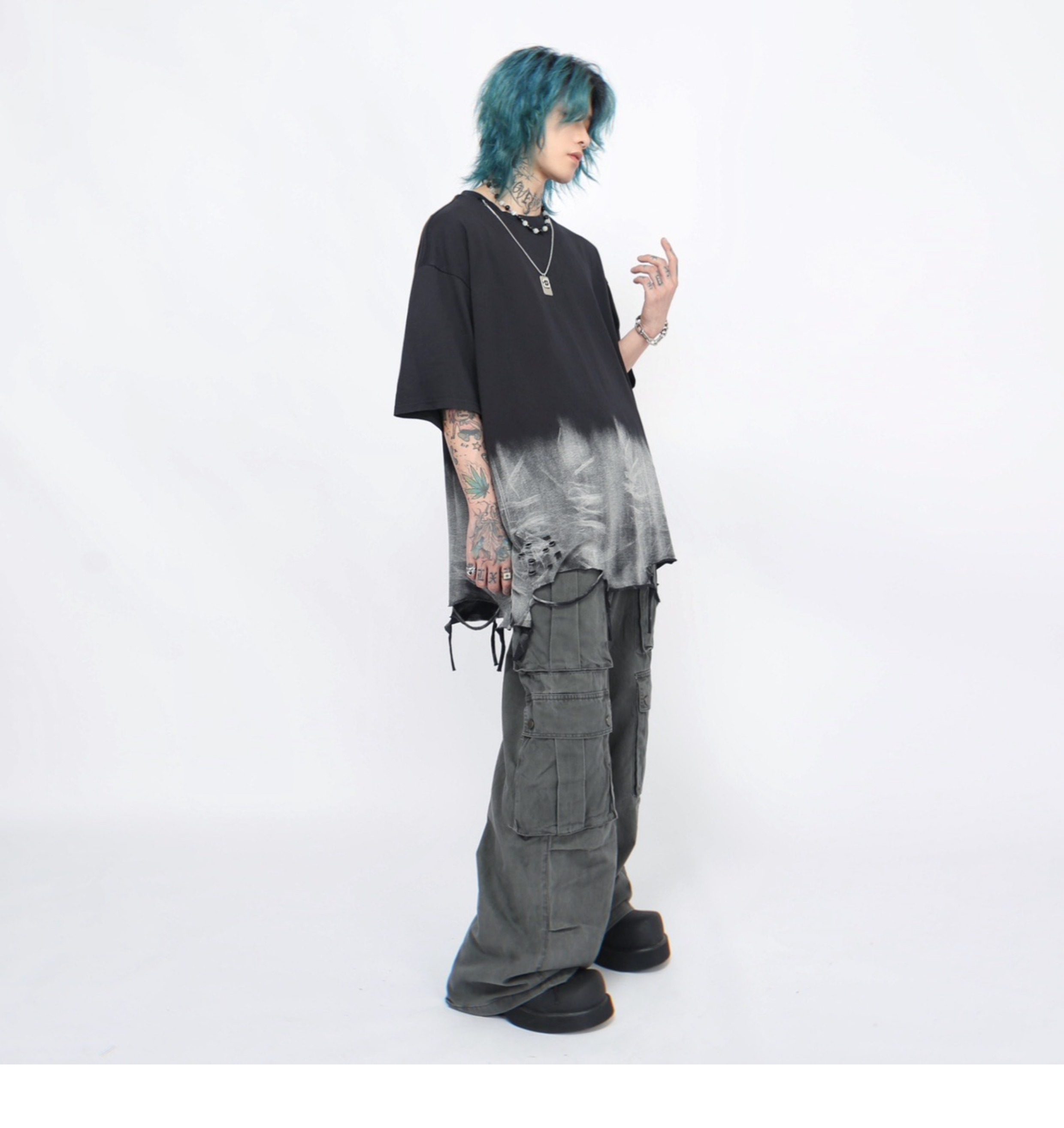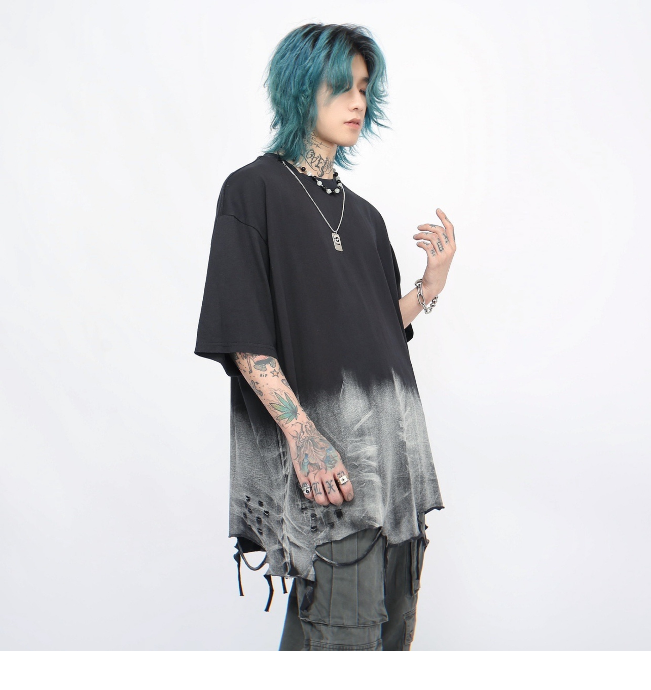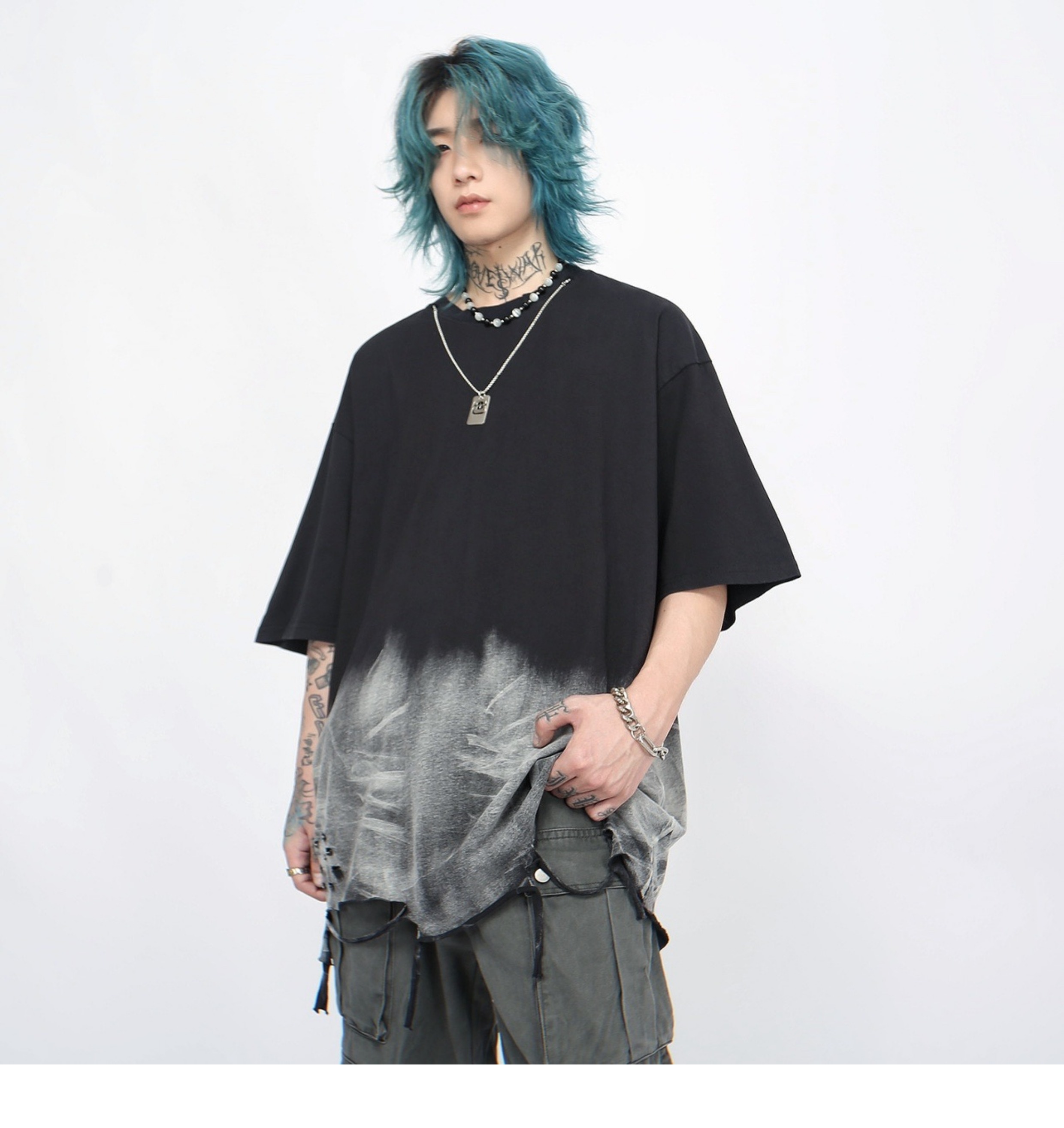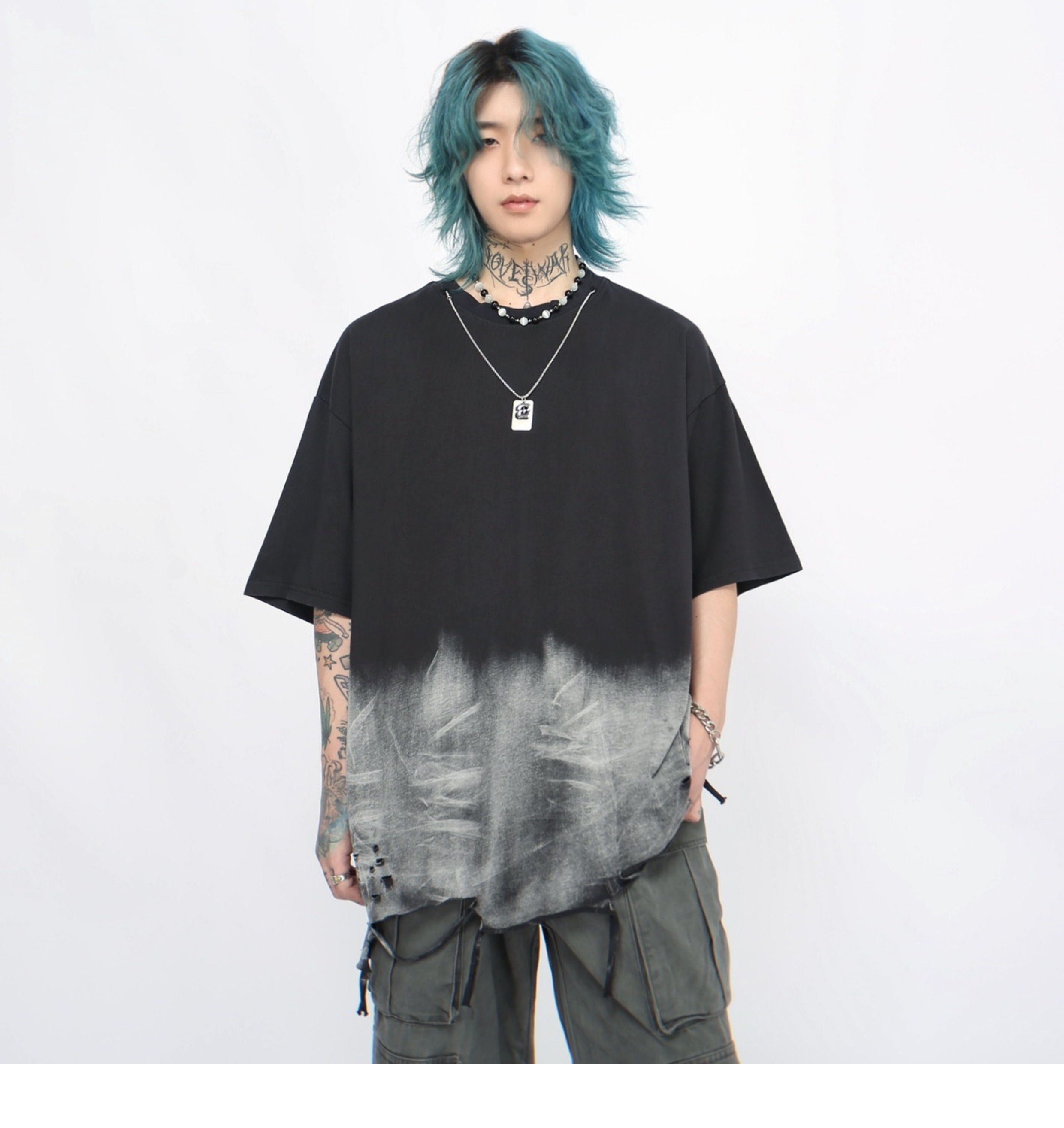 Washed Damage Oversize Short Sleeve T-Shirt WN5848