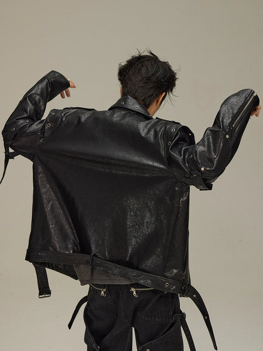 Asymmetrical Deconstructed Collar Design Short PU Leather Jacket WN9428