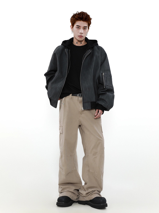 Sporty Short Shoulder Pads Hooded Jacket & Wide-leg Cargo Pants Setup WN4005
