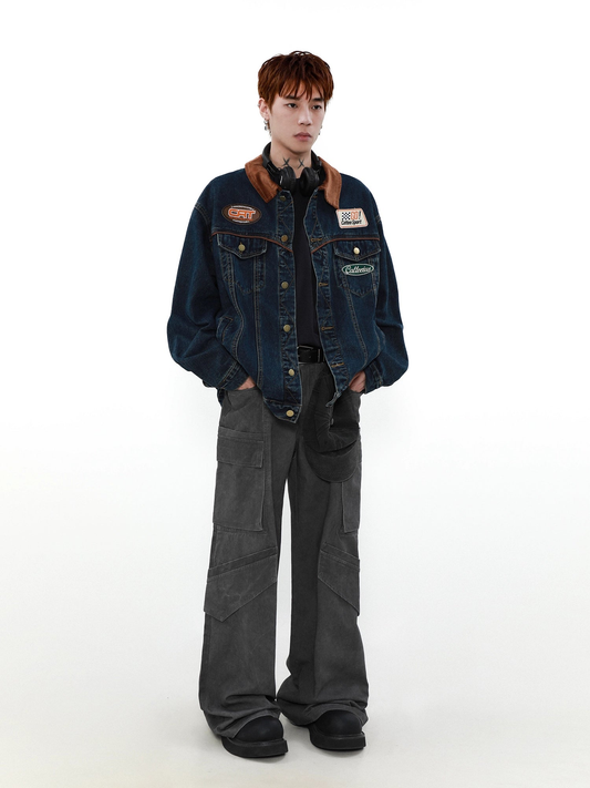 Shoulder-pad Denim Jacket & Wide-leg Denim Jeans Setup WN3742