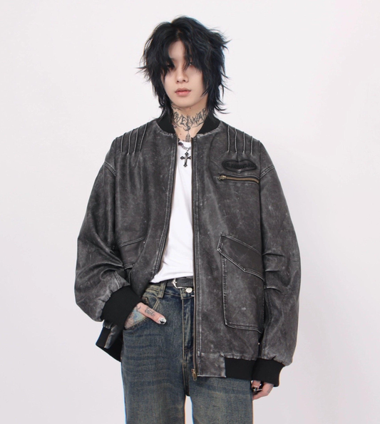 Oversize Shoulder-pads PU Leather Jacket WN2019