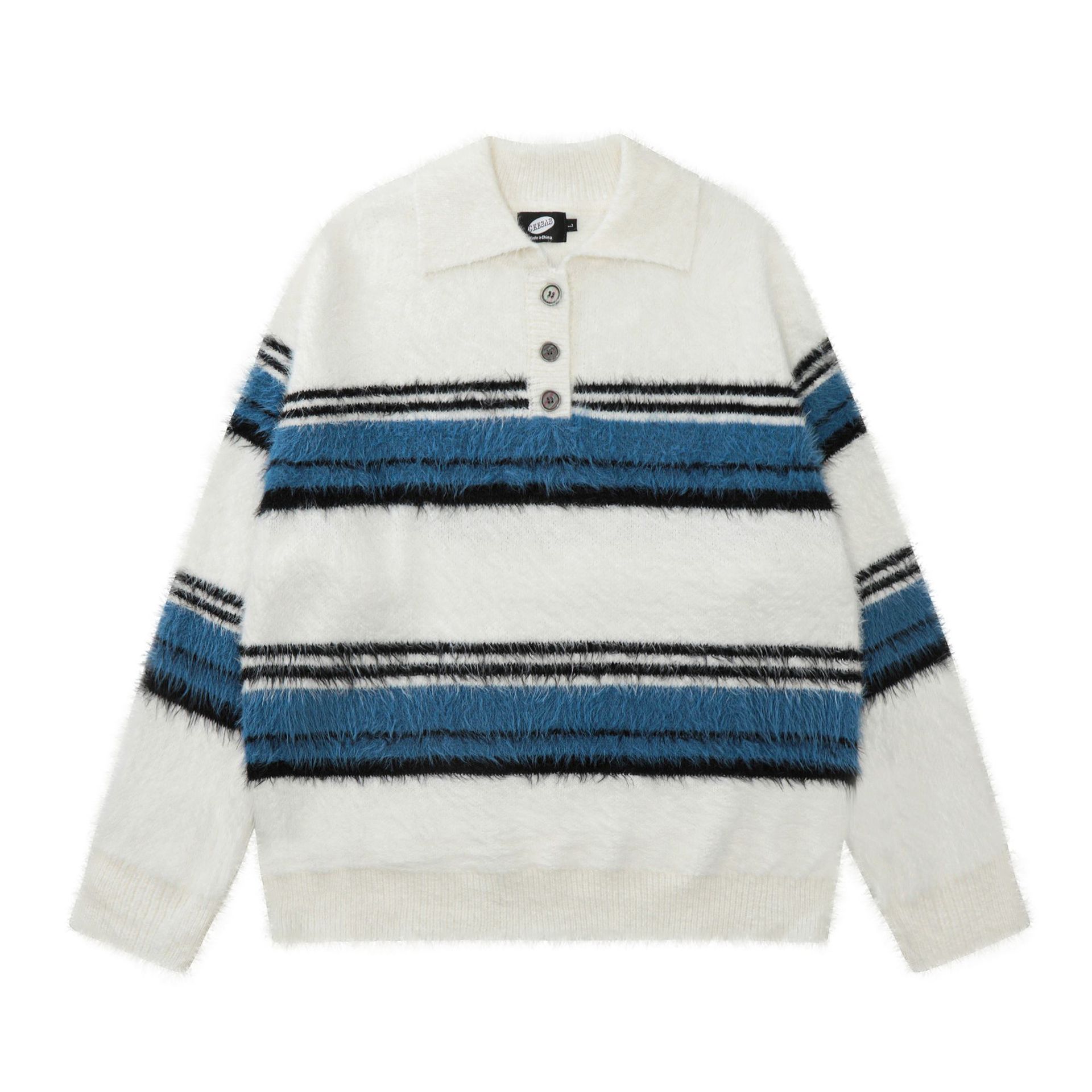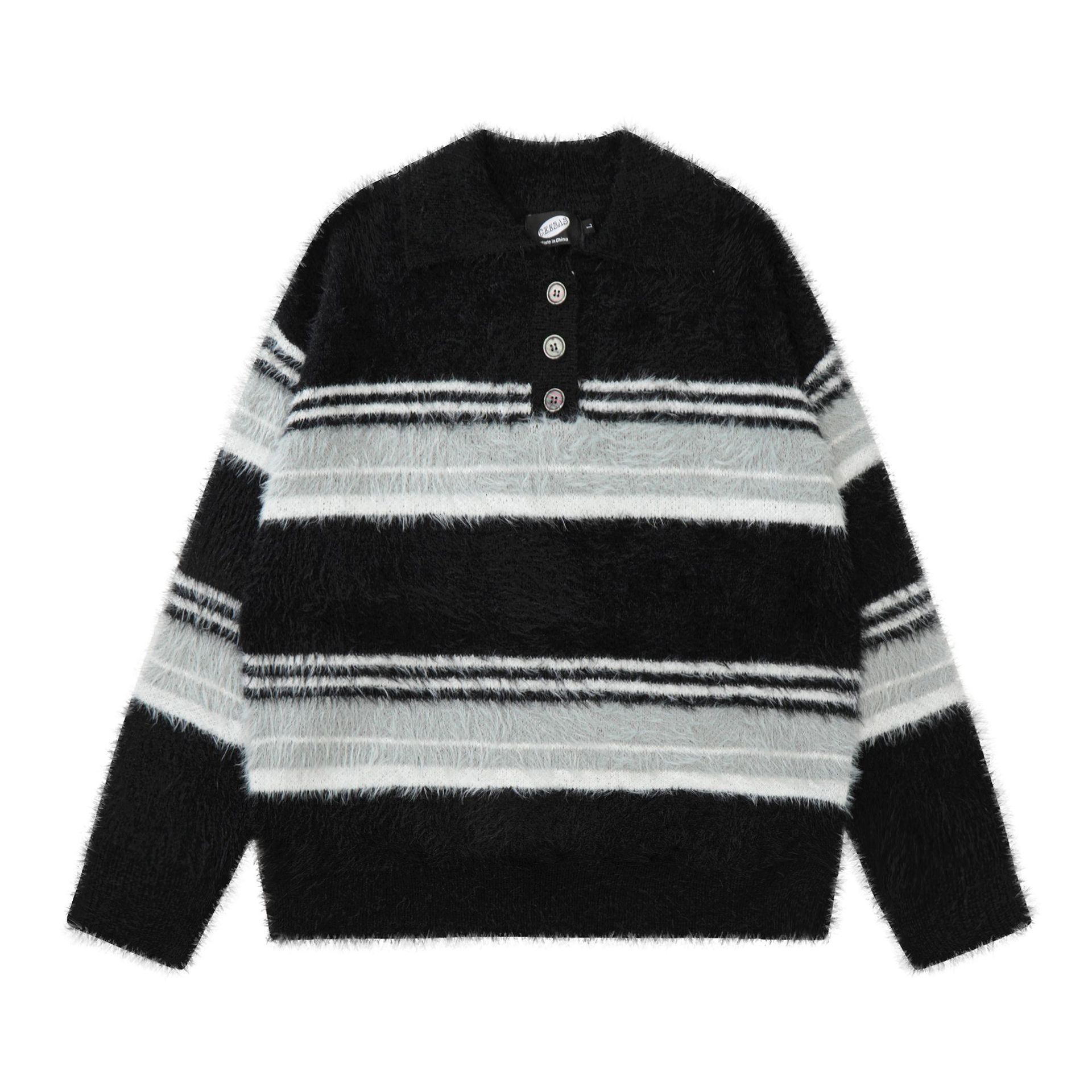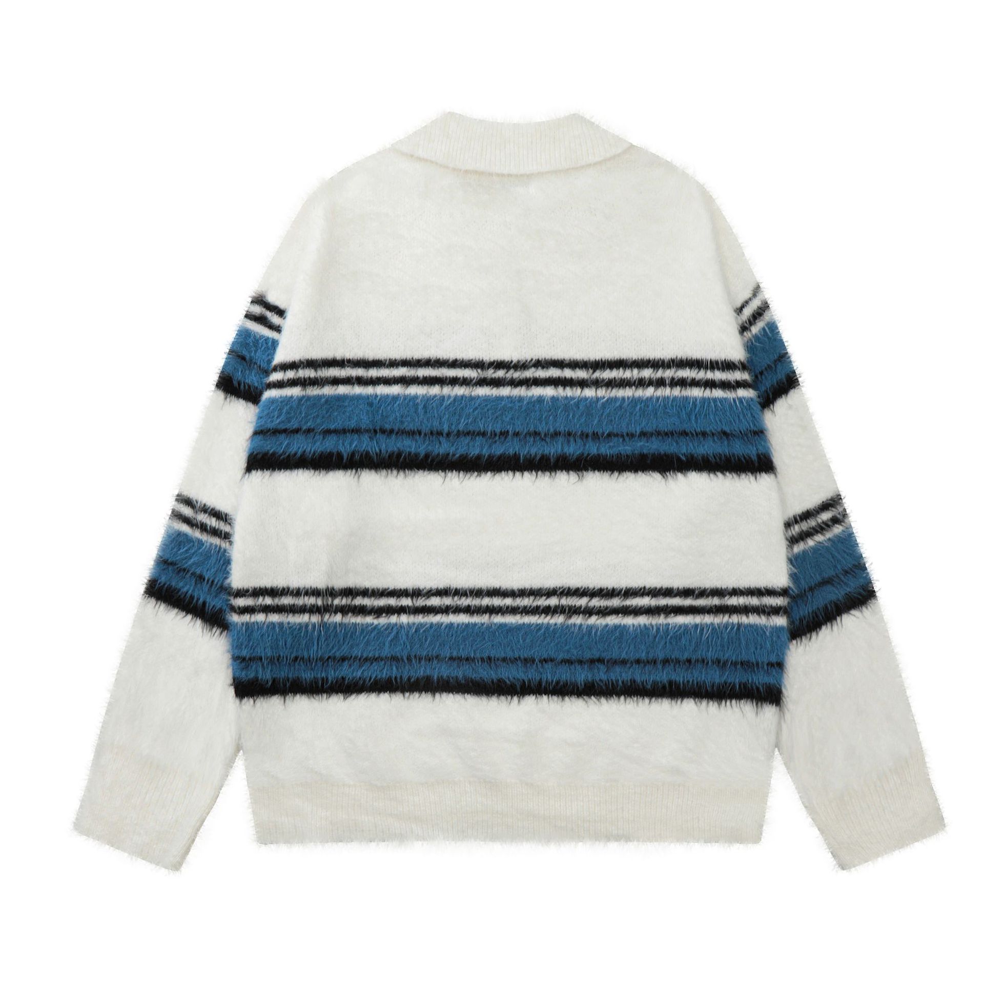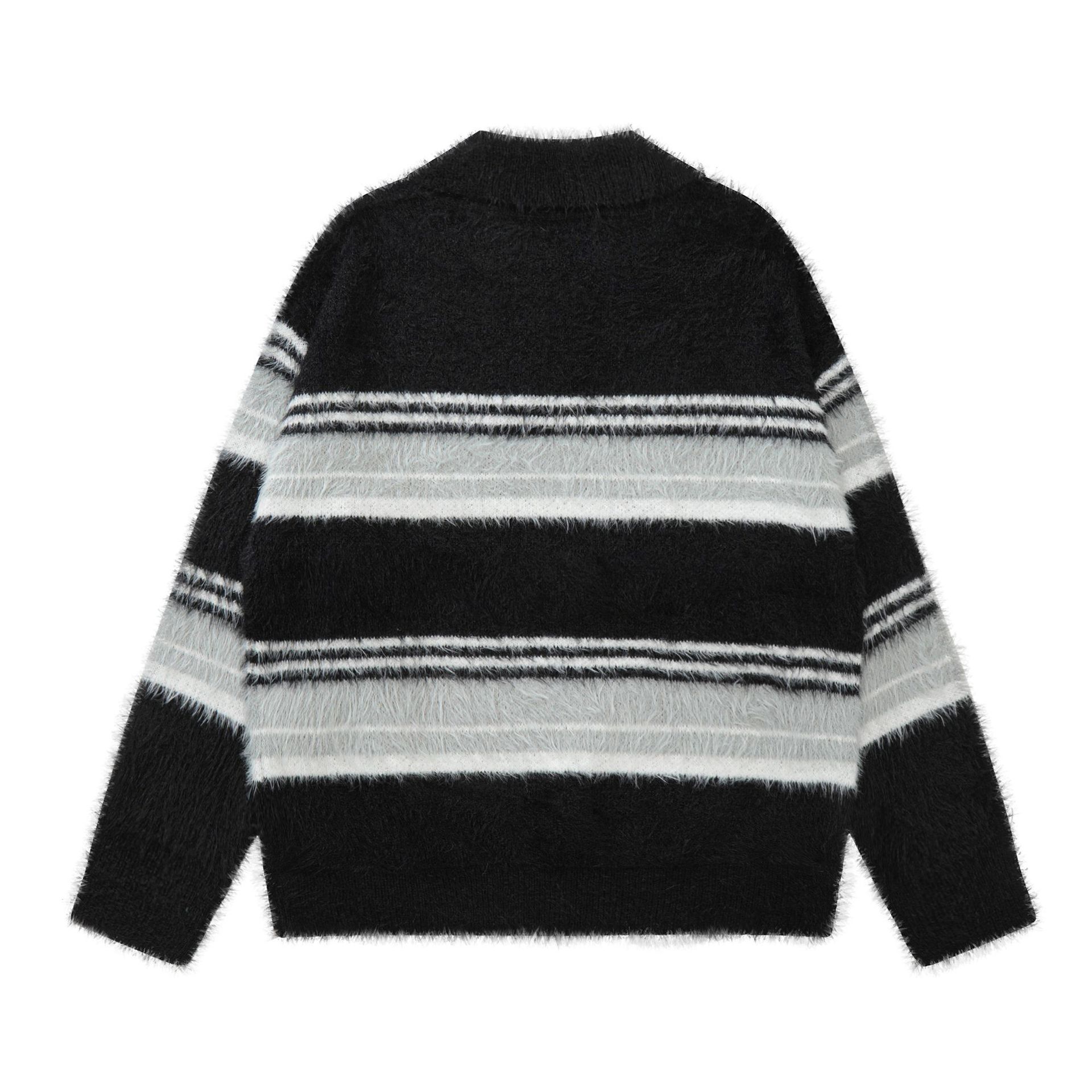 Stripe Polo Collar Mohair Knit Sweater WN11181