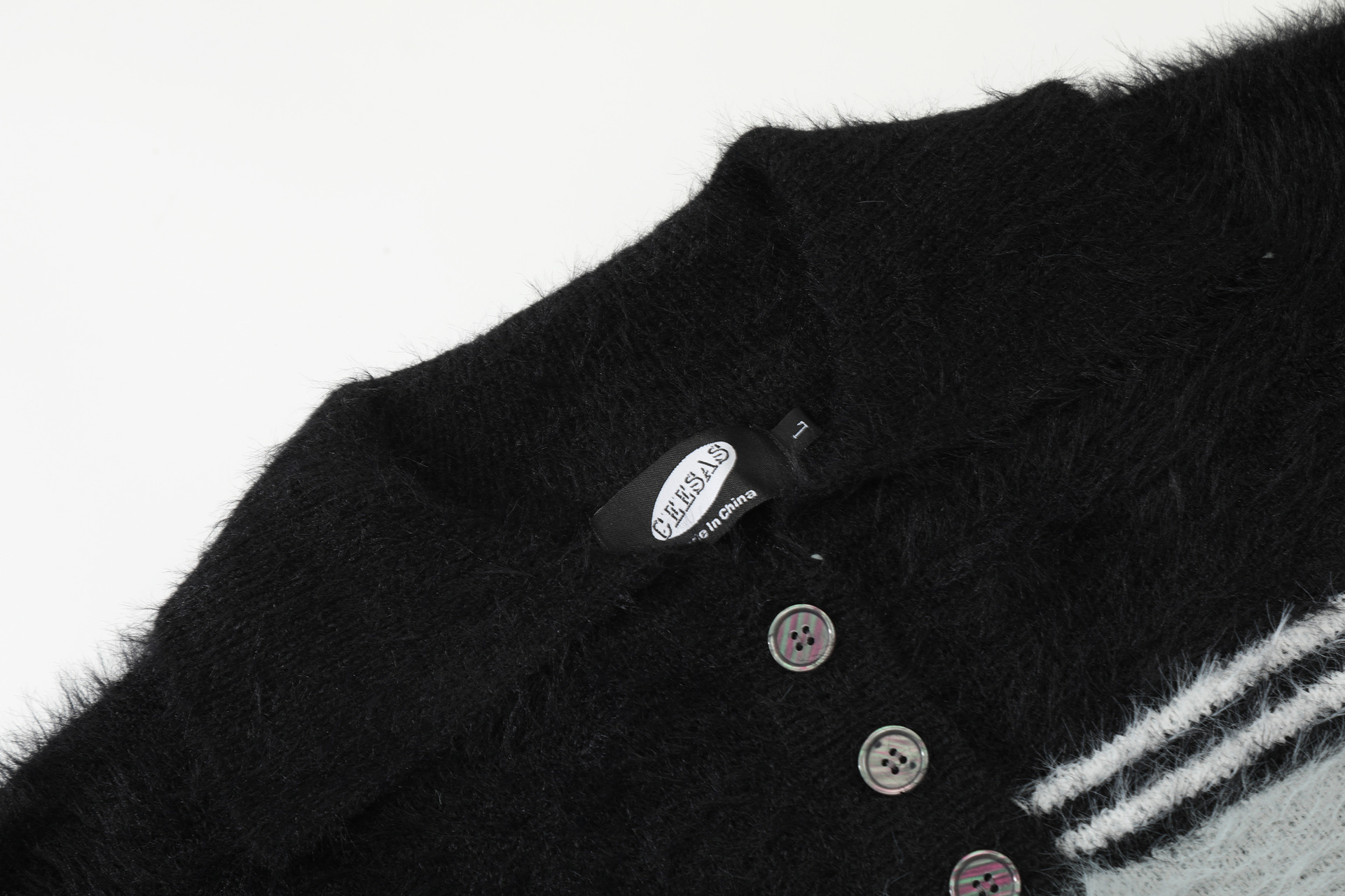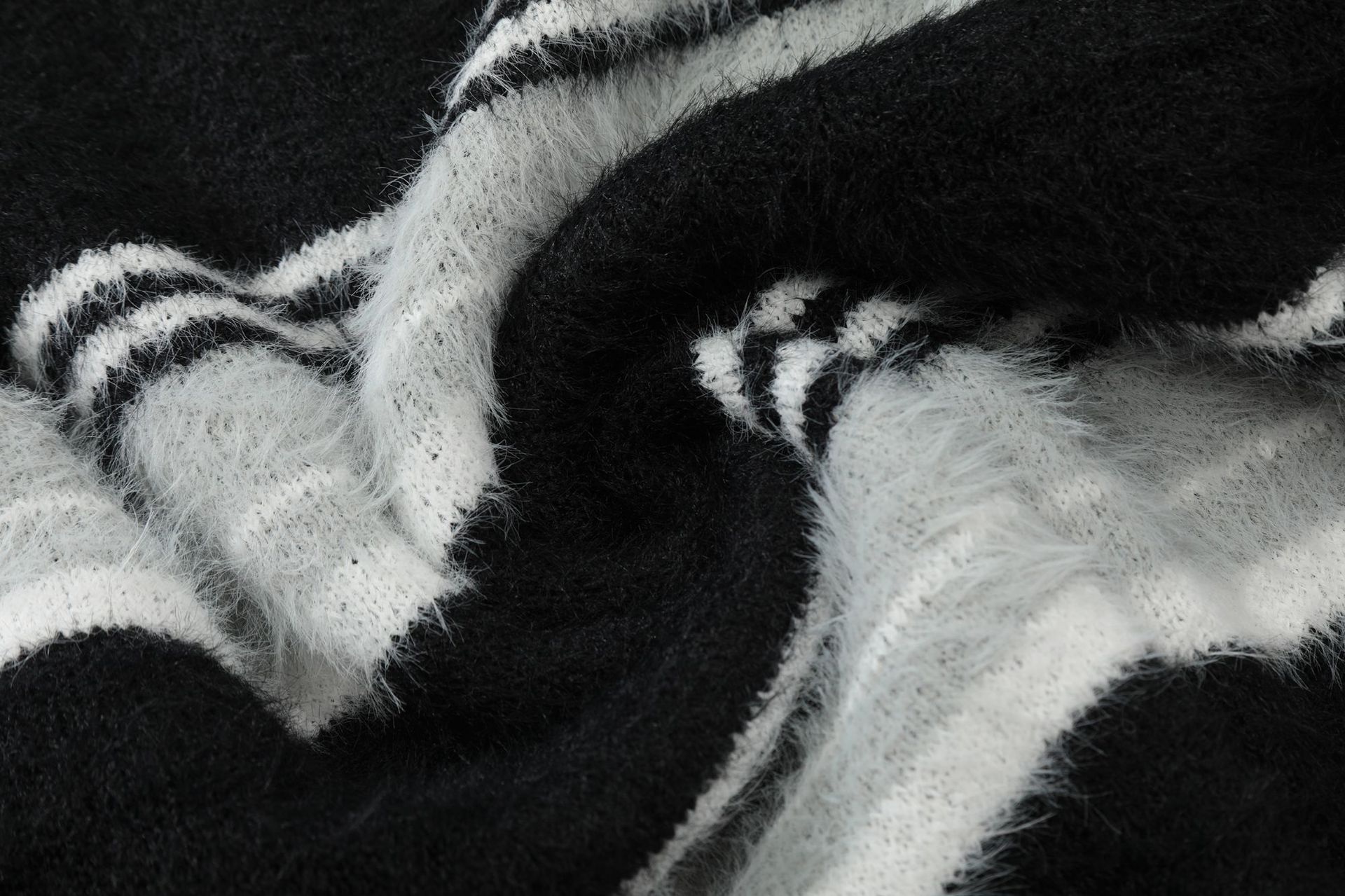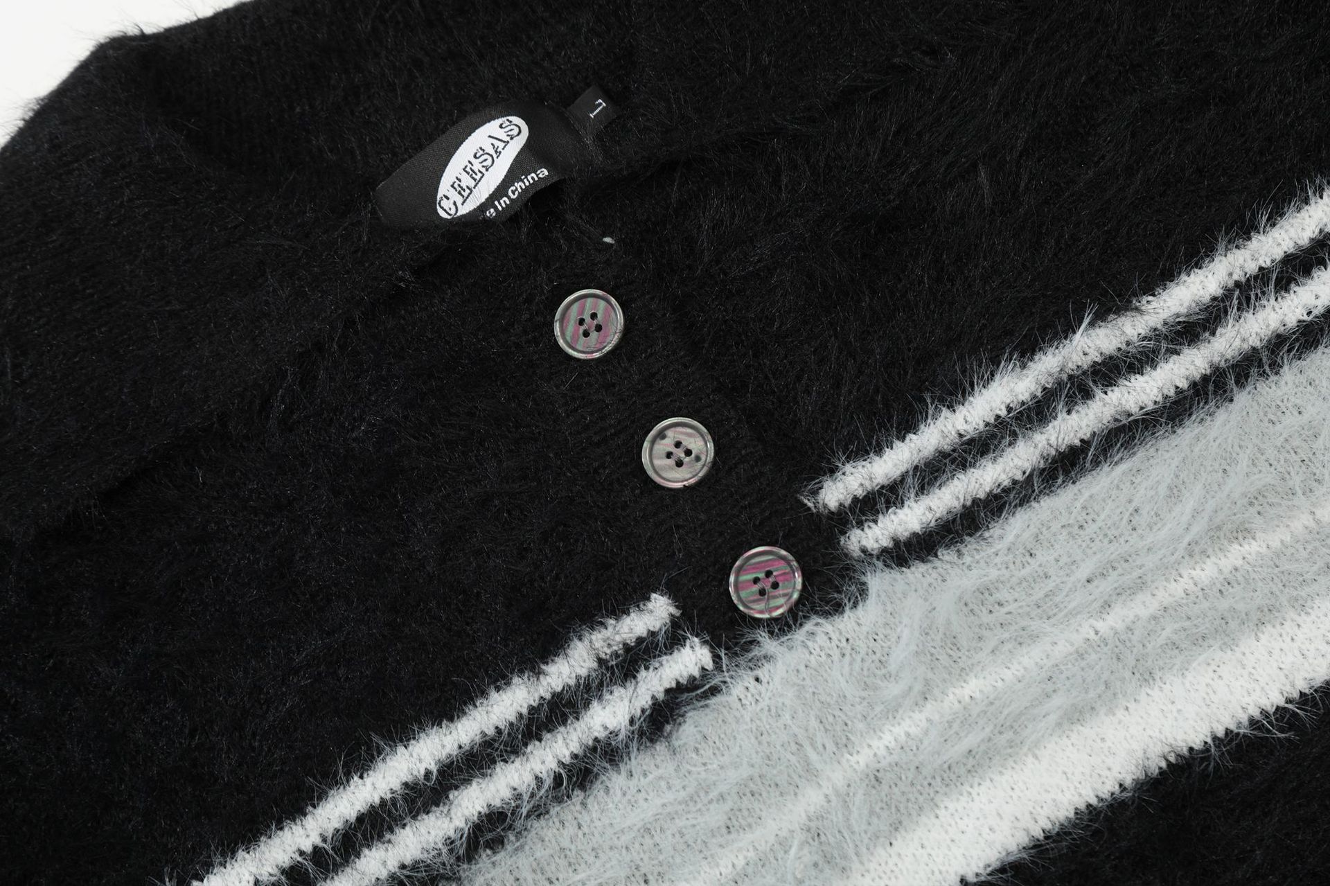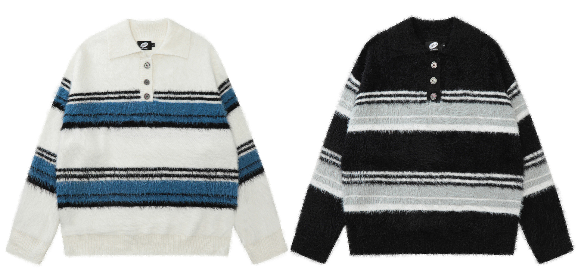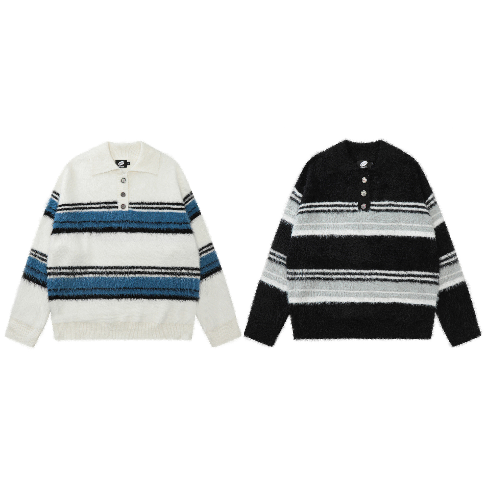 Stripe Polo Collar Mohair Knit Sweater WN11181