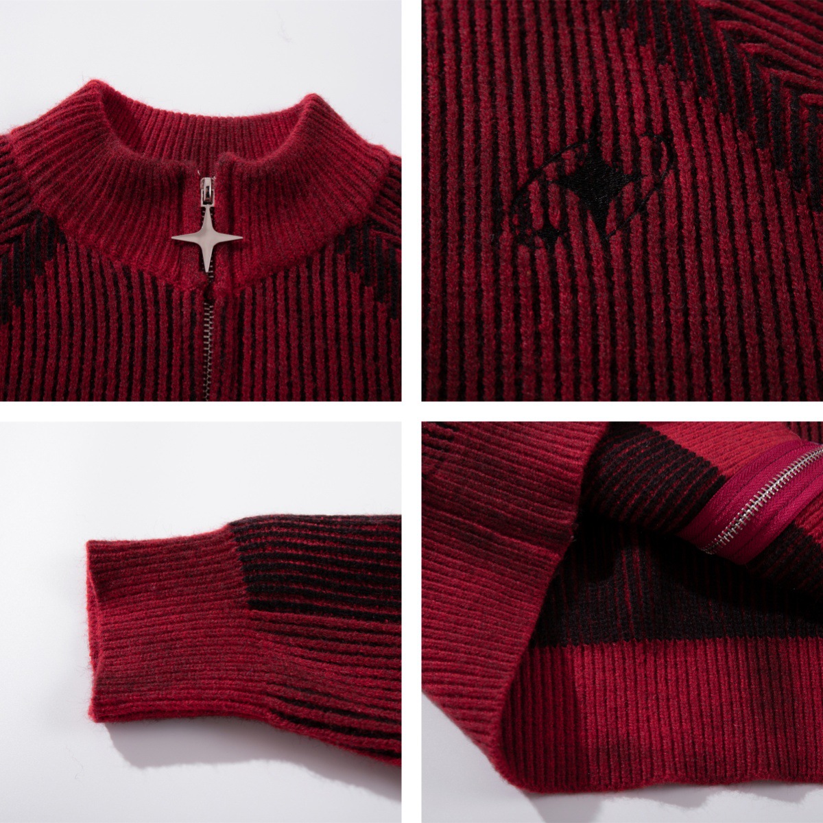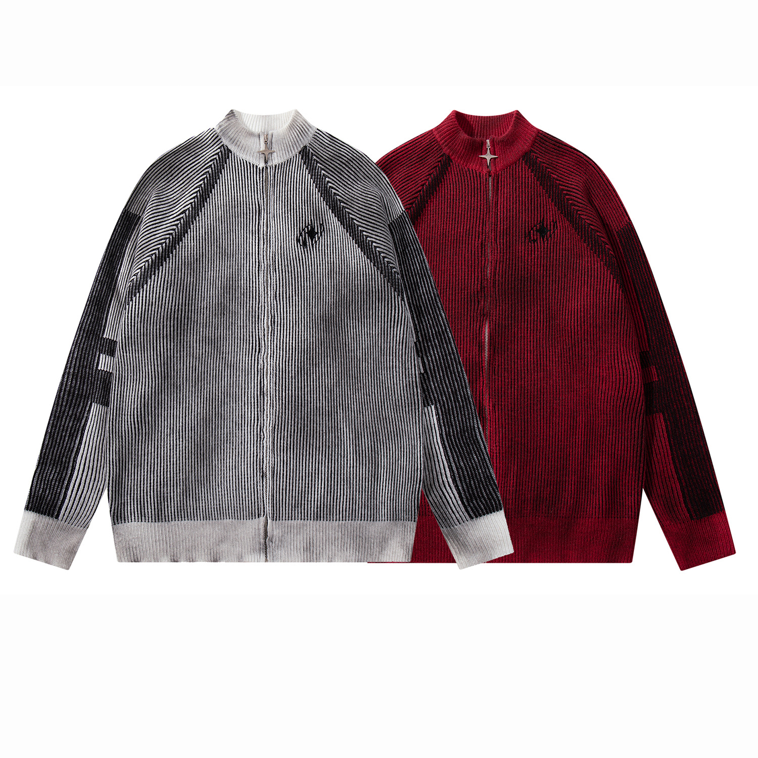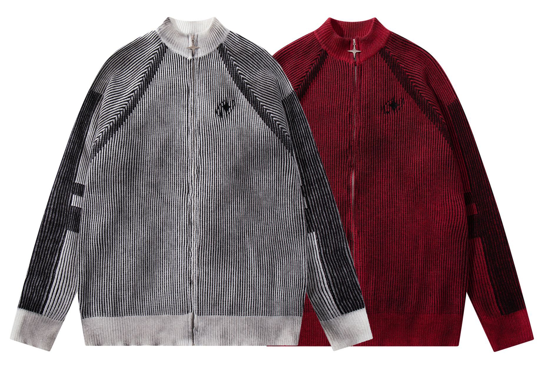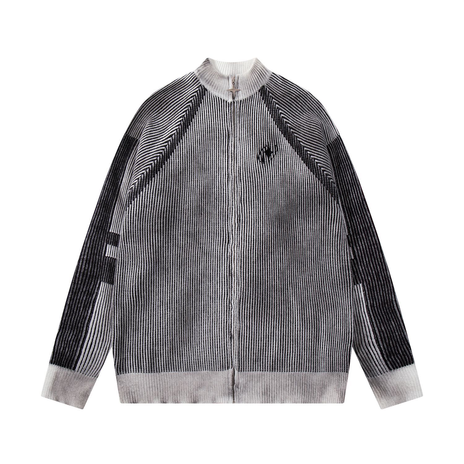 Colorblock Stripe Zipper Knit Cardigan WN11183