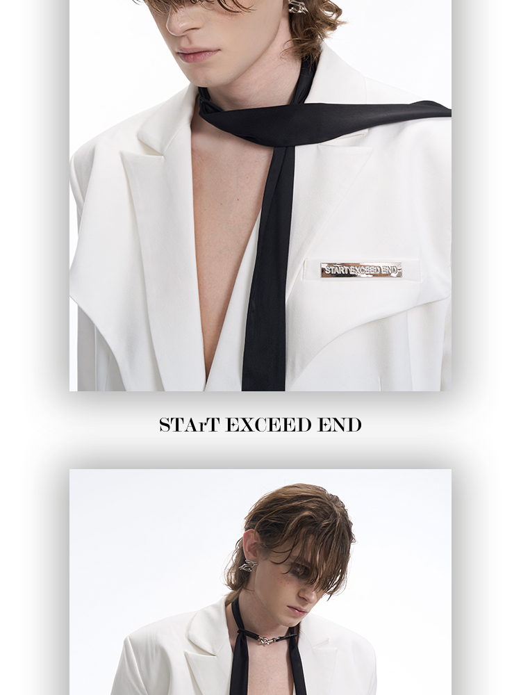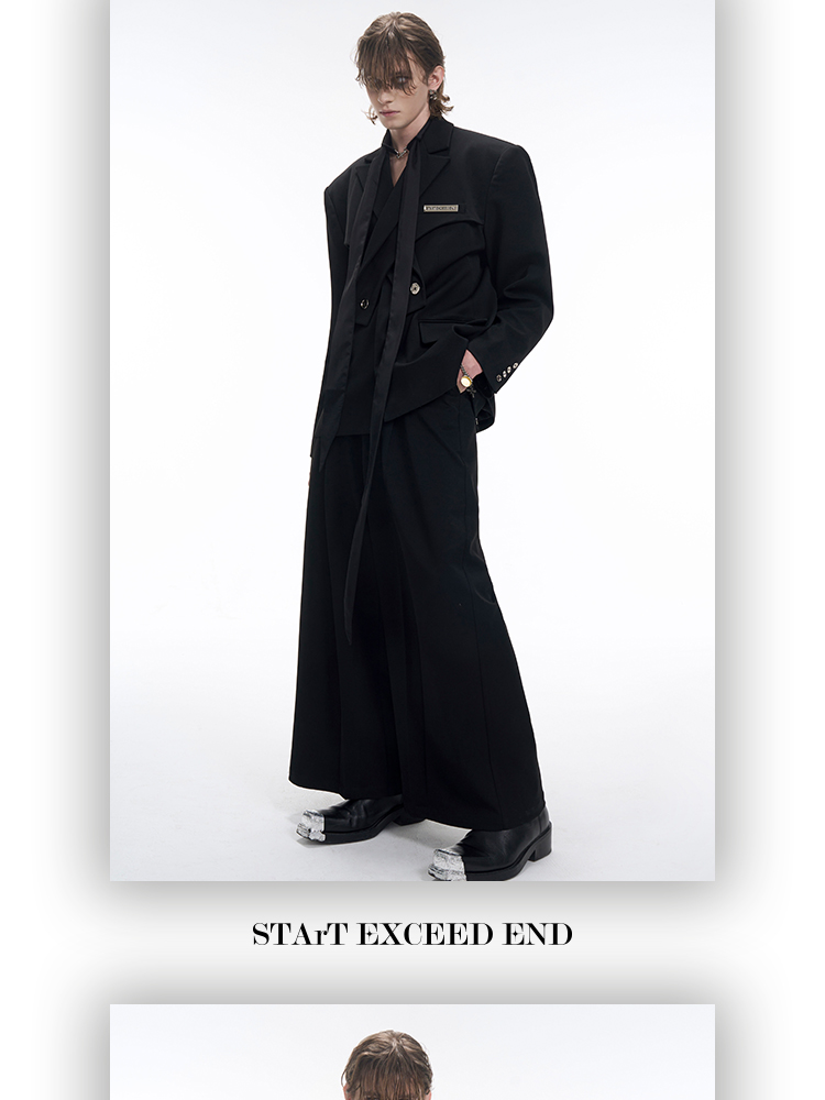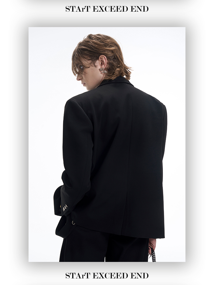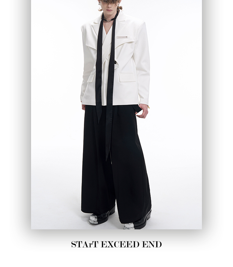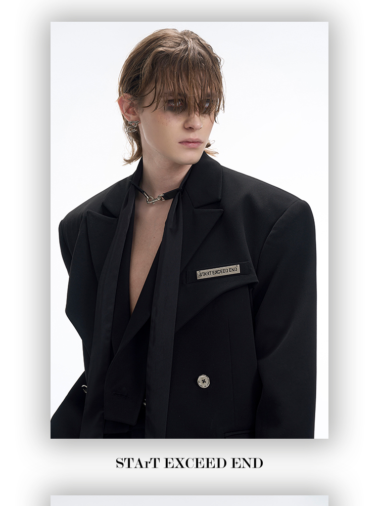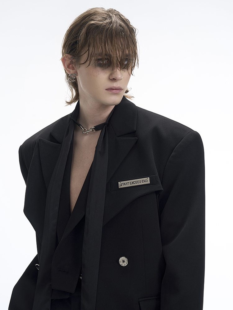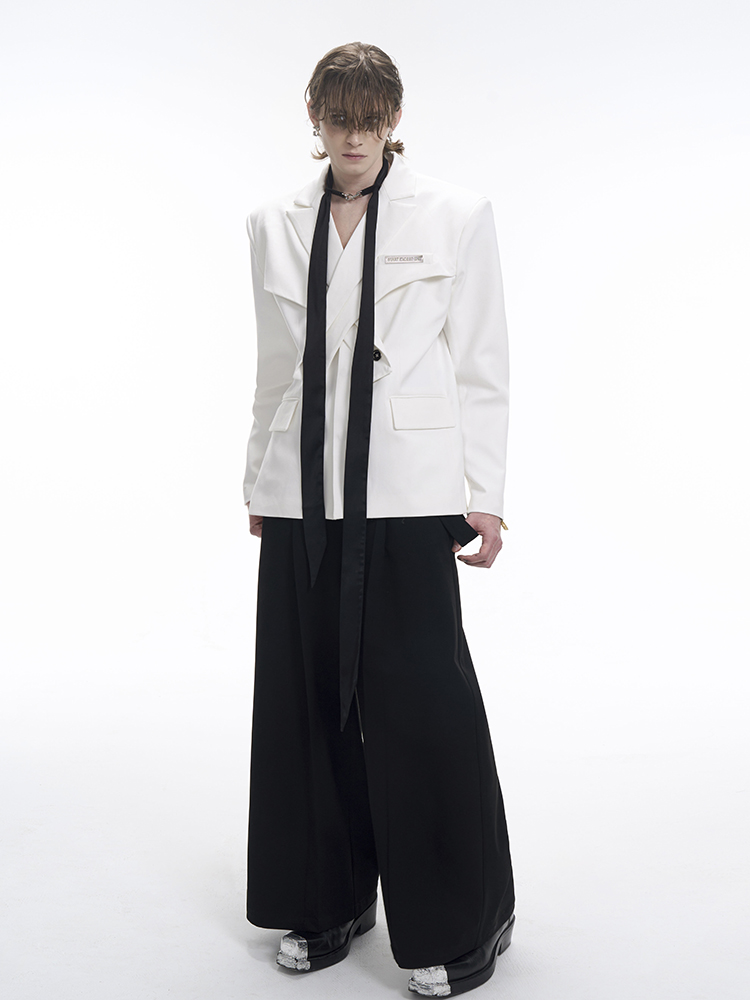 Shoulder Metal Logo Tailored Jacket & Wide Leg Trousers Setup WN13241