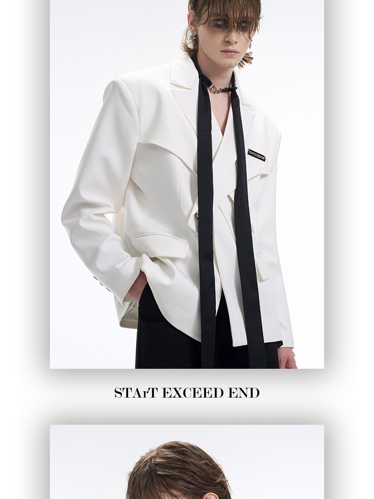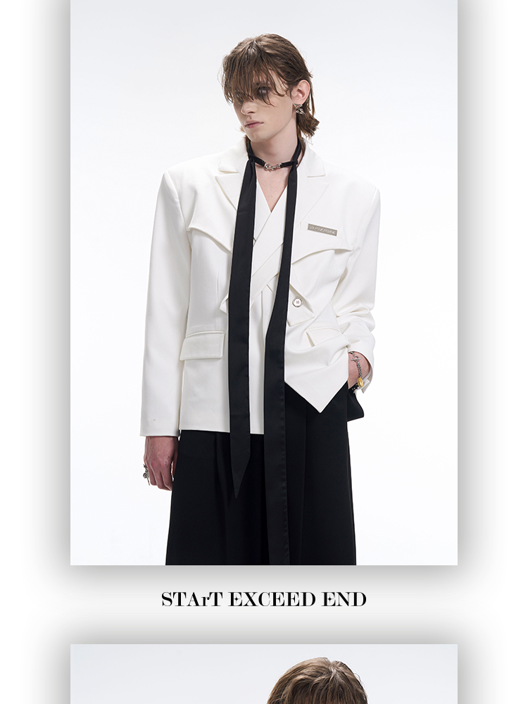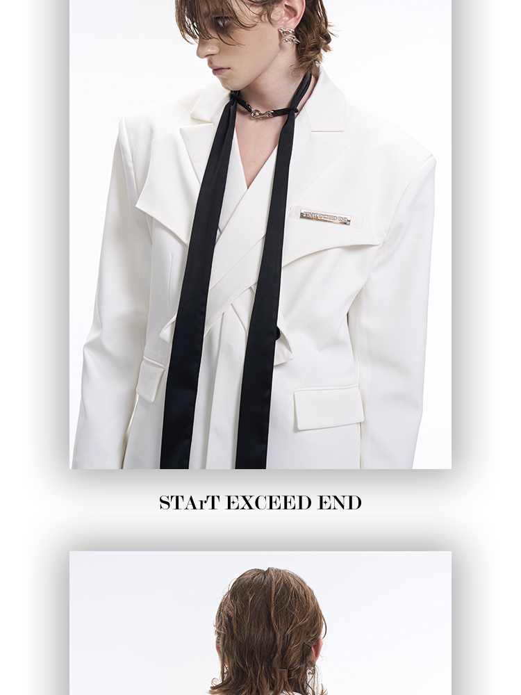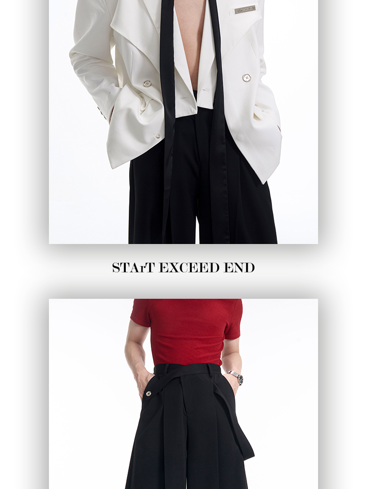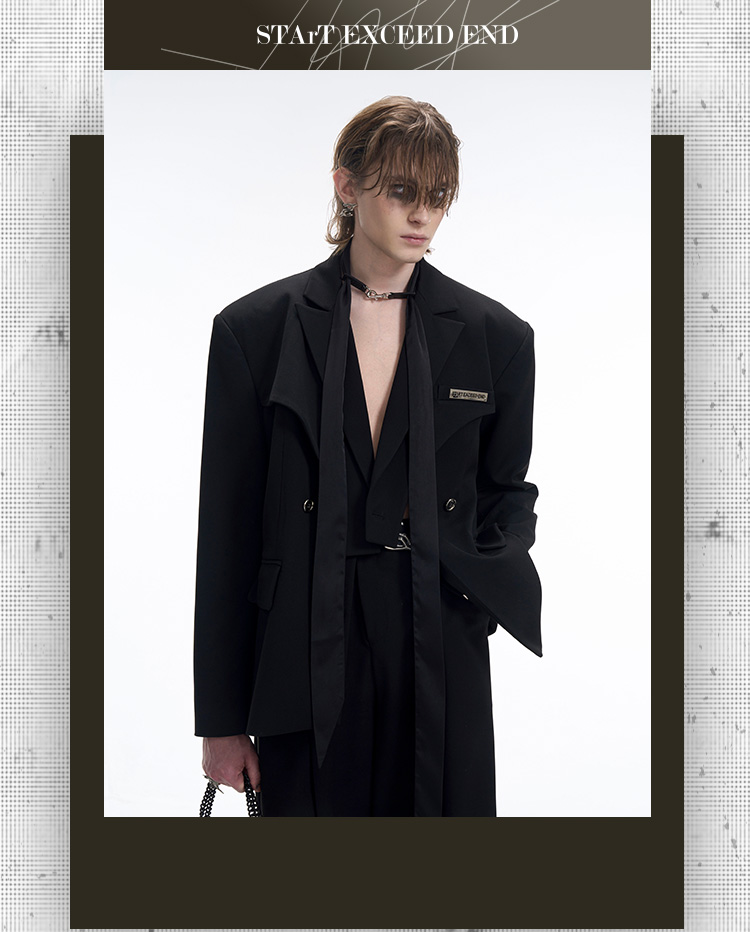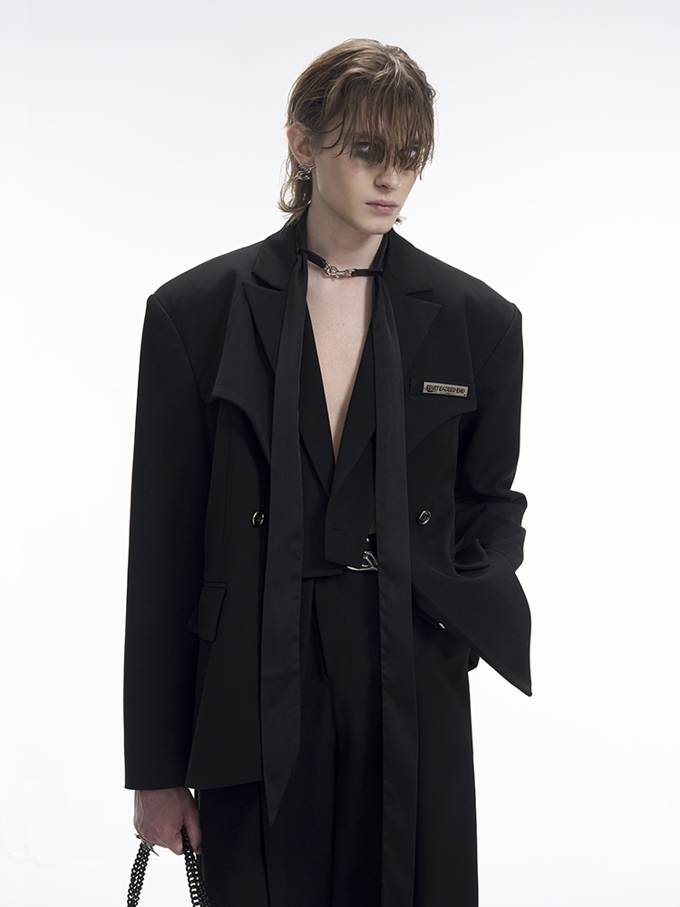 Shoulder Metal Logo Tailored Jacket & Wide Leg Trousers Setup WN13241