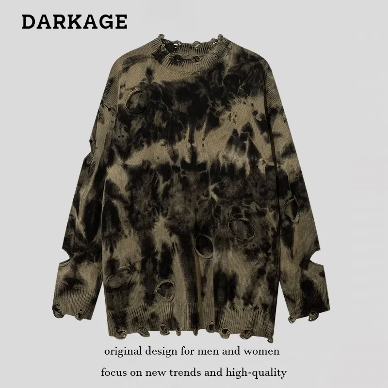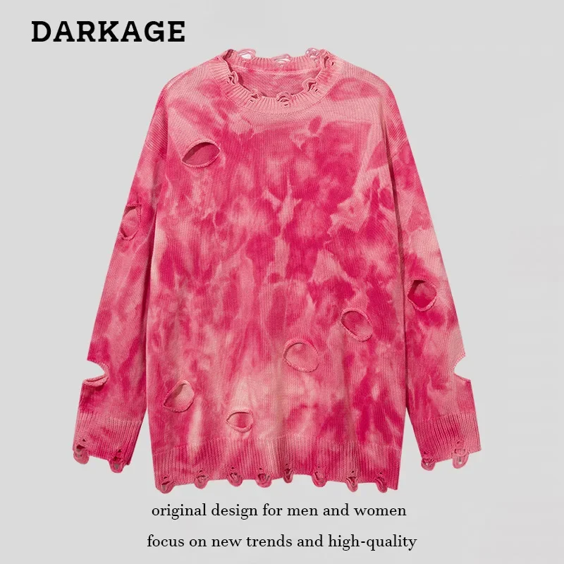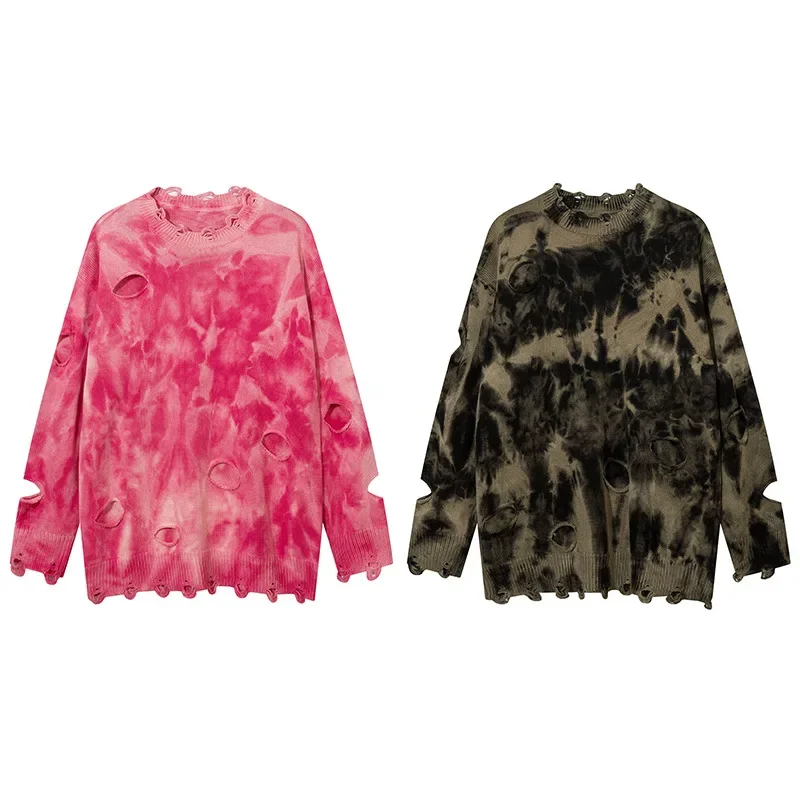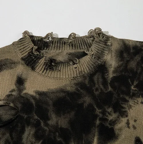 Tie-dye Damage Crochet Knit Sweater WN15019