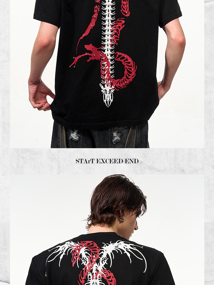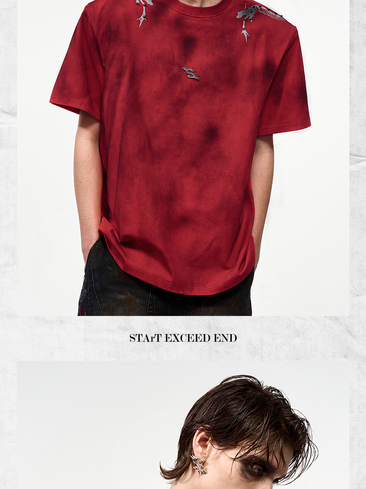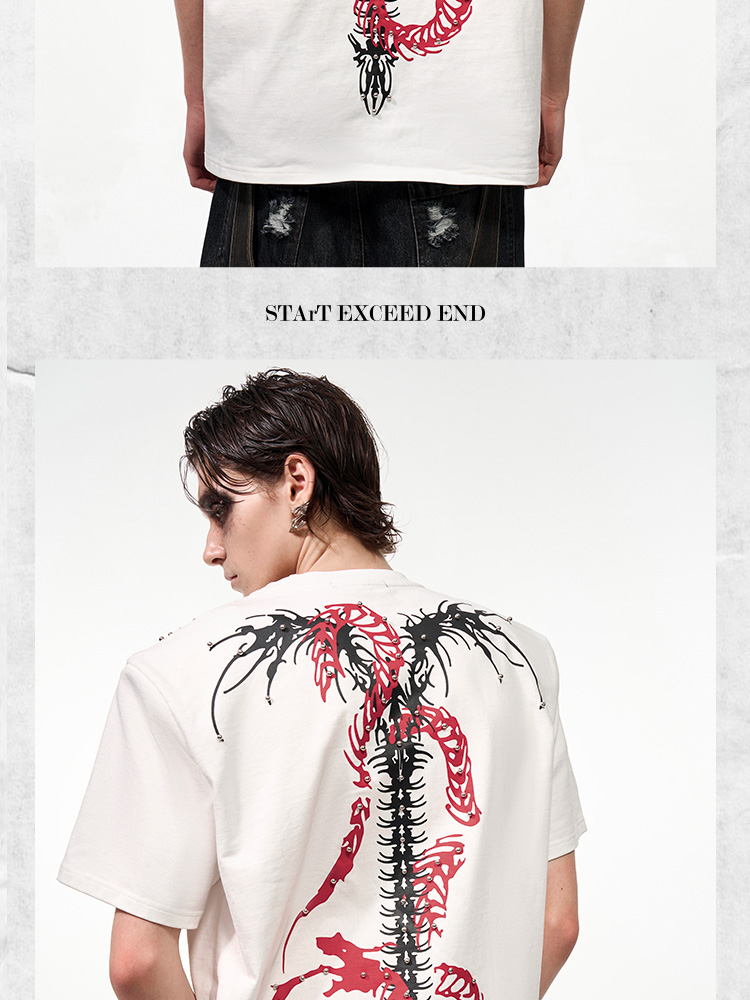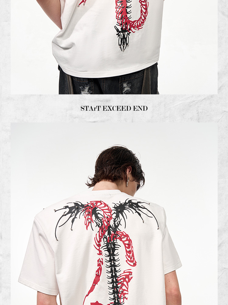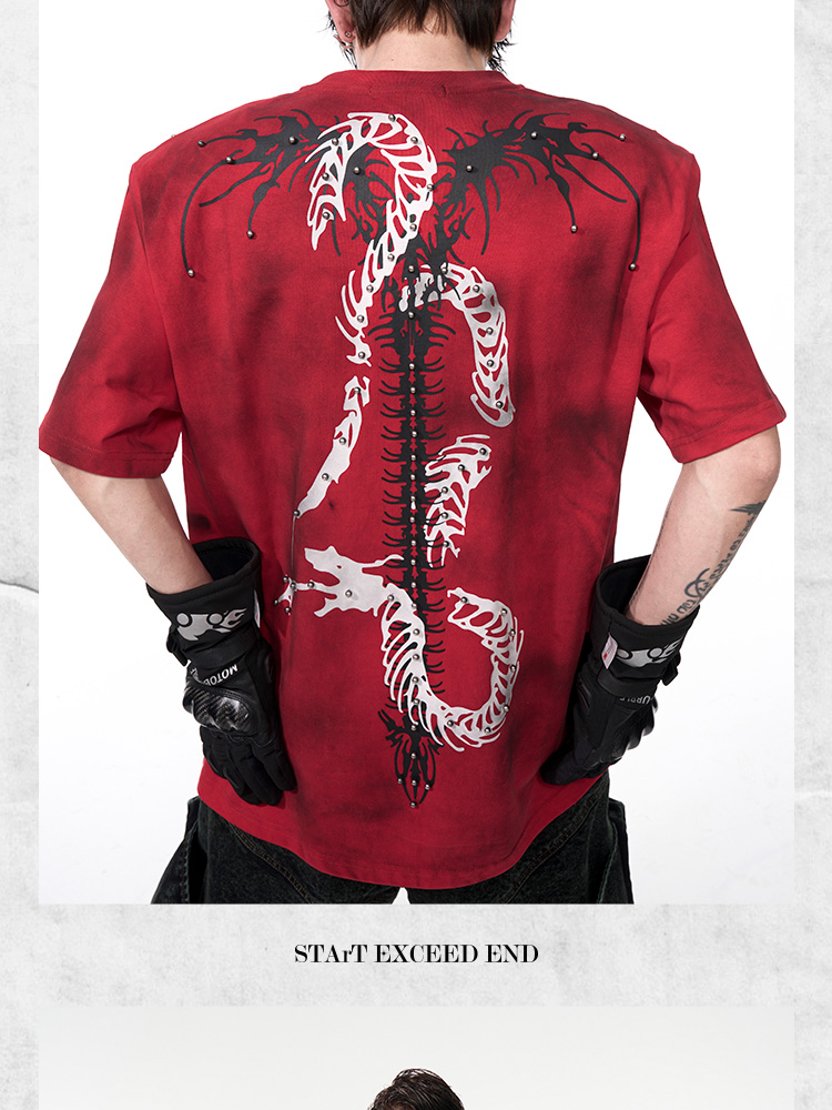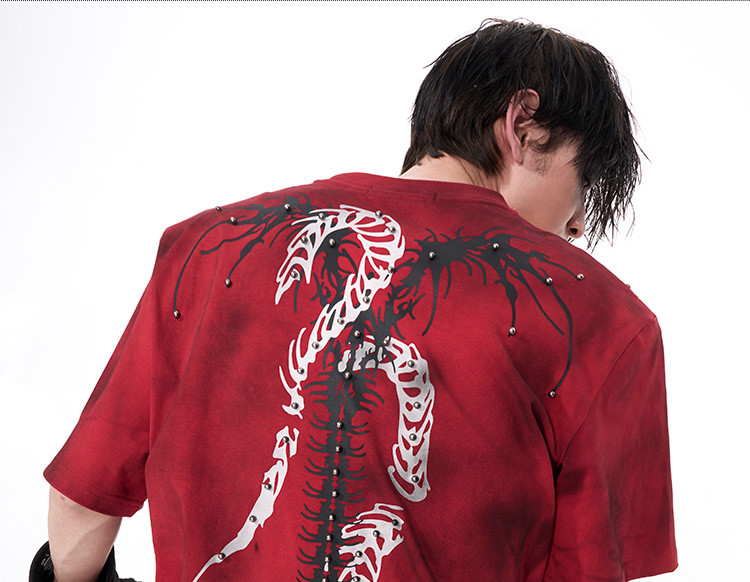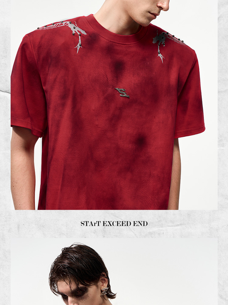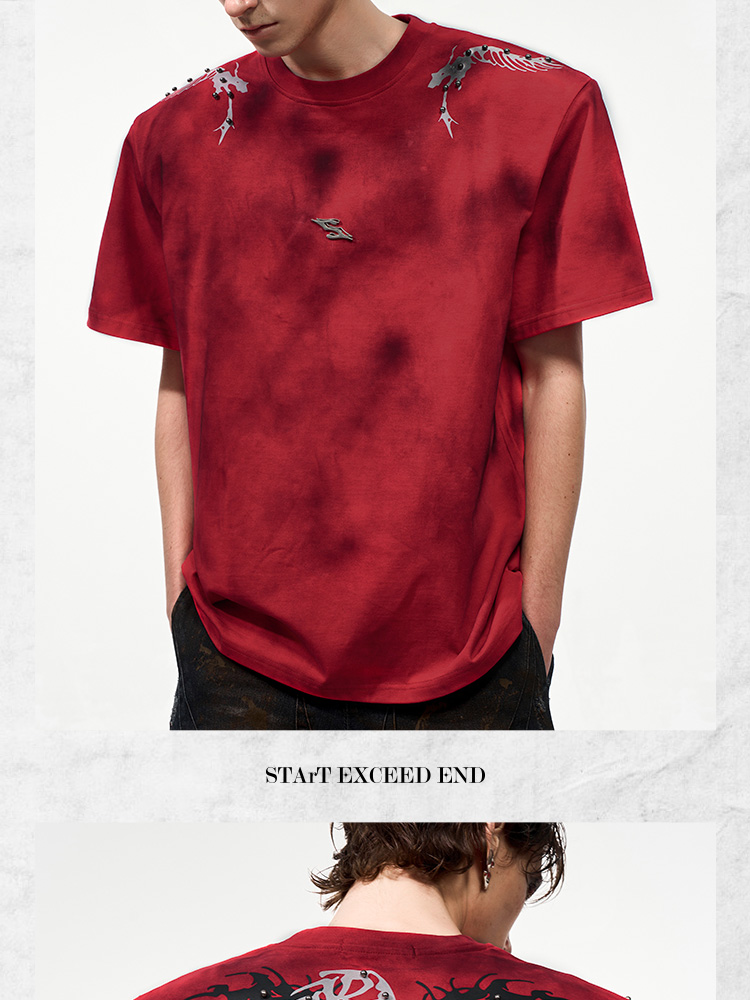 Studs Spine Snake Tie-Dye Shoulder-pad Short Sleeve T-Shirt WN16589