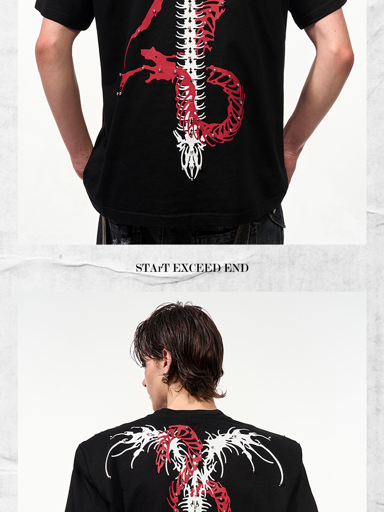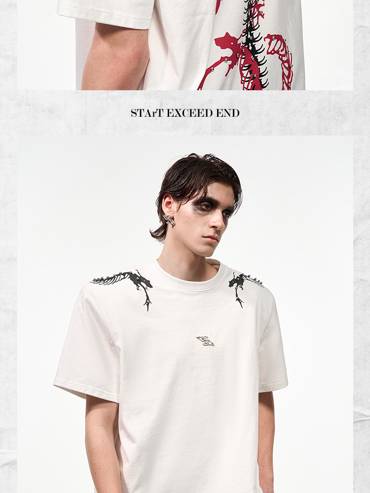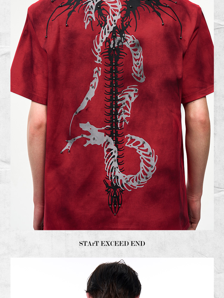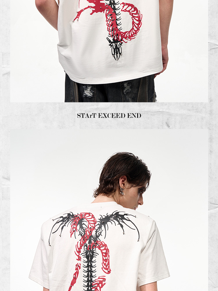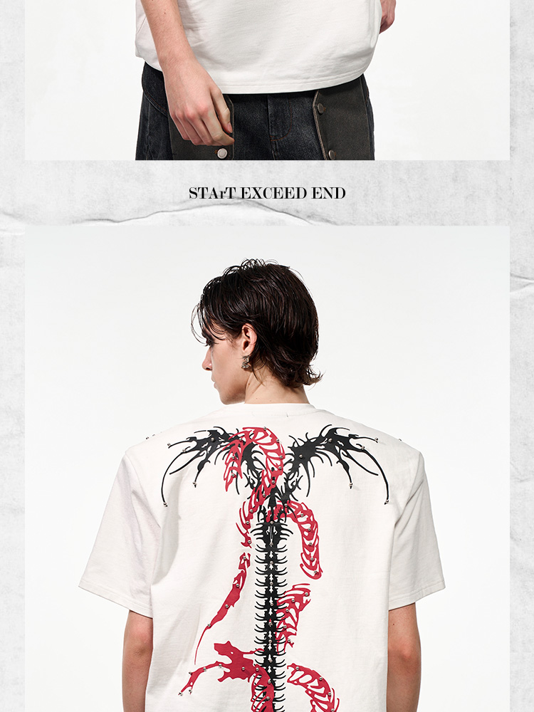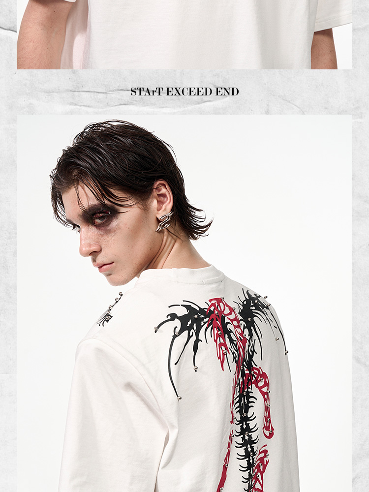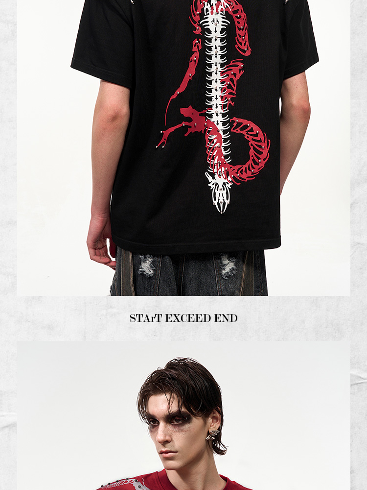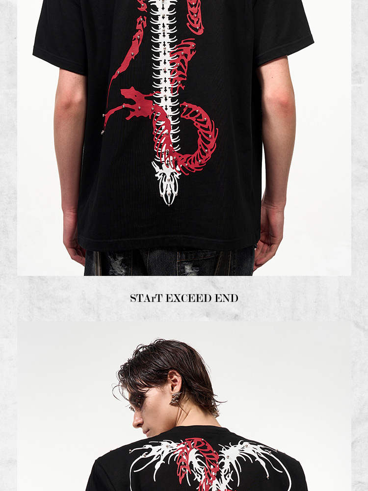 Studs Spine Snake Tie-Dye Shoulder-pad Short Sleeve T-Shirt WN16589