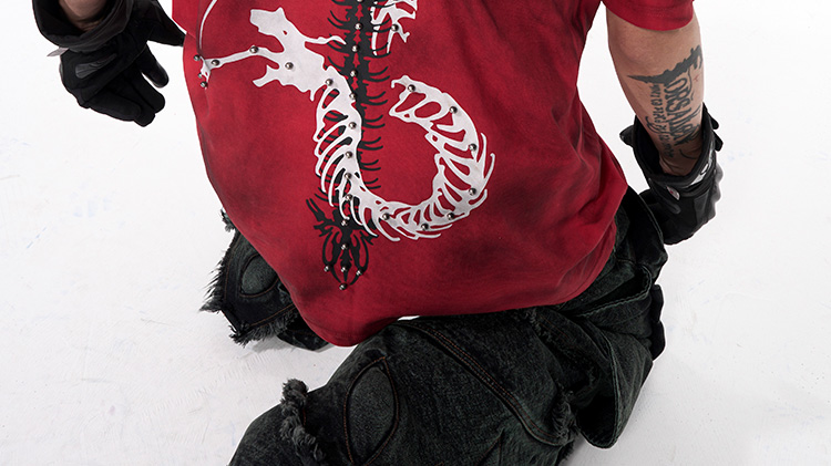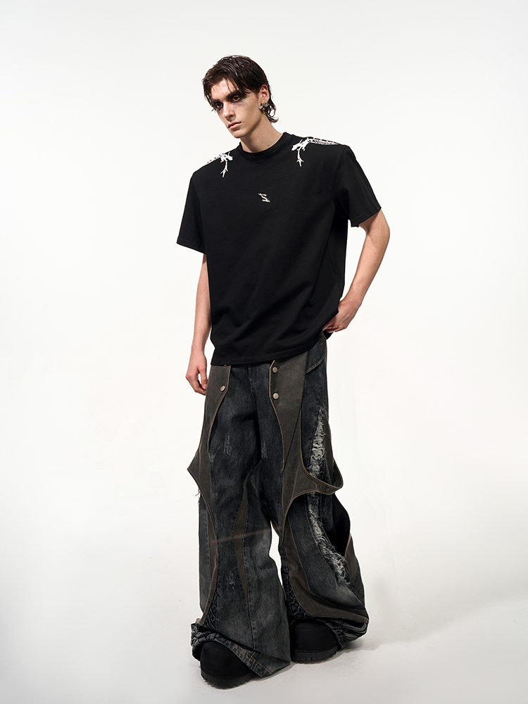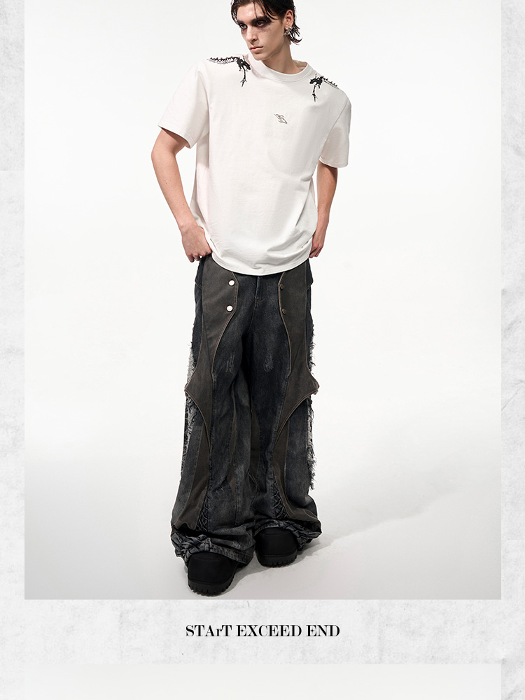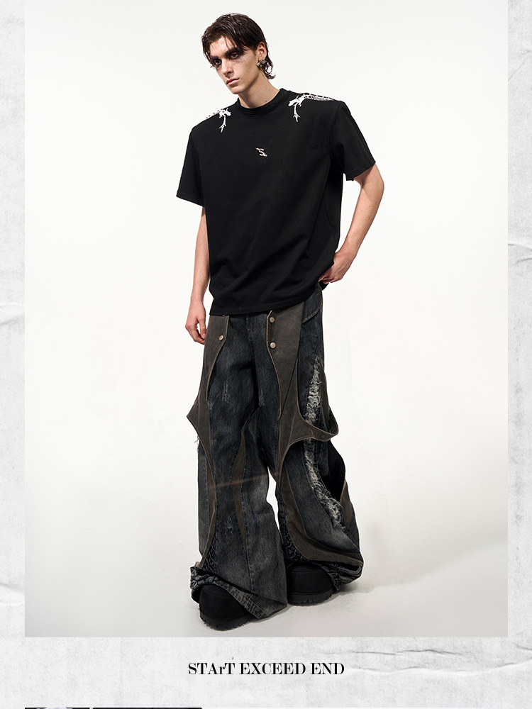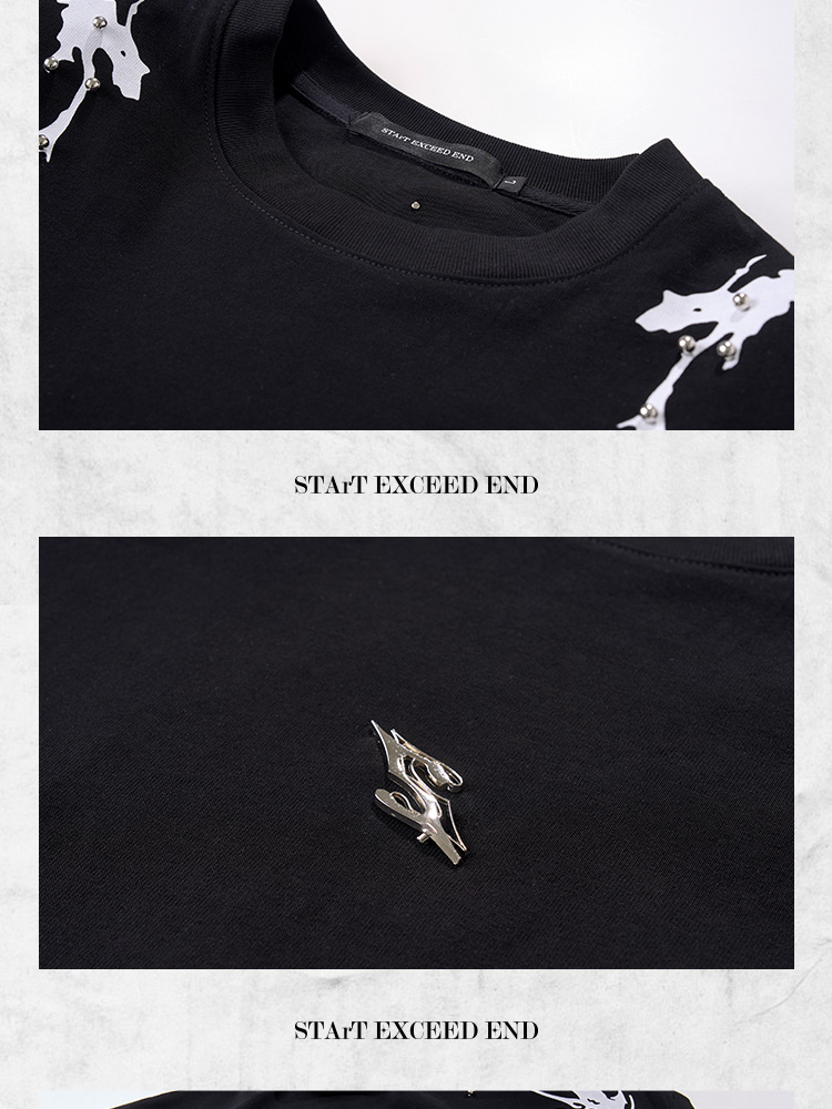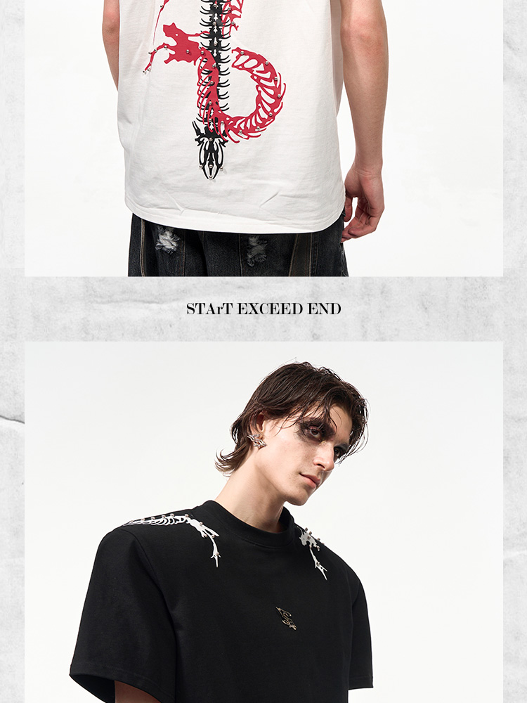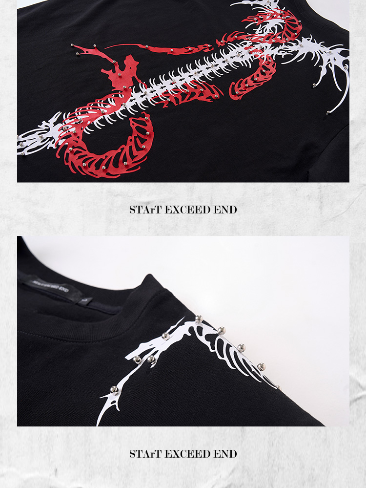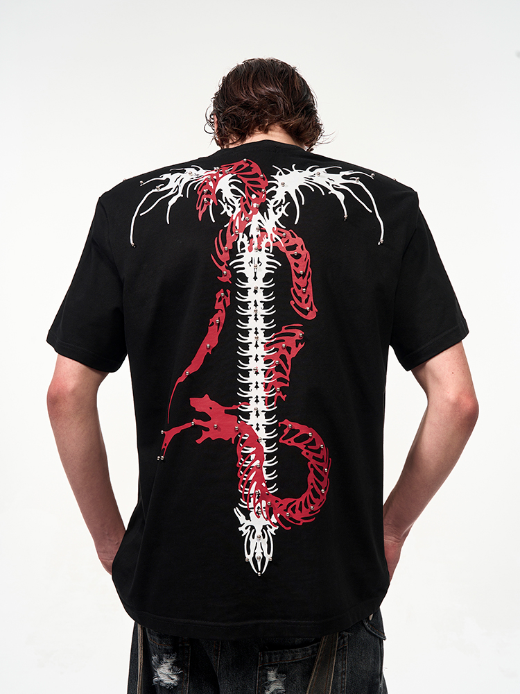 Studs Spine Snake Tie-Dye Shoulder-pad Short Sleeve T-Shirt WN16589