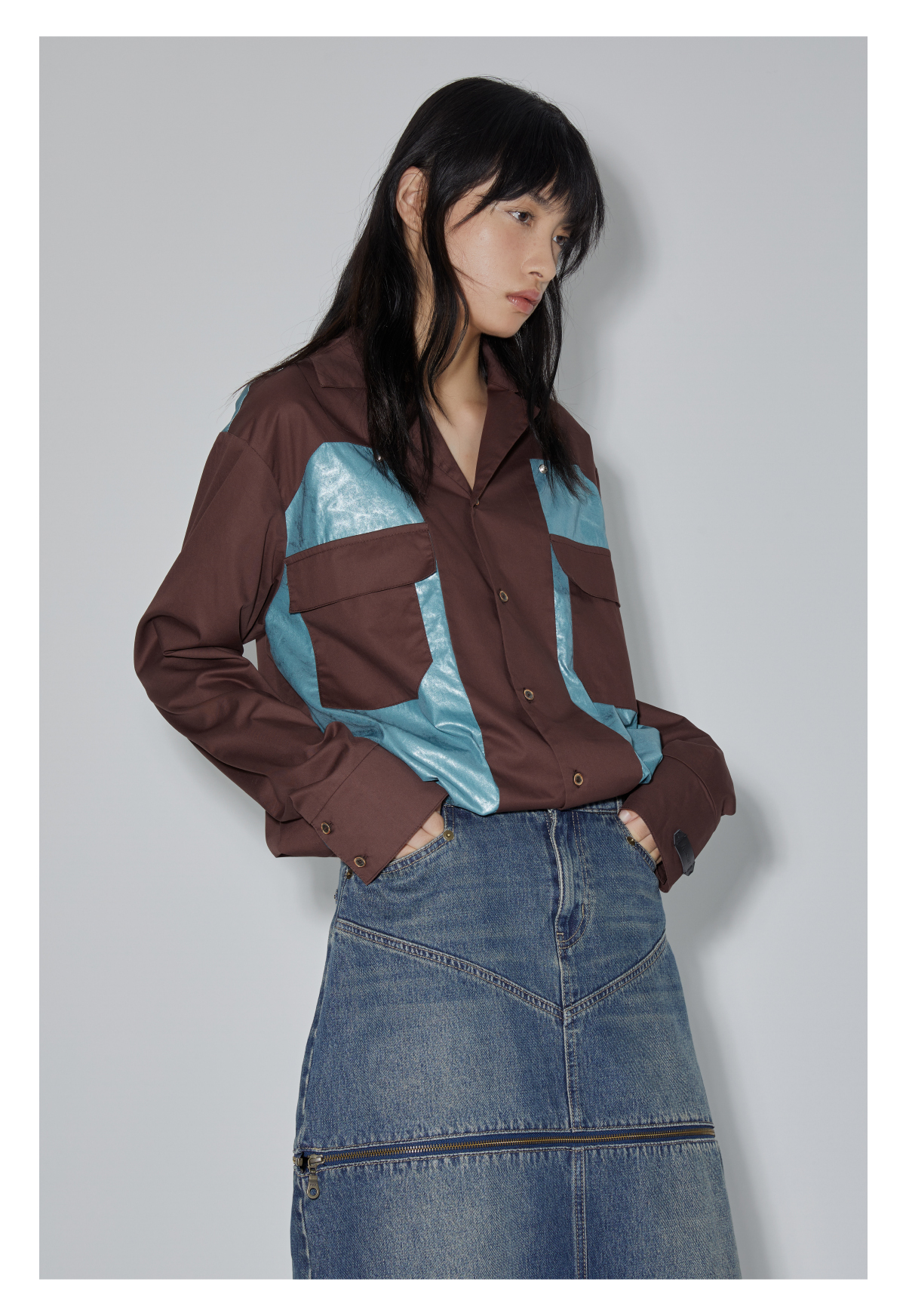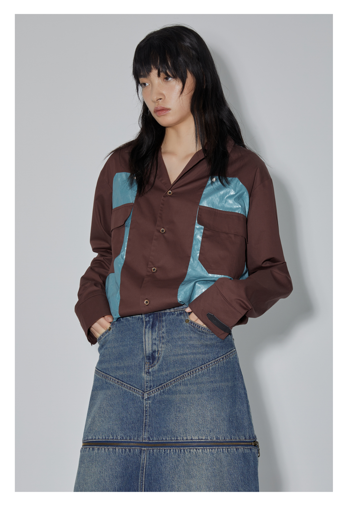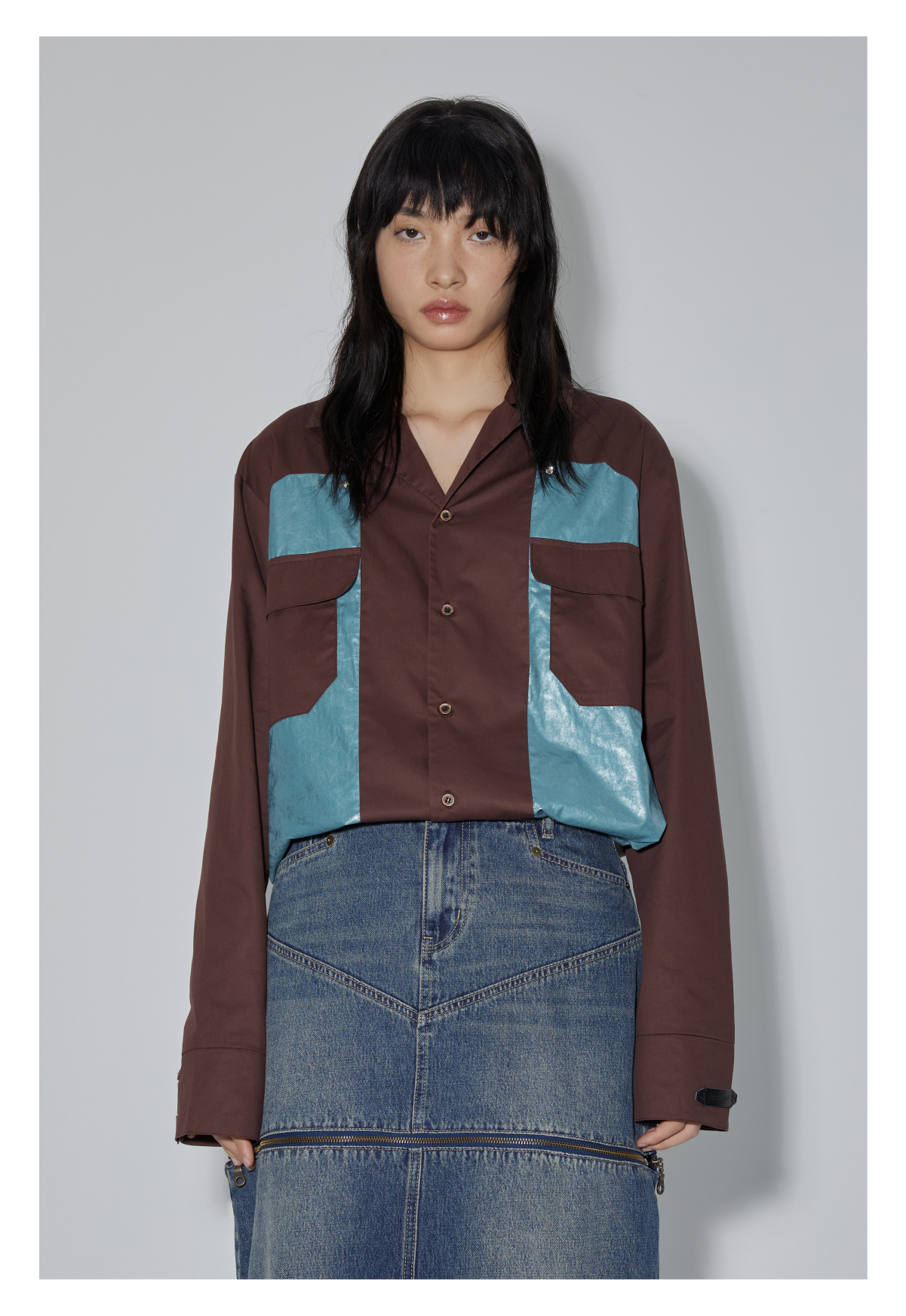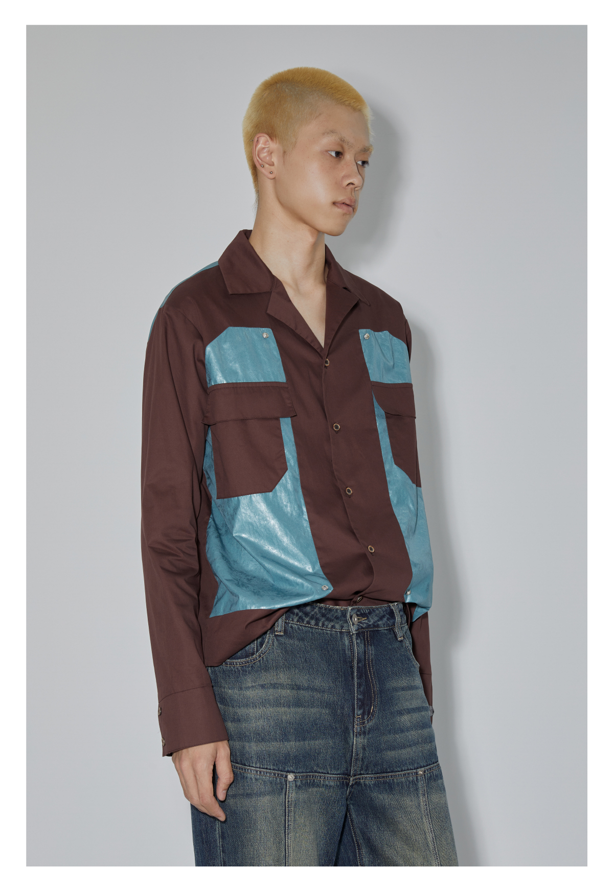 Colorblock Patchwork Long Sleeve Shirt WN18902