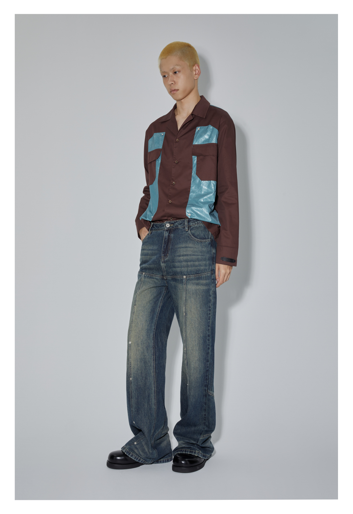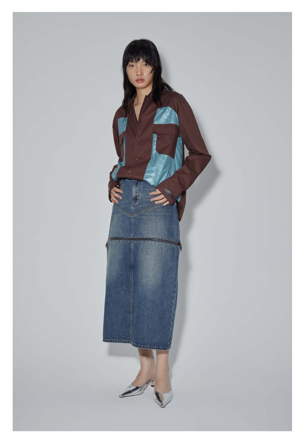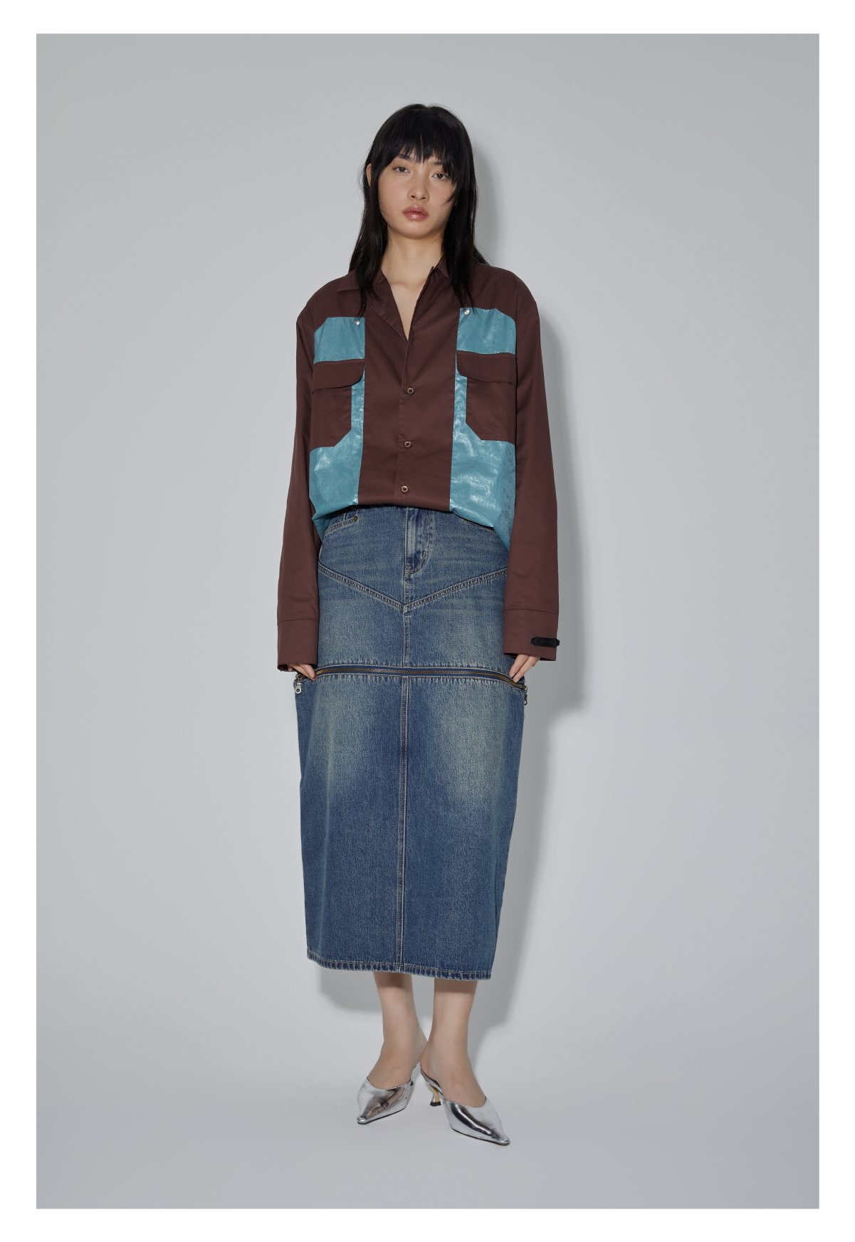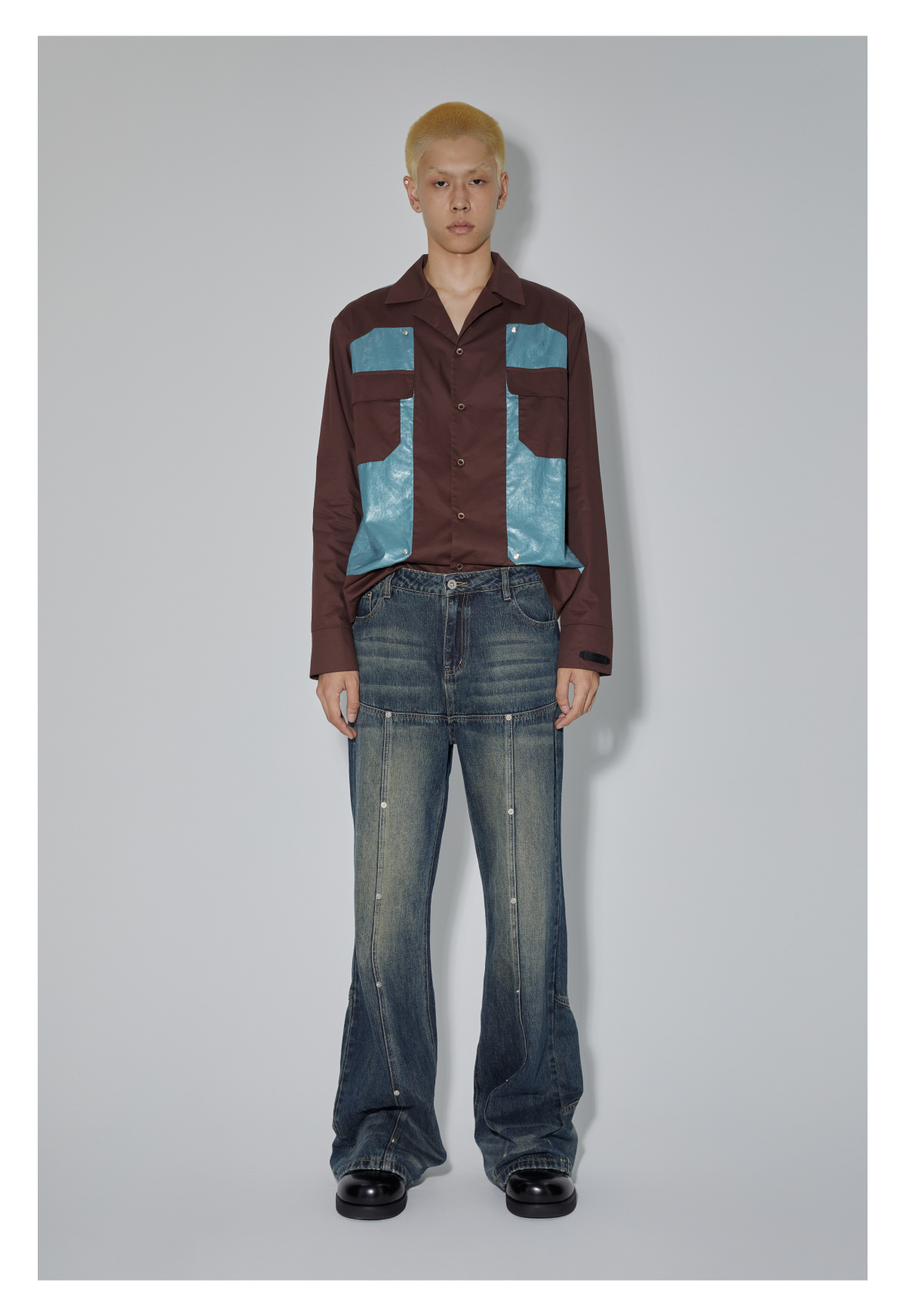 Colorblock Patchwork Long Sleeve Shirt WN18902