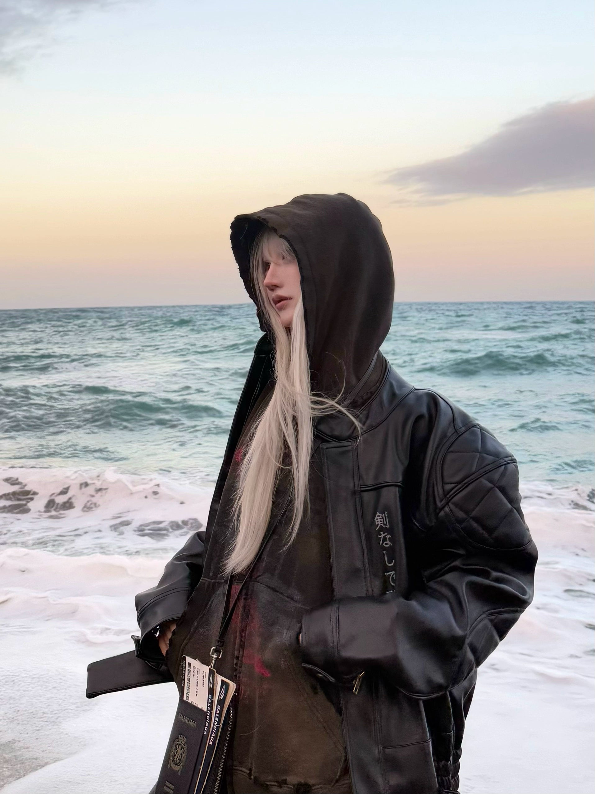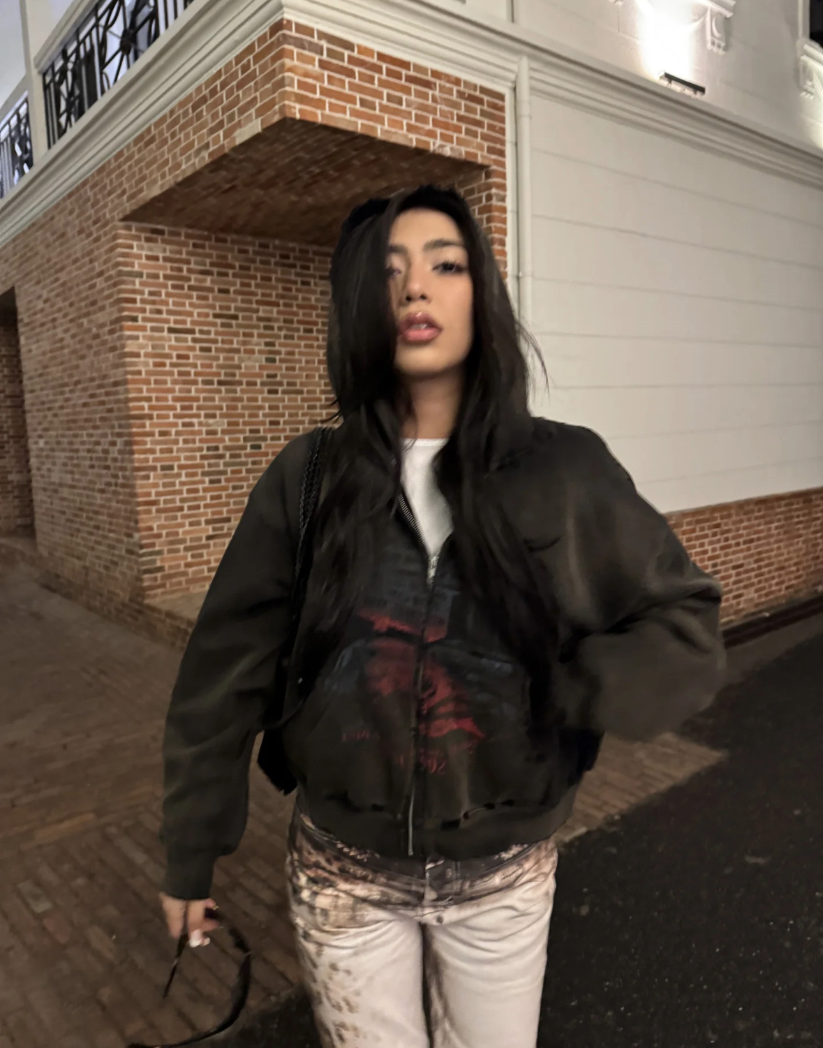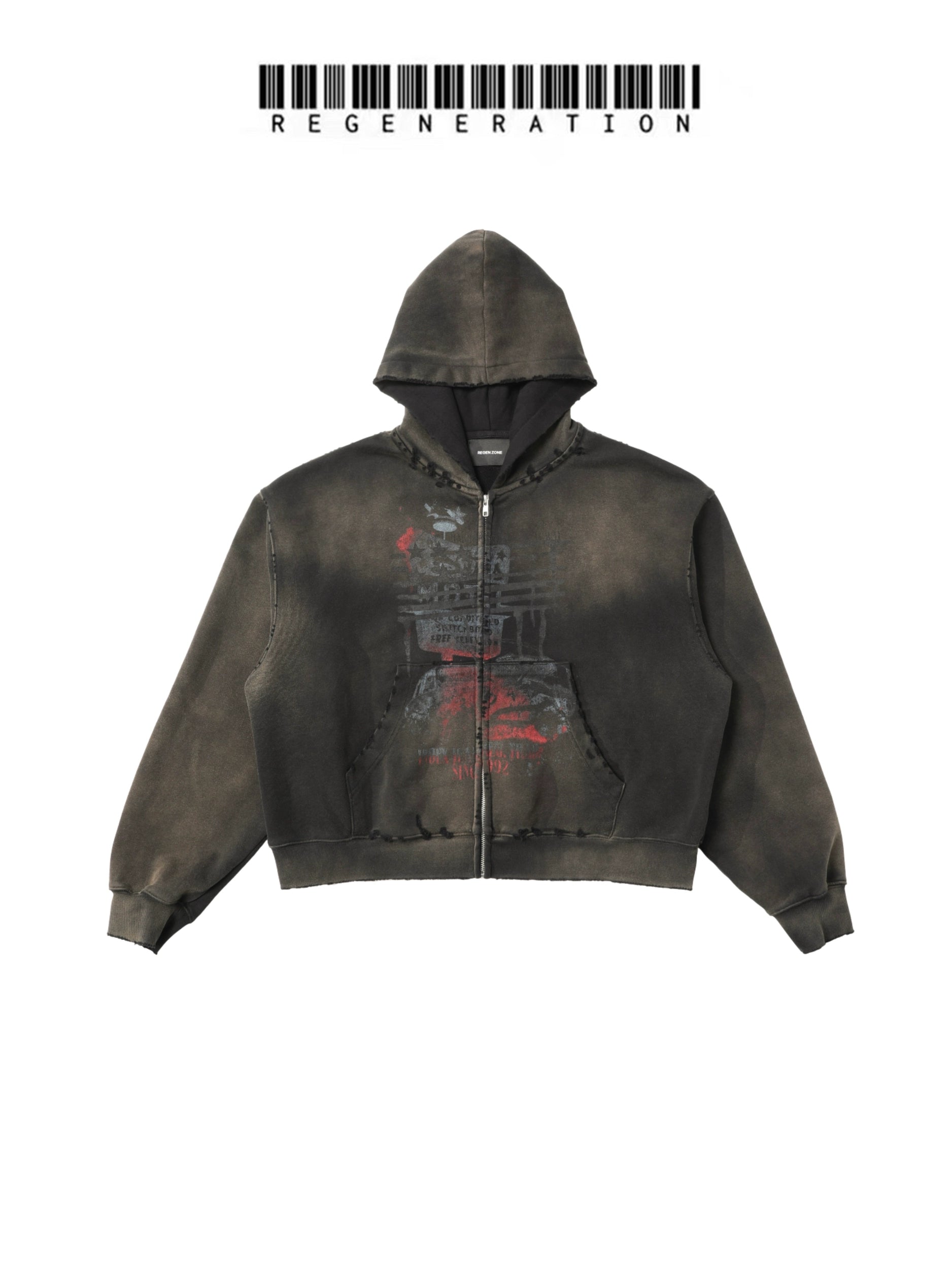 Damage Print Oversize Zipper Hoodie WN19718