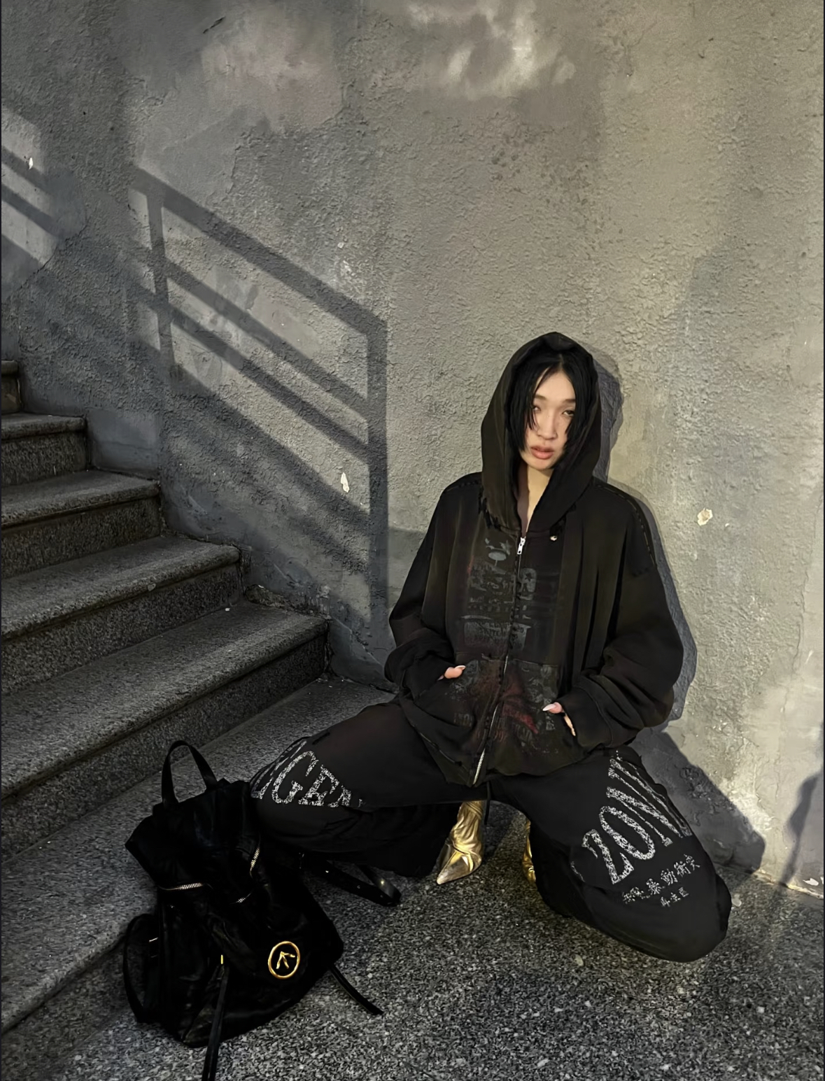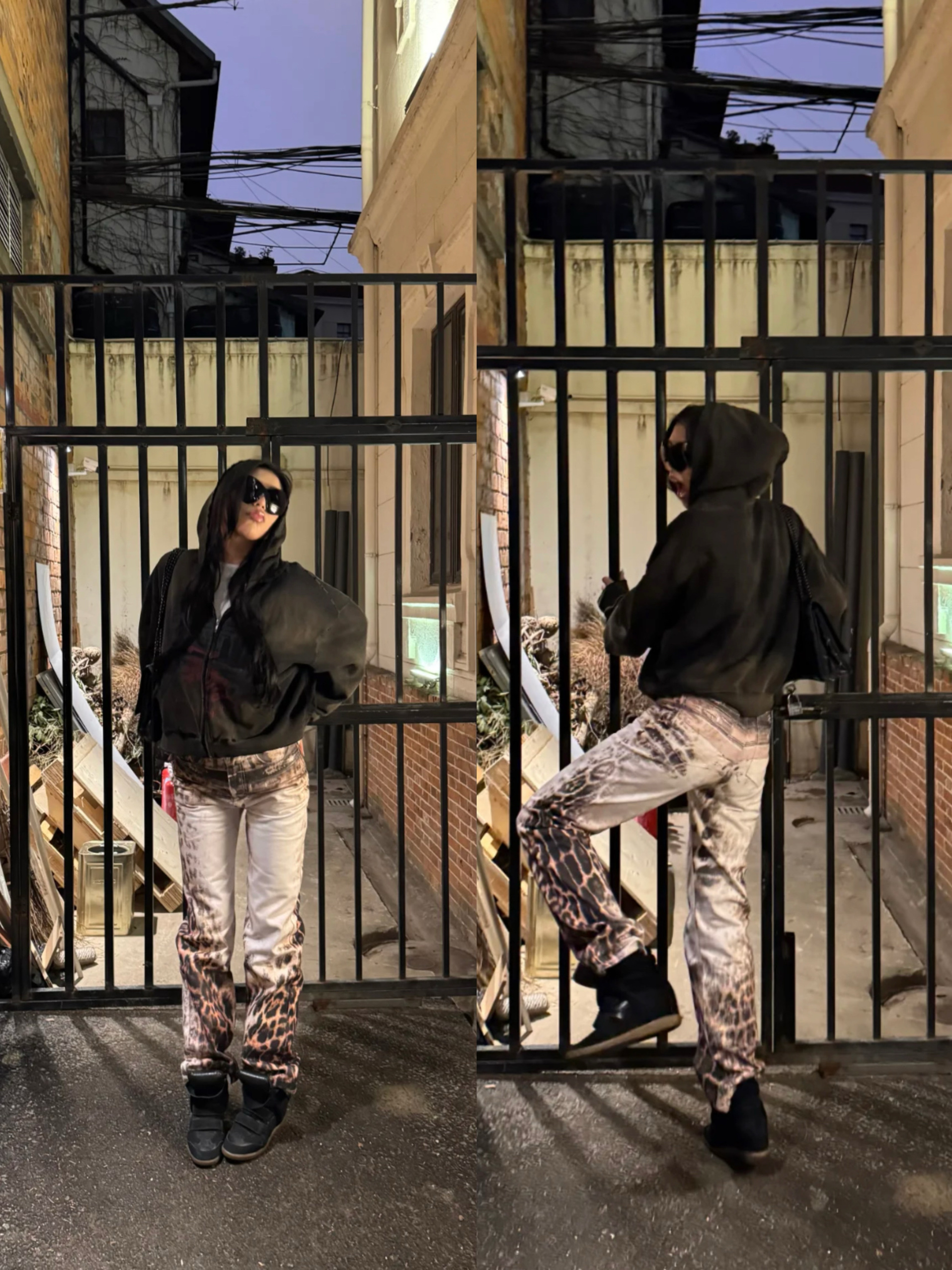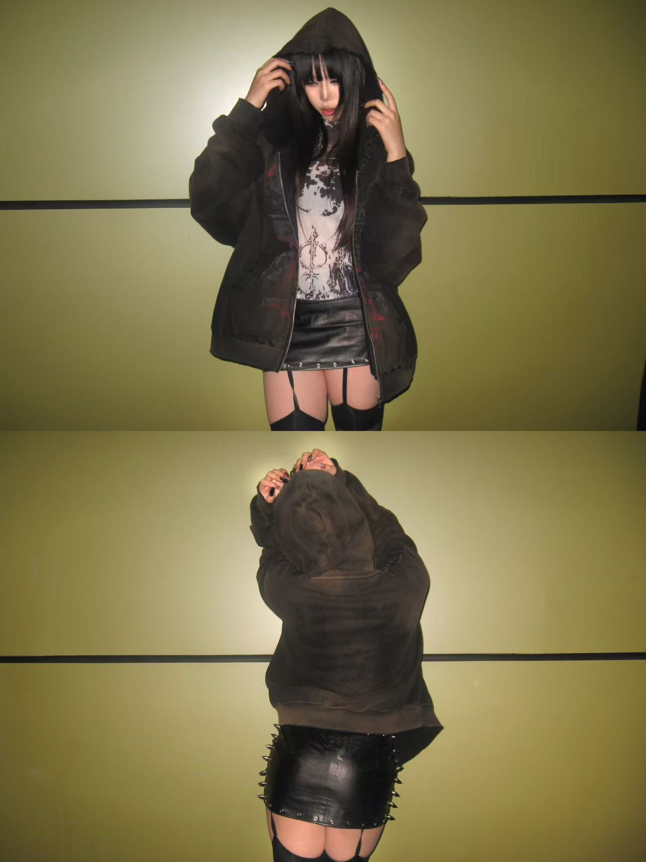 Damage Print Oversize Zipper Hoodie WN19718