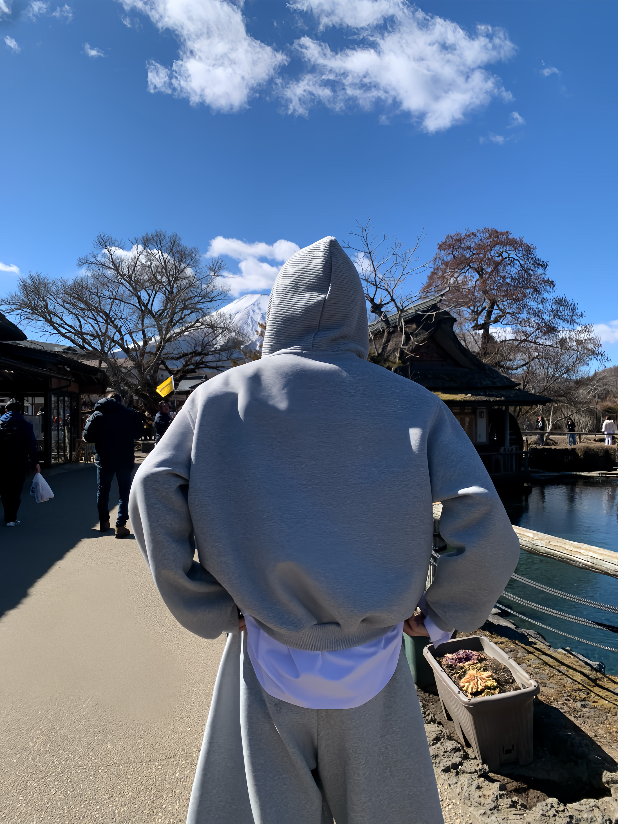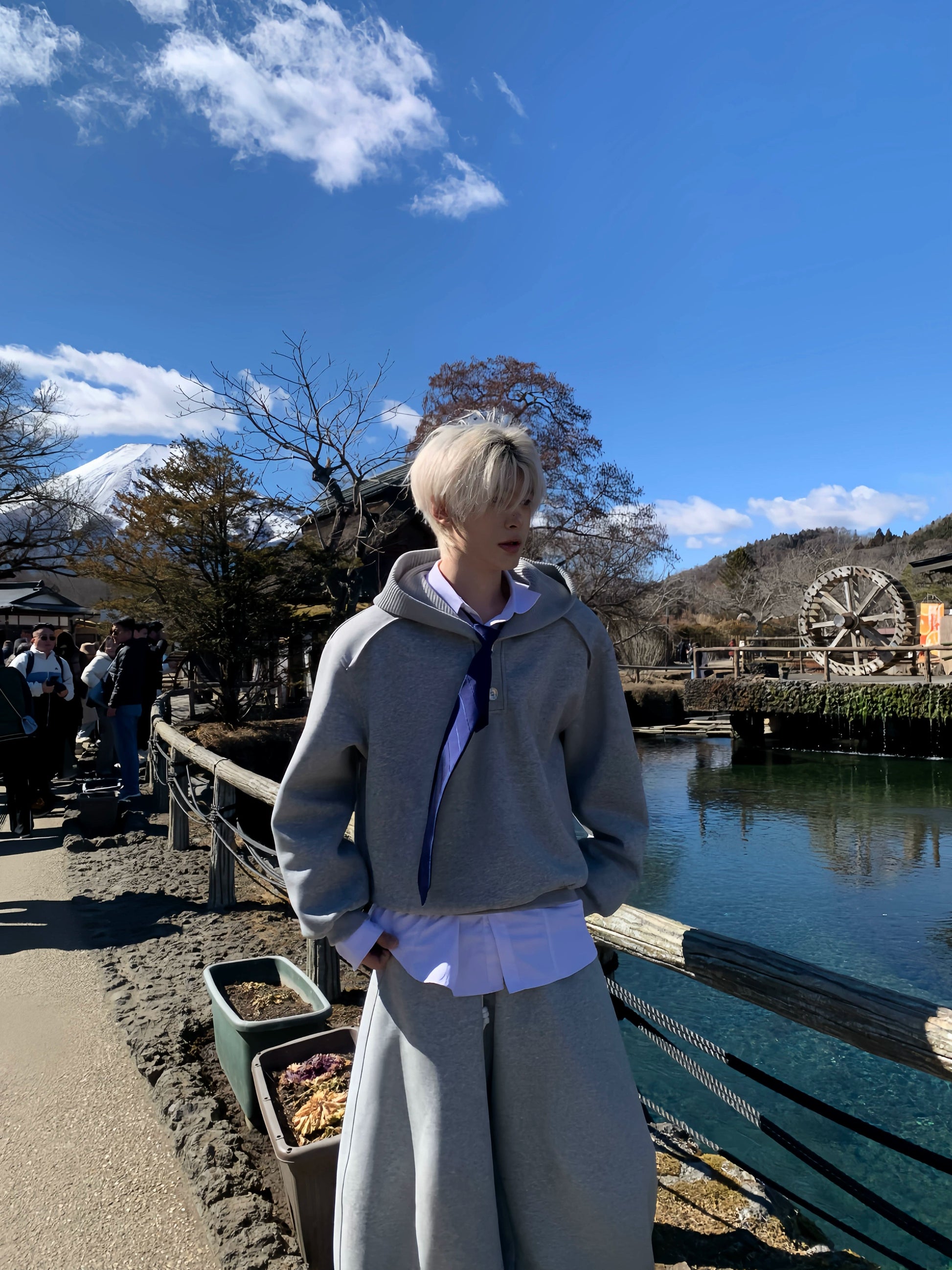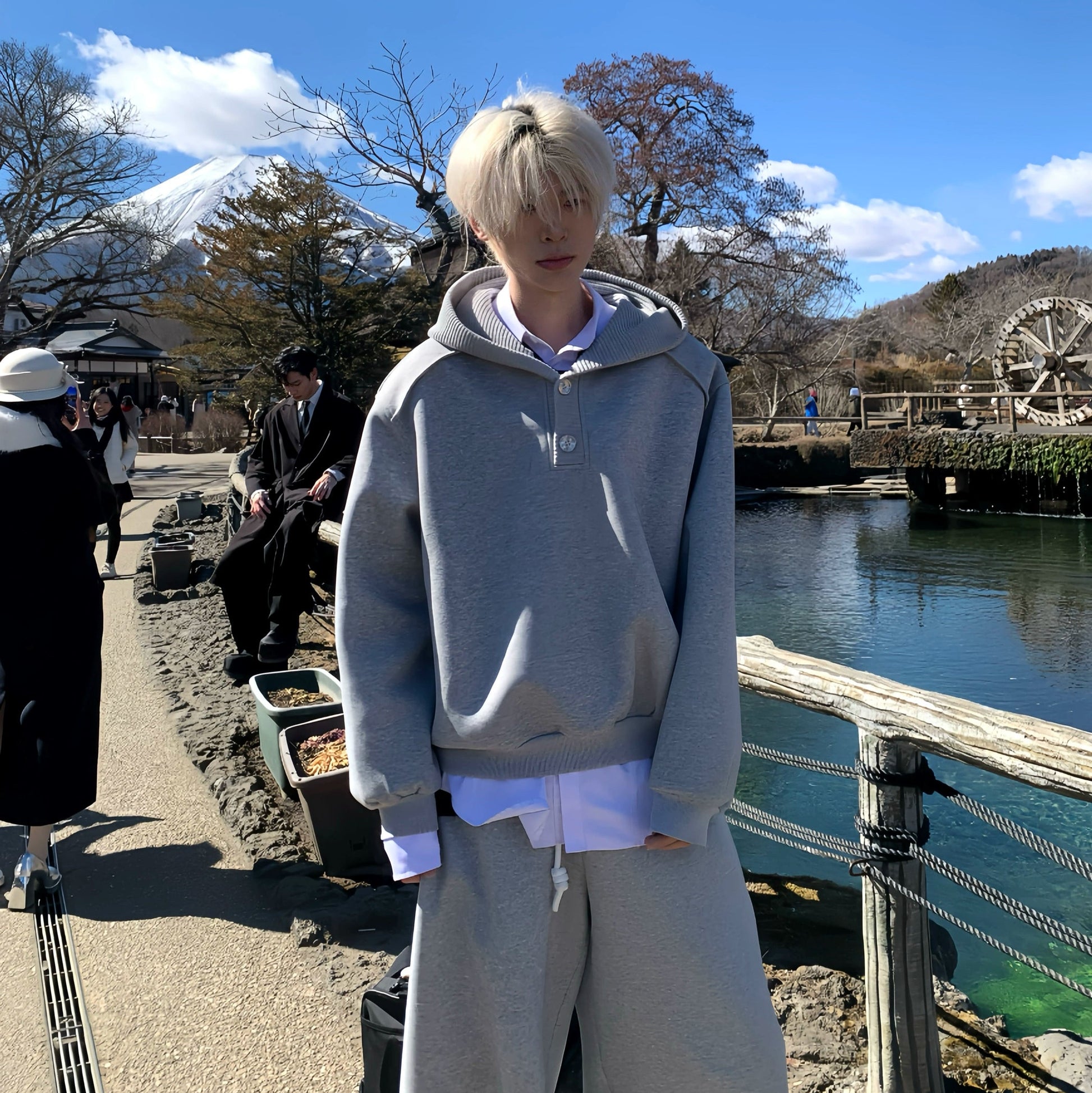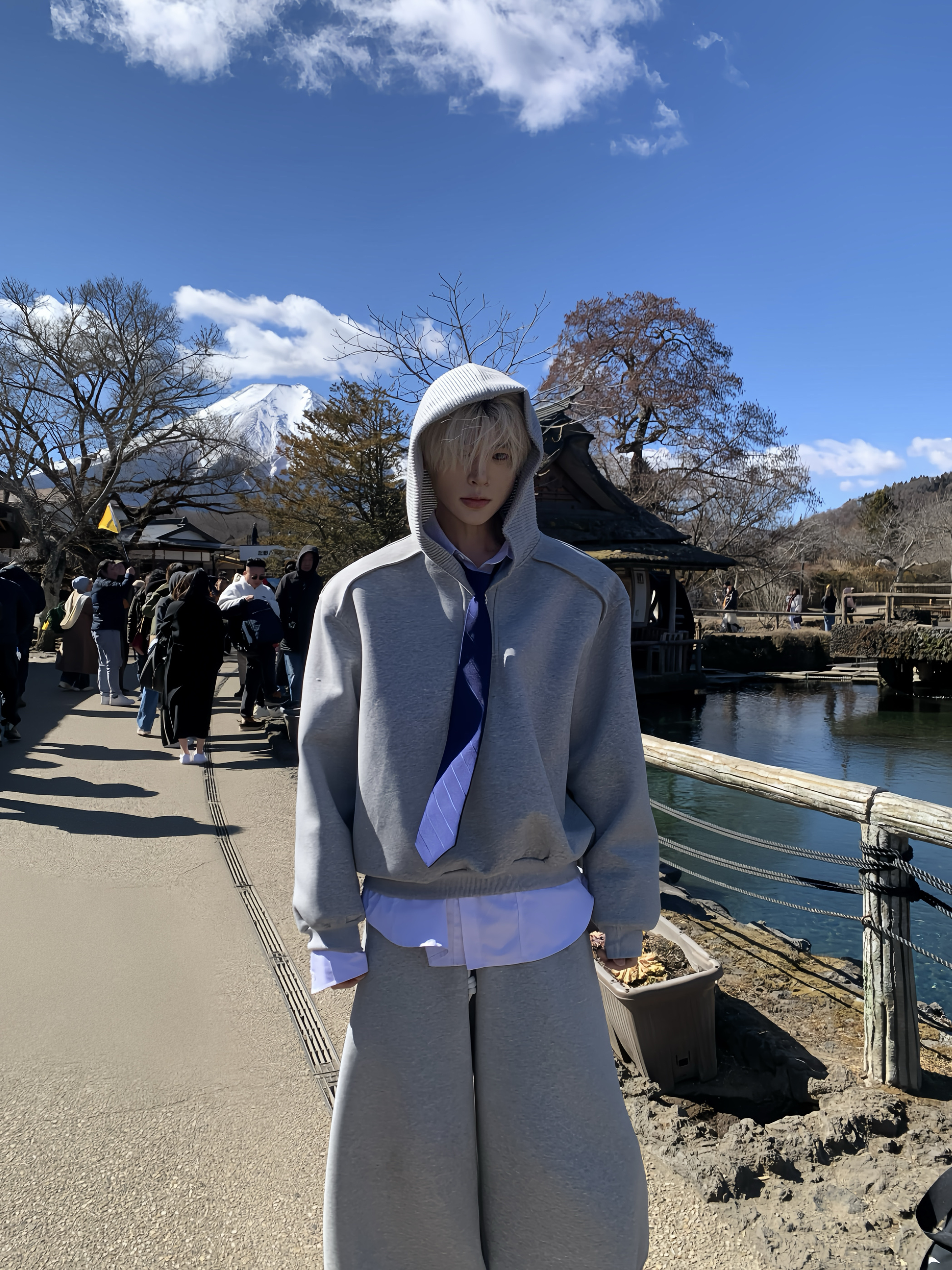 Plain Patchwork Oversize Hoodie & Tie WN19744