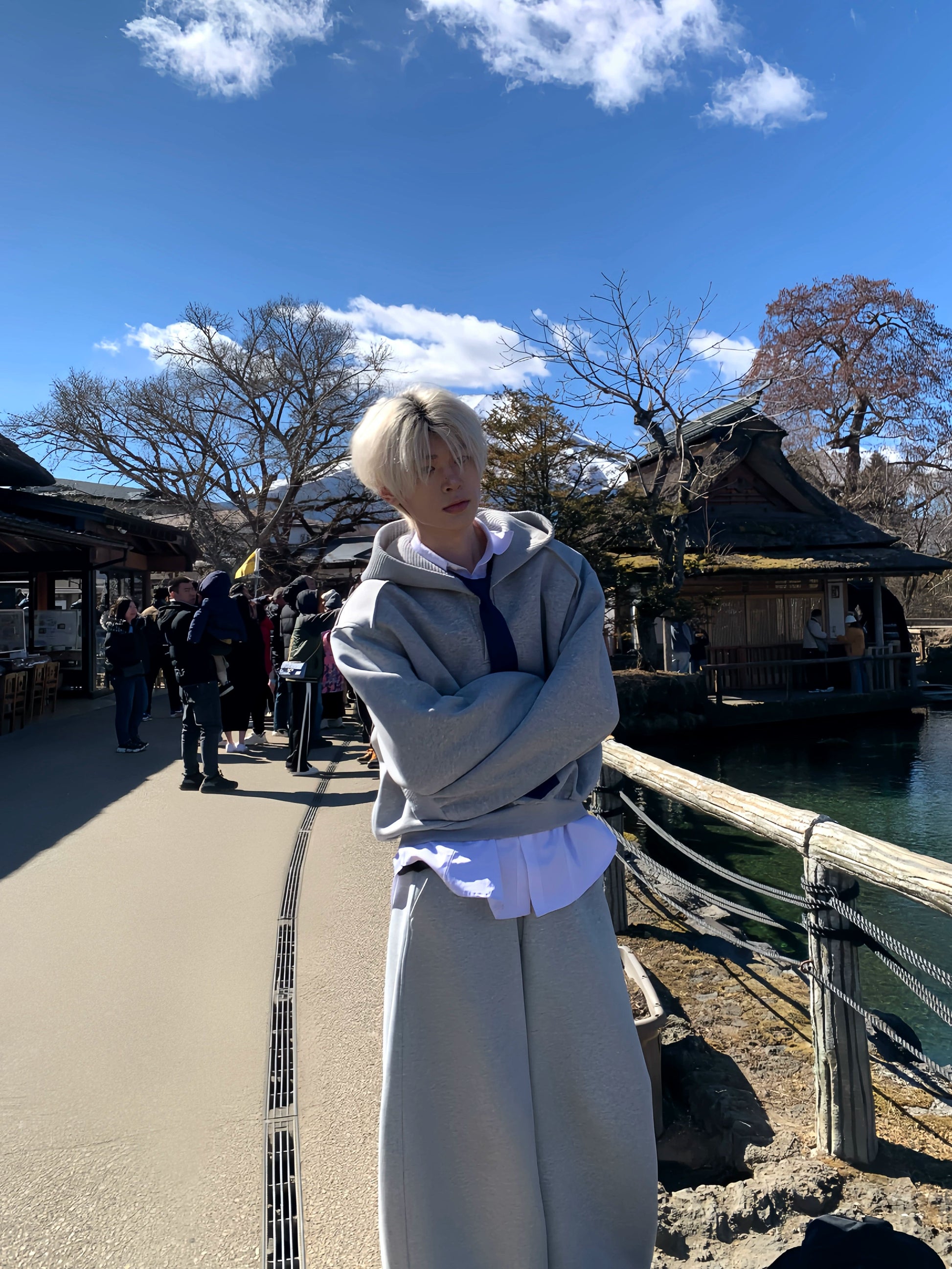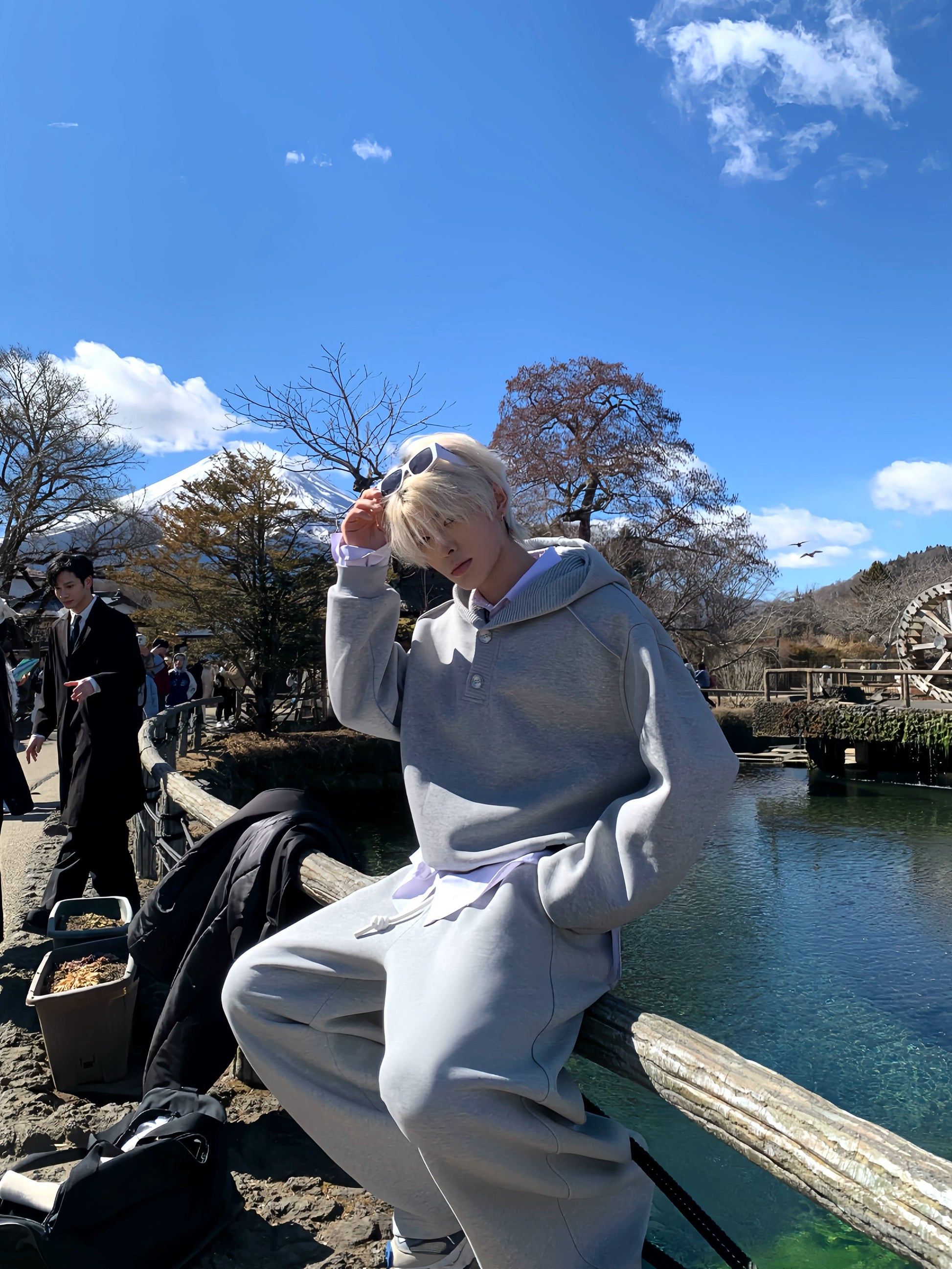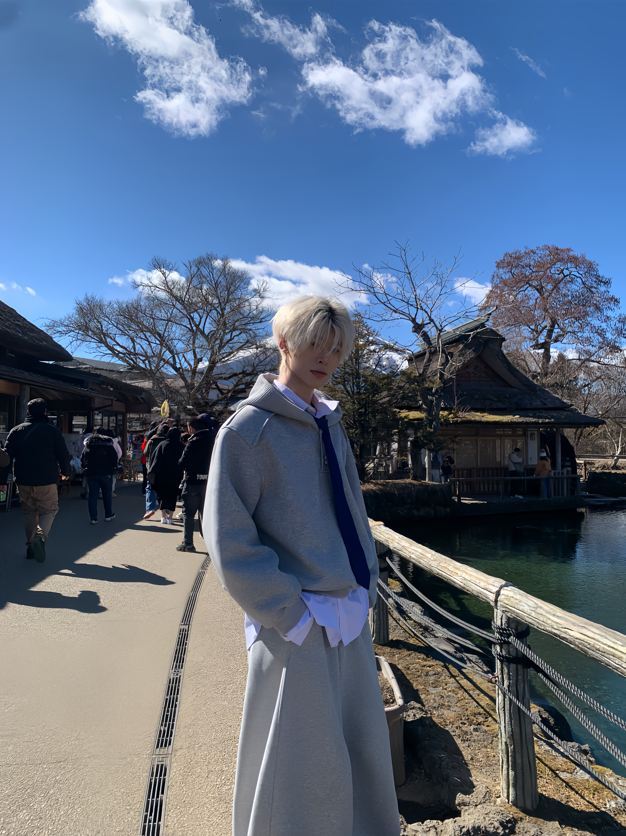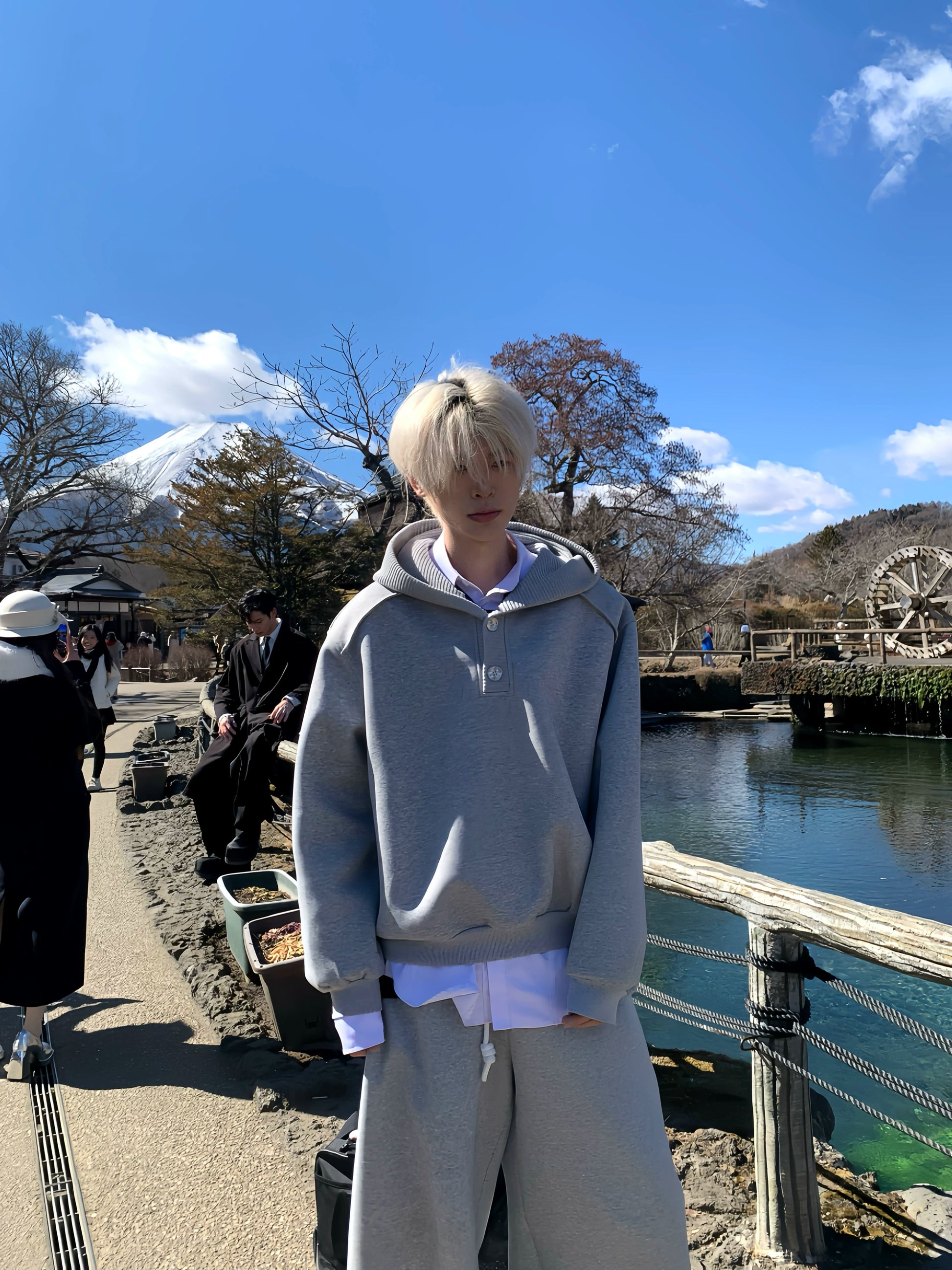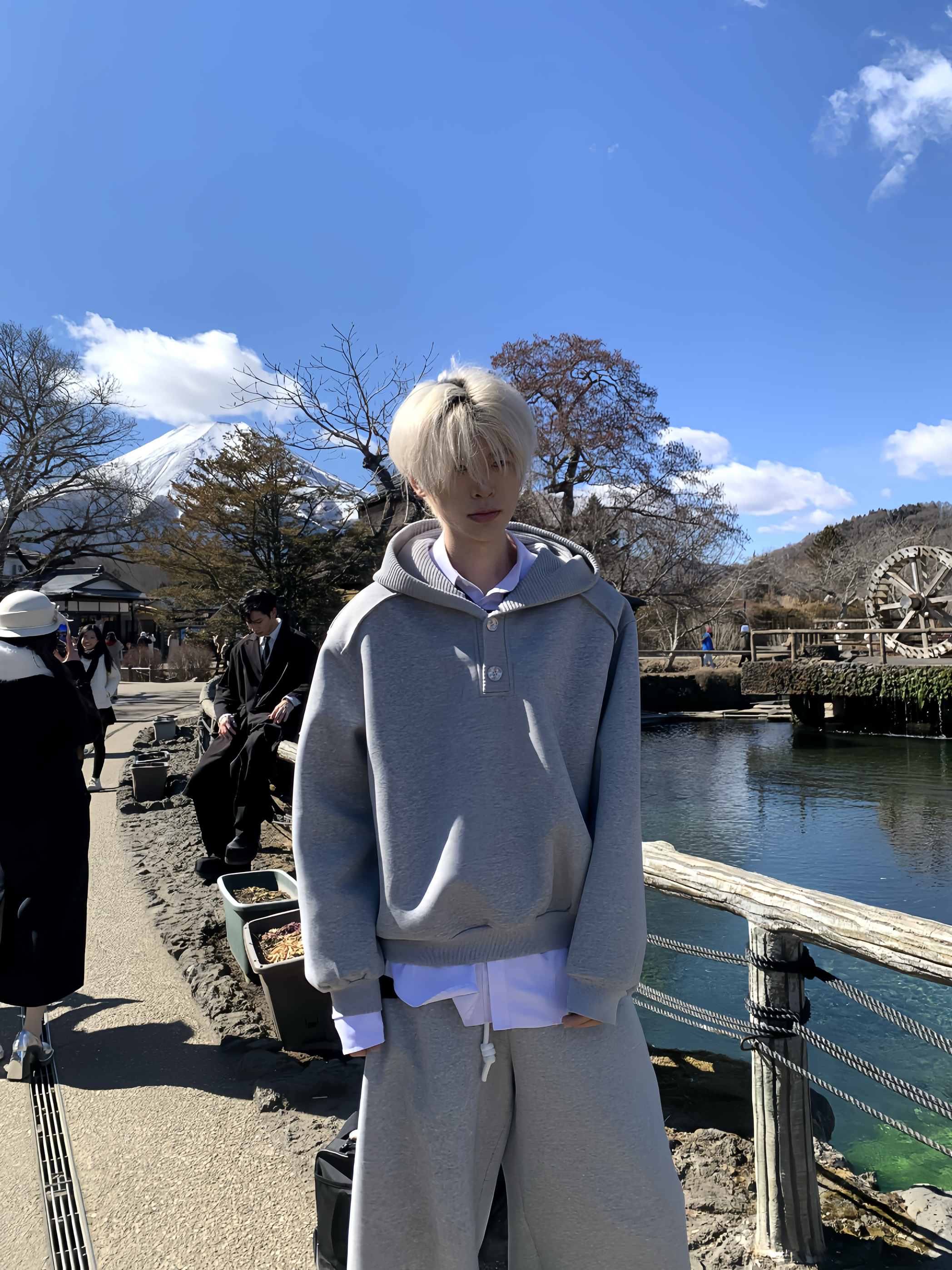 Plain Patchwork Oversize Hoodie & Tie WN19744