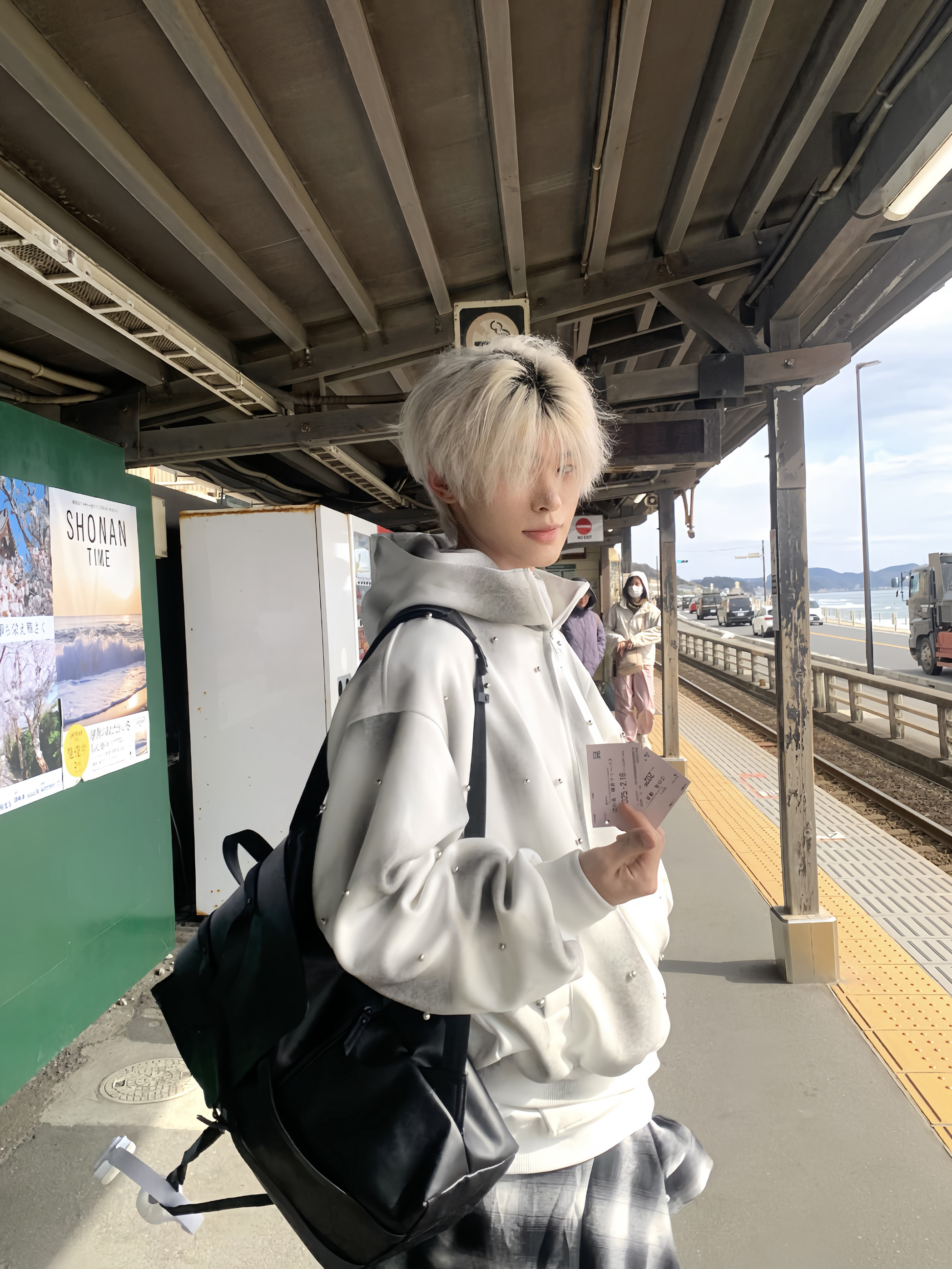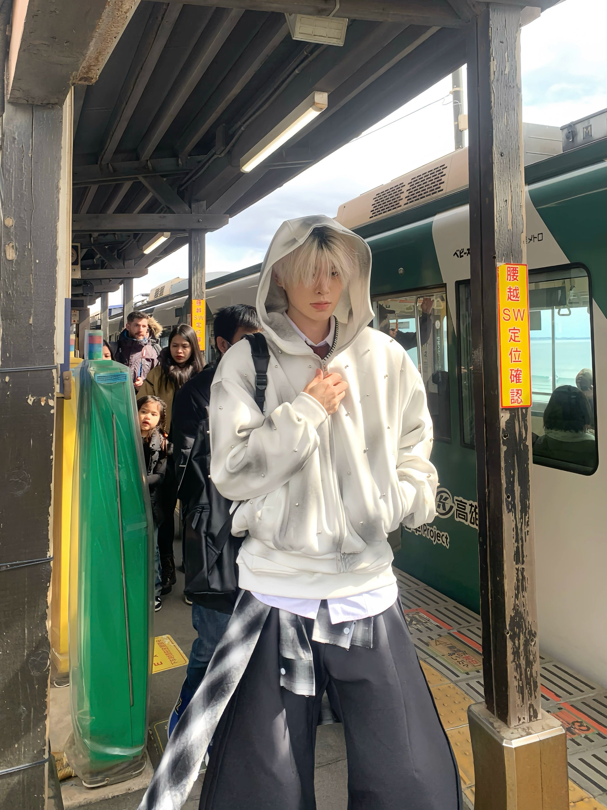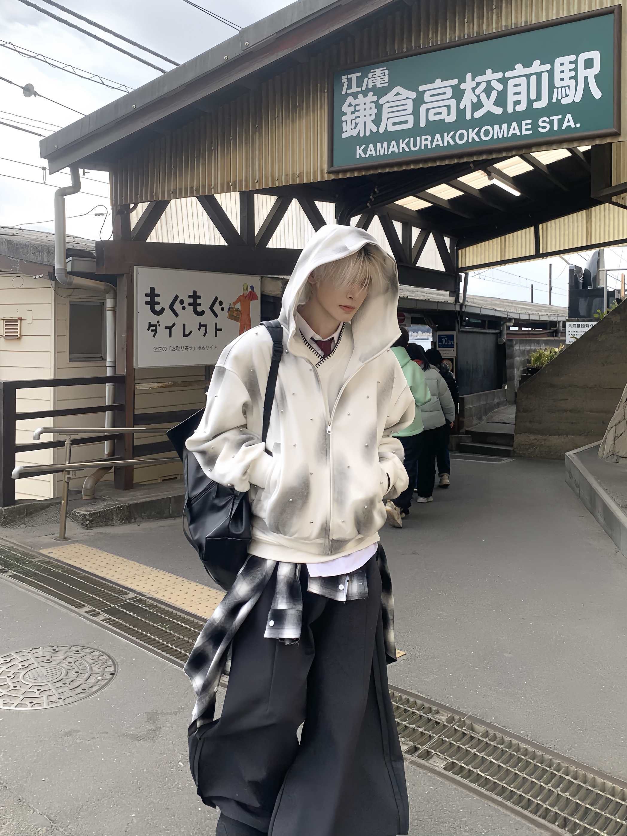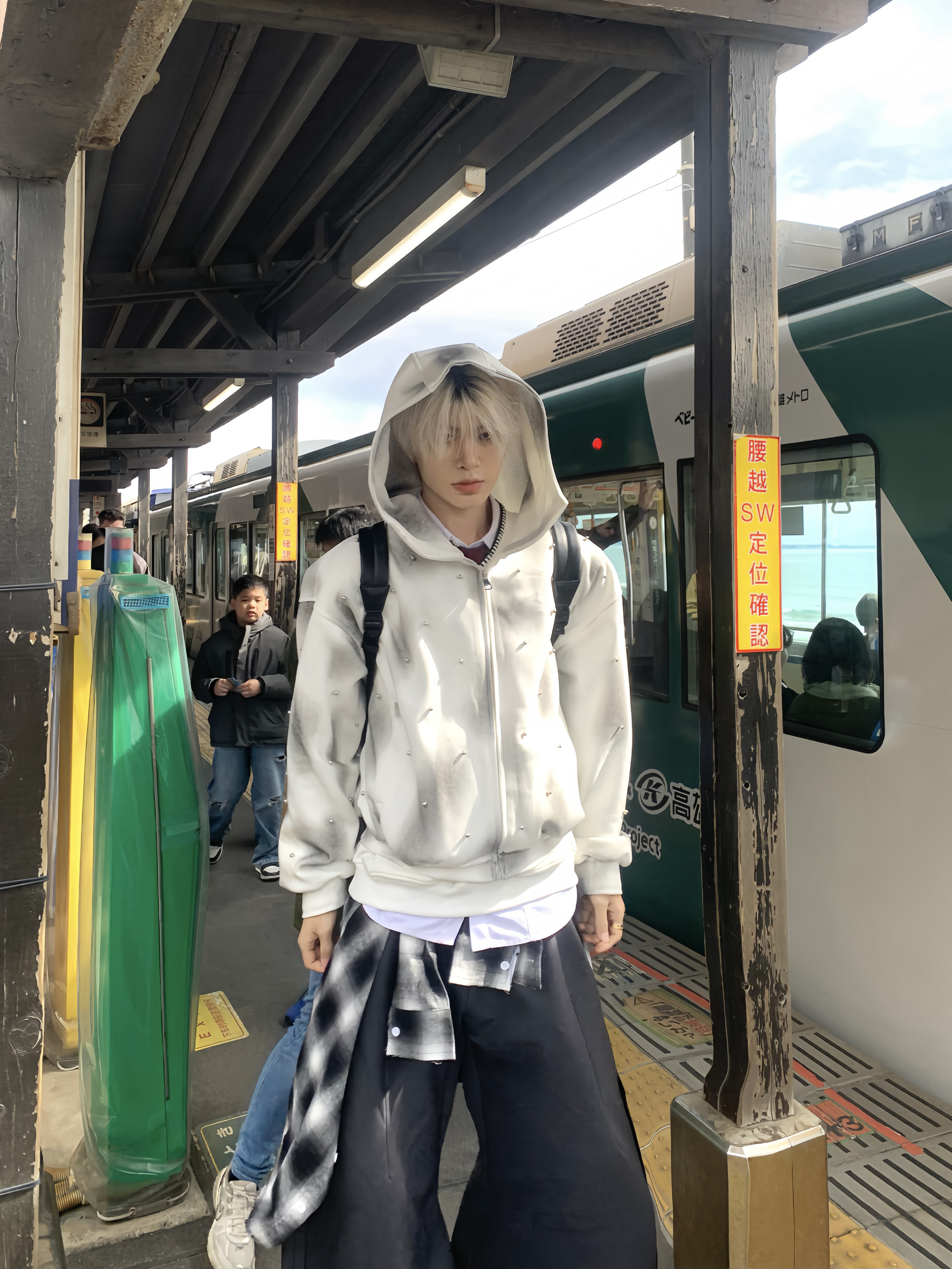 Washed Studs Heavyweight Zipper Hoodie WN19897