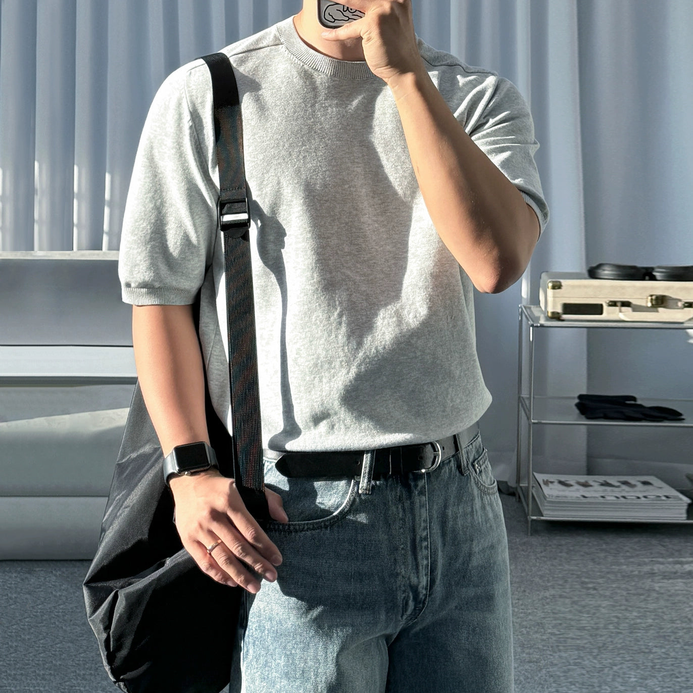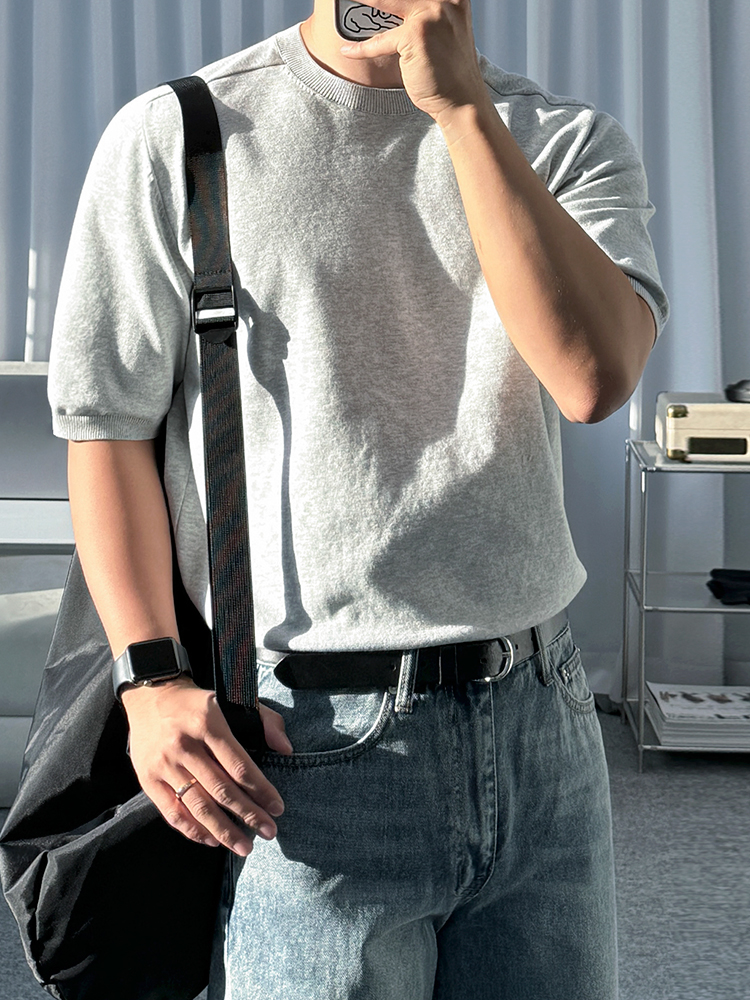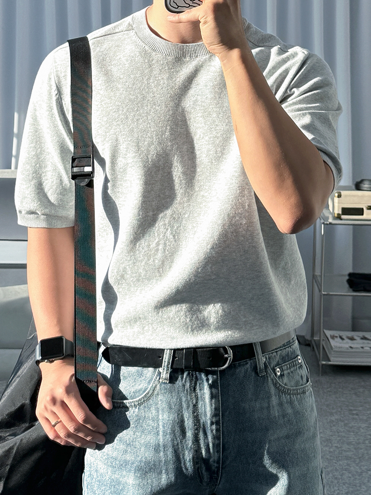Solid Color Knit Short Sleeve T-Shirt WN20301