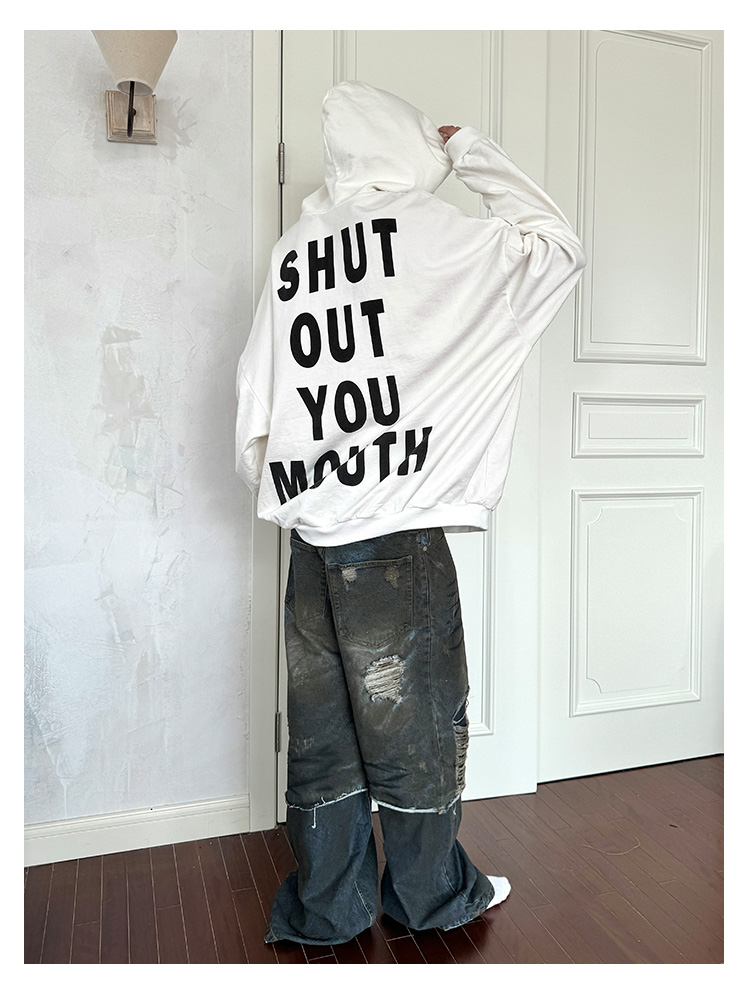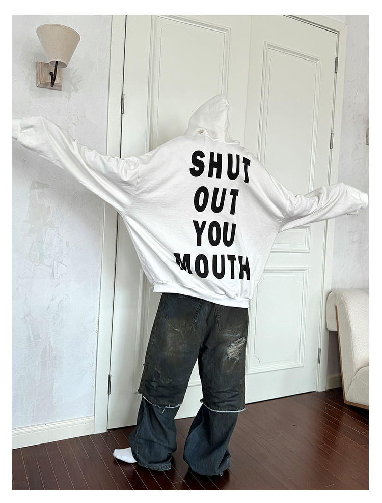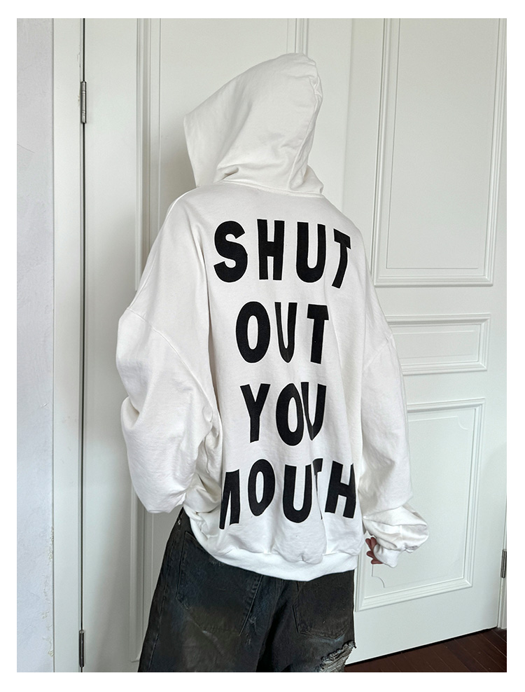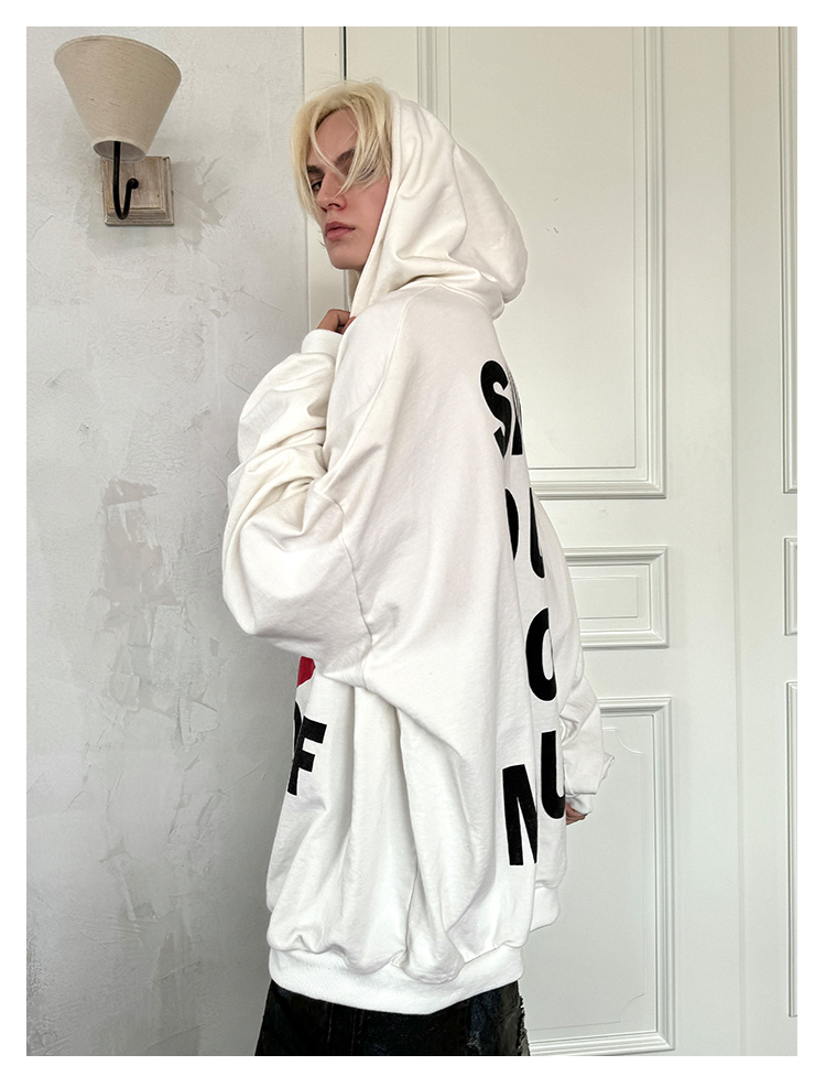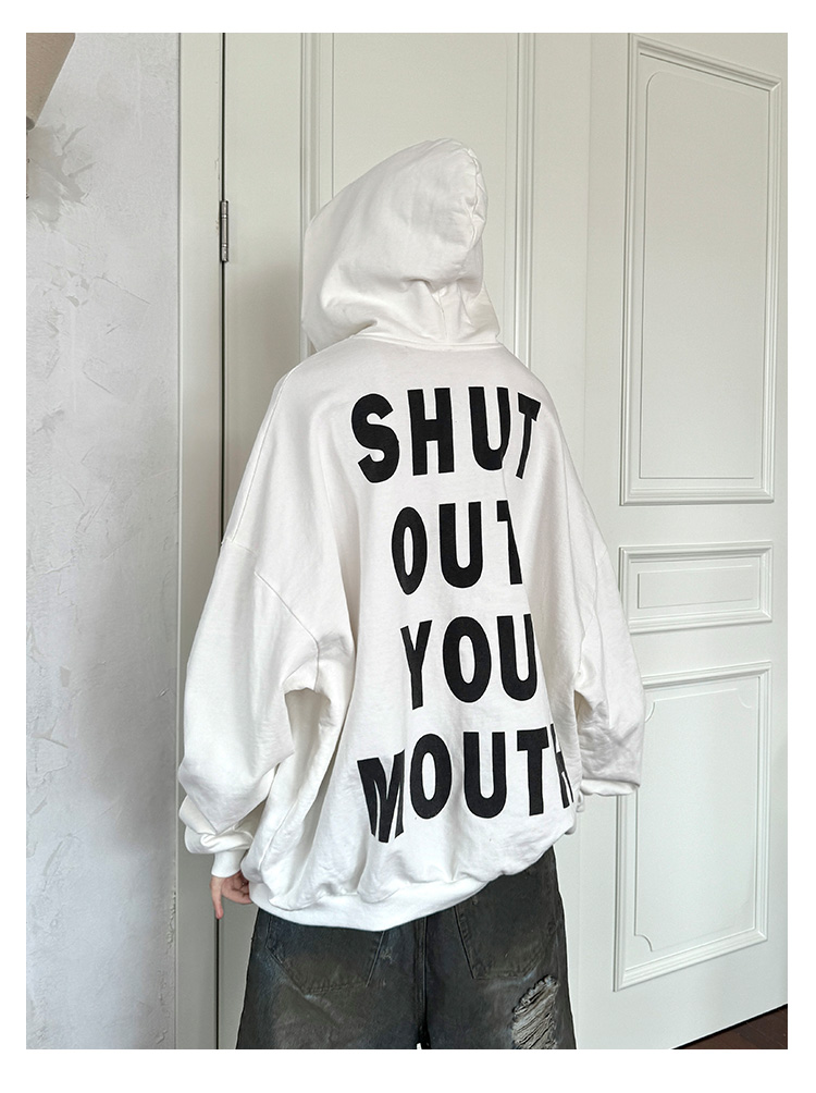 Letter Print Fleece Lining Oversize Hoodie WN21325