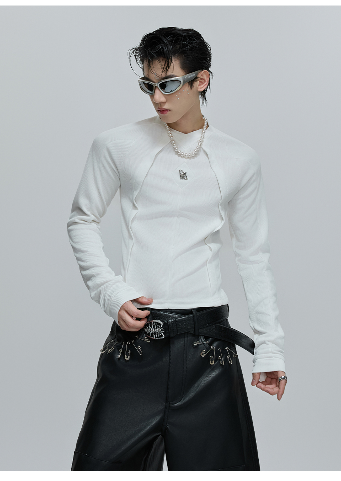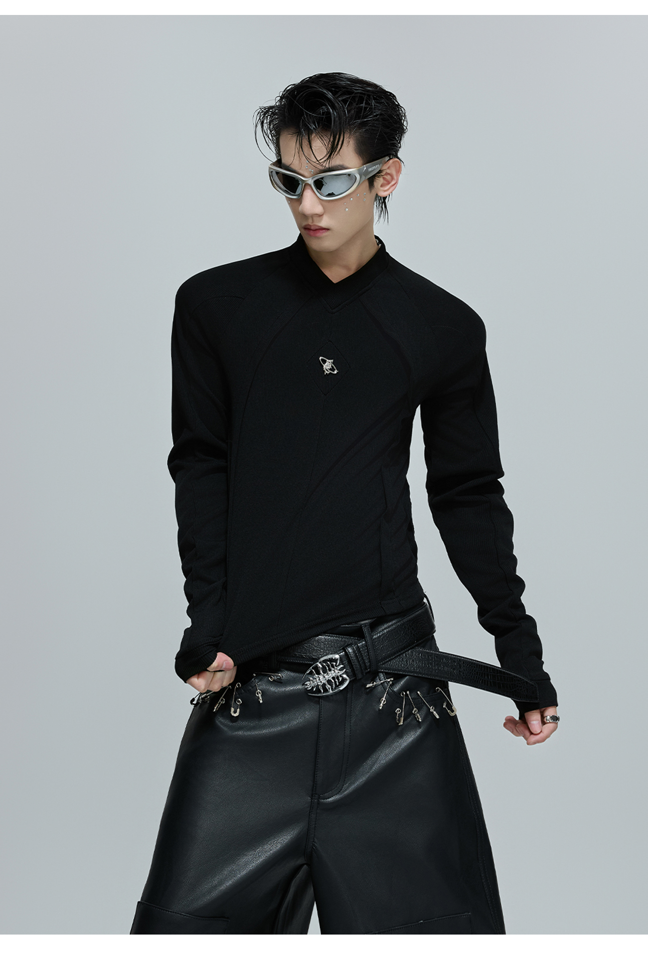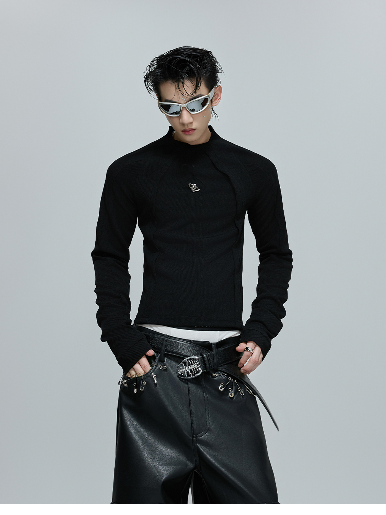 Deconstructed Slim Fit Metal Logo Long Sleeve T-Shirt WN21695