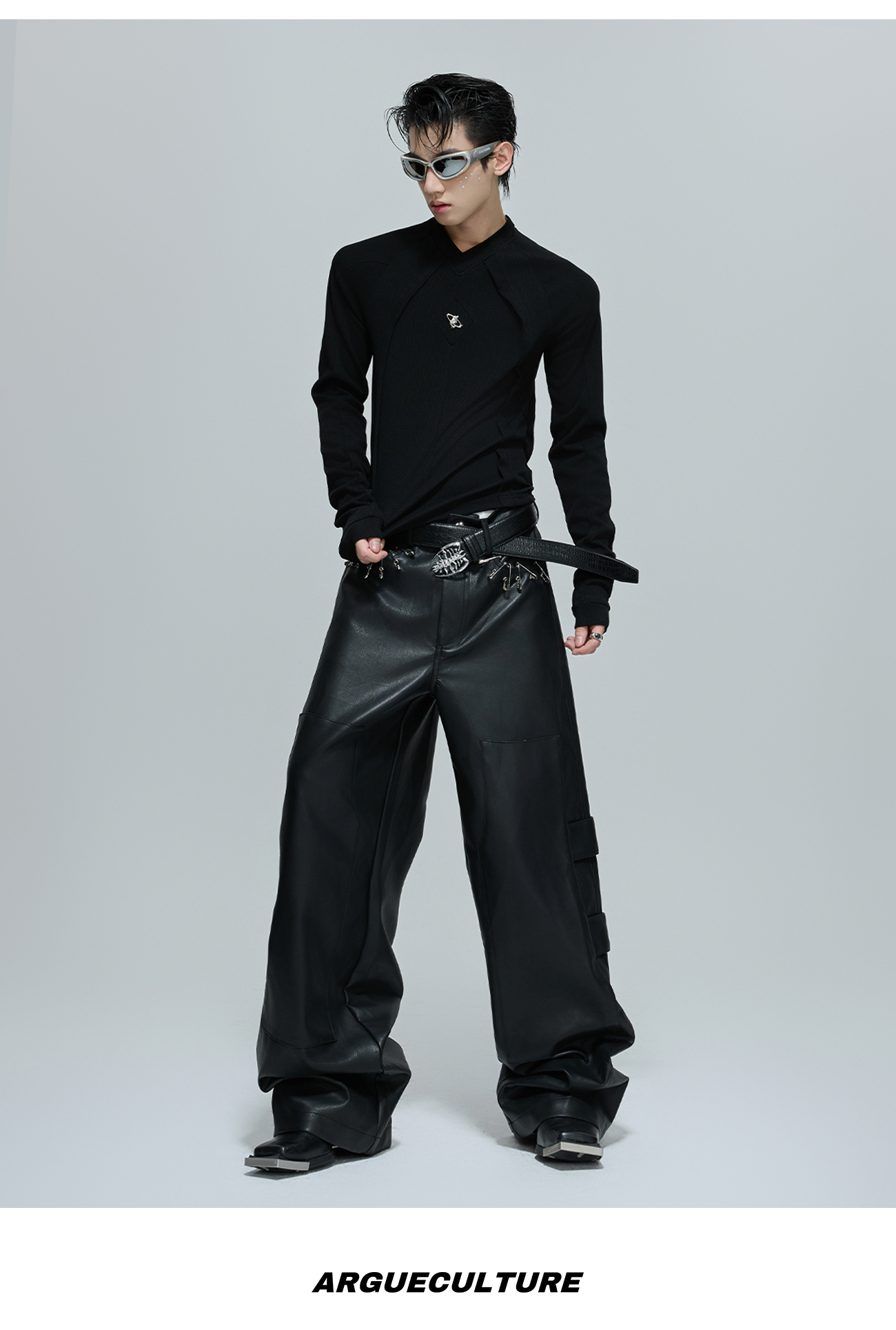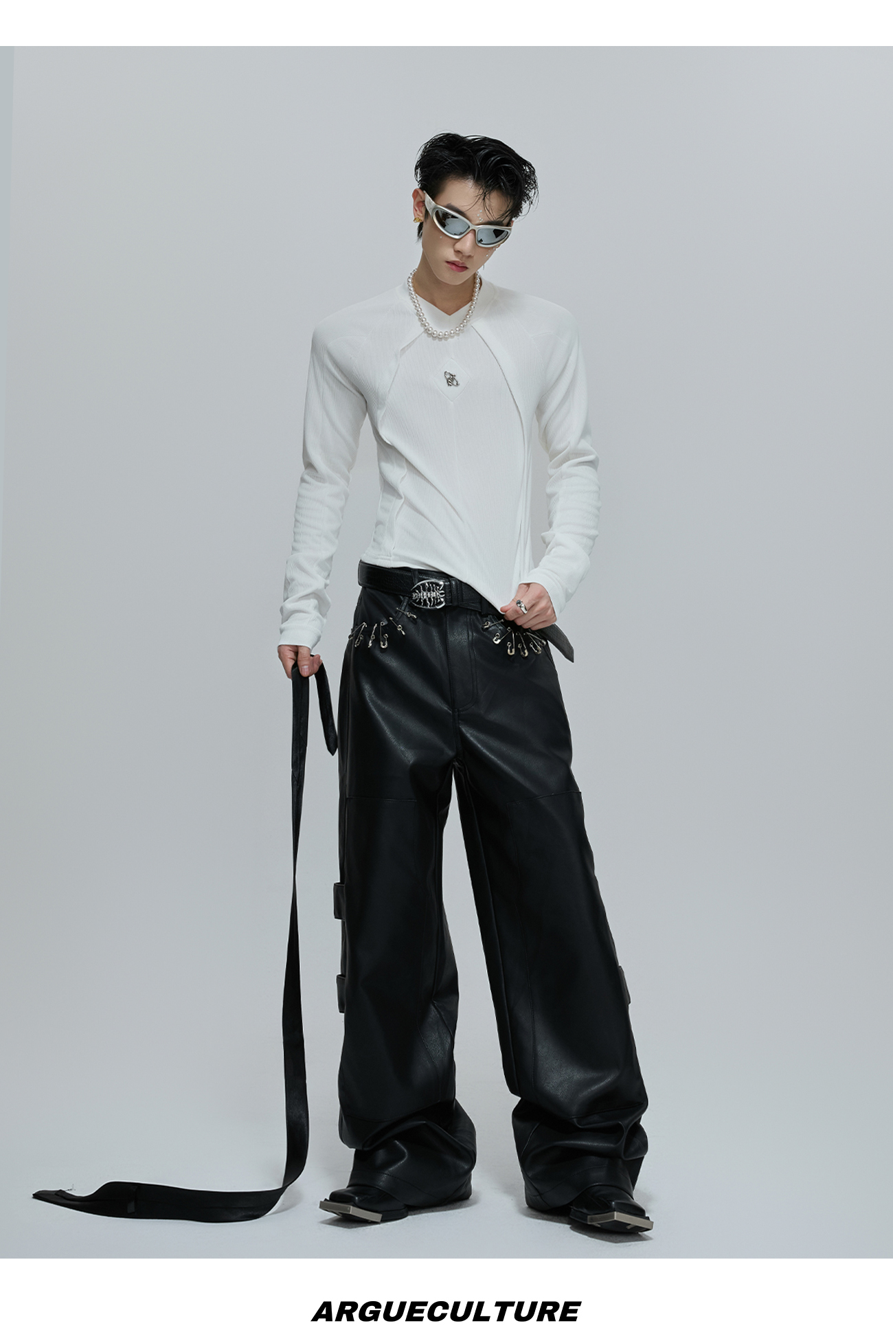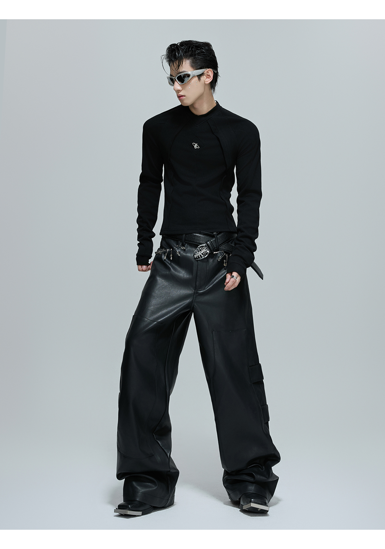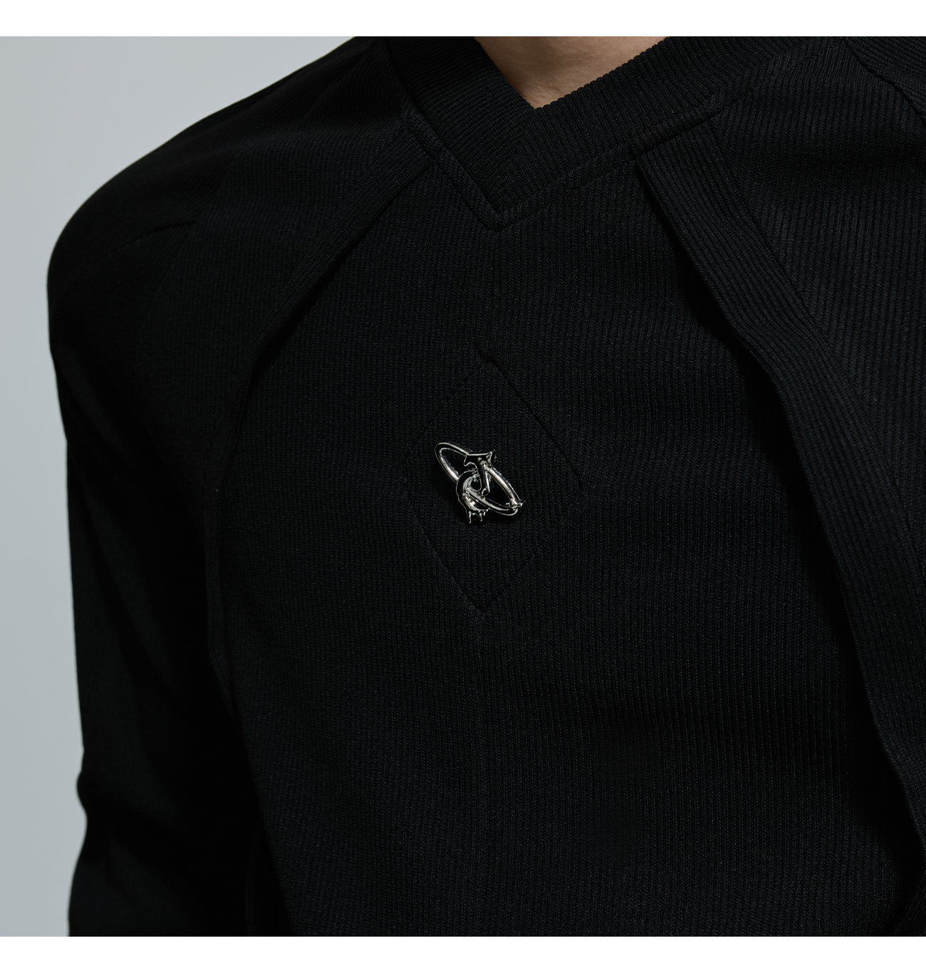 Deconstructed Slim Fit Metal Logo Long Sleeve T-Shirt WN21695