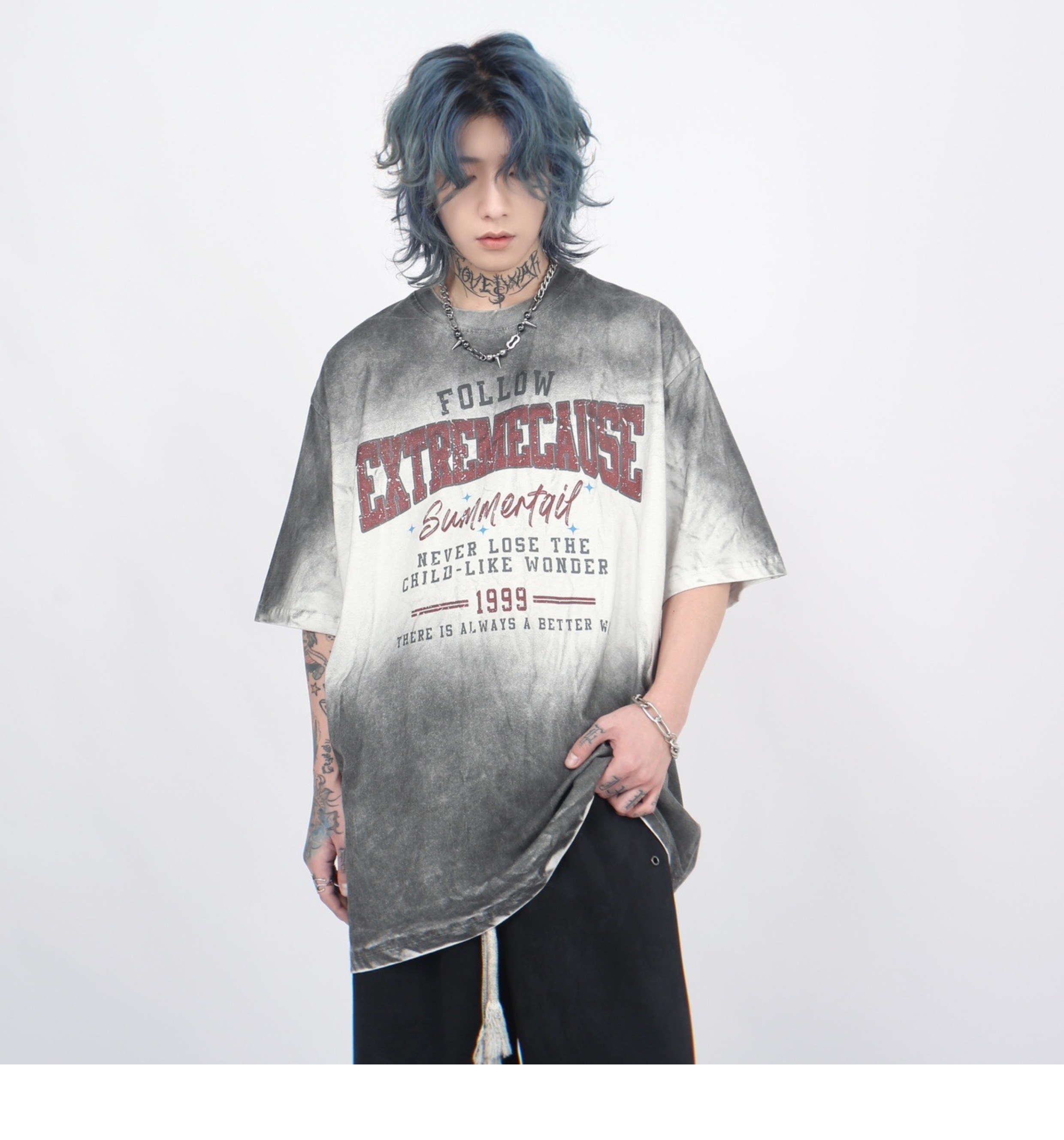 Spray Paint Gradient Oversize Short Sleeve T-Shirt WN5266
