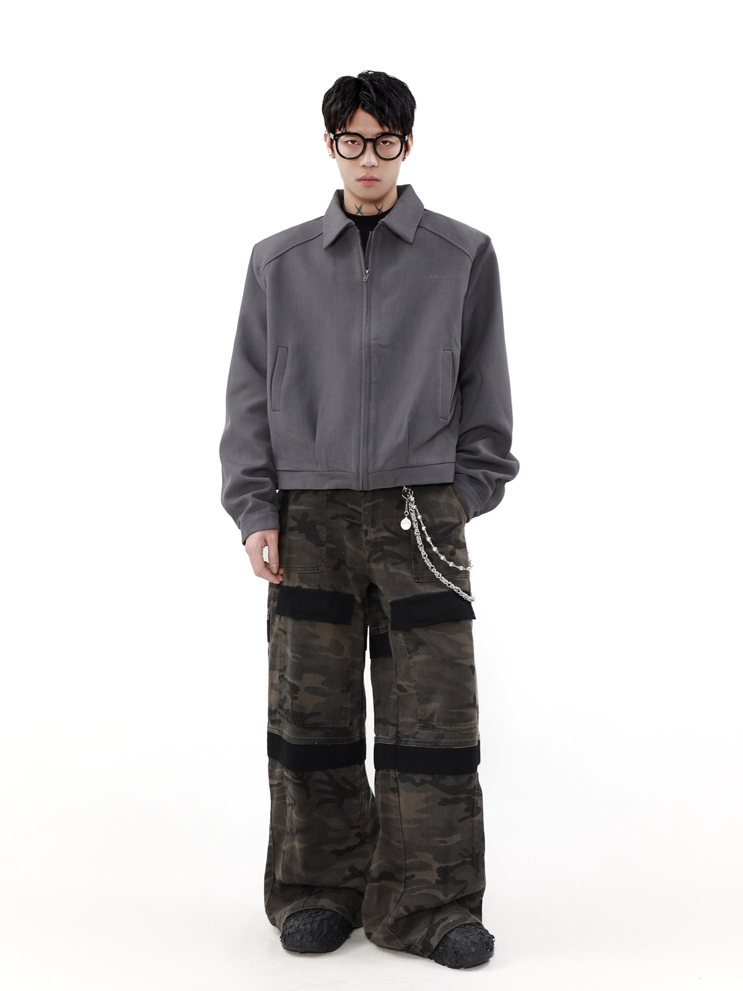 Cropped Shoulder Pad Zipper Jacket WN7562