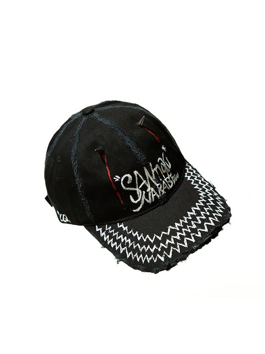 Graffiti Damage Dripping Blood Rivet Curved-Brim Cap WN21127
